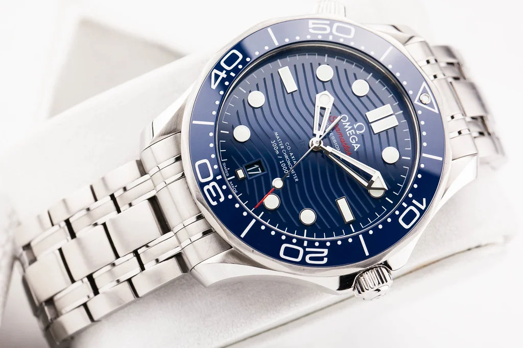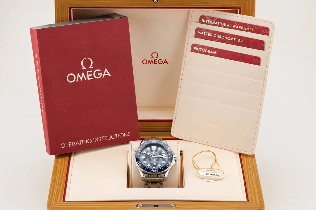 ·Up for sale is an excellent condition Omega Seamaster 300 42mm Blue Dial / Bezel on Bracelet, reference # 210.30.42.20.03.001. It comes complete with all boxes, papers, booklet, hang tag and an Omega Warranty Card dated July 2024.