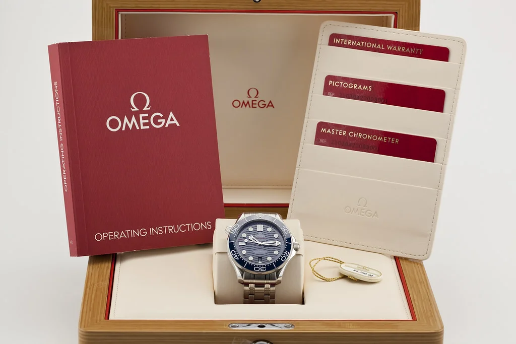 ·Up for sale is a brand new Omega Seamaster 300 42mm Blue Dial / Bezel on Bracelet, reference # 210.30.42.20.03.001. It comes complete with all boxes, papers, booklet, hang tag and a 2025 dated Omega Warranty Card.