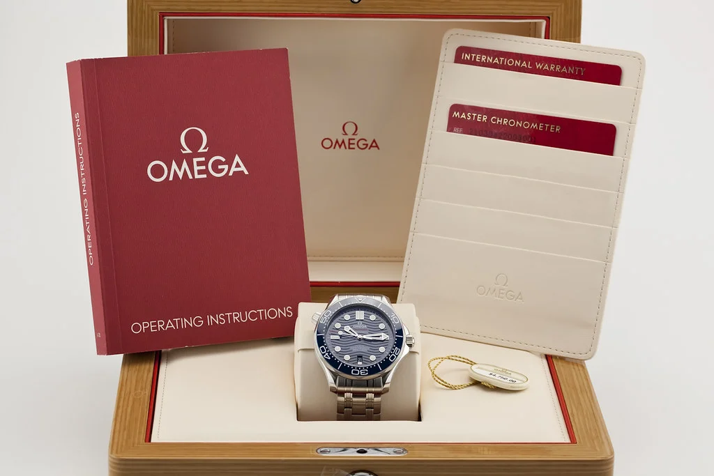 ·Up for sale is a brand new Omega Seamaster 300 42mm Blue Dial / Bezel on Bracelet, reference # 210.30.42.20.03.001. It comes complete with all boxes, papers, booklet, hang tag and a 2025 dated Omega Warranty Card.