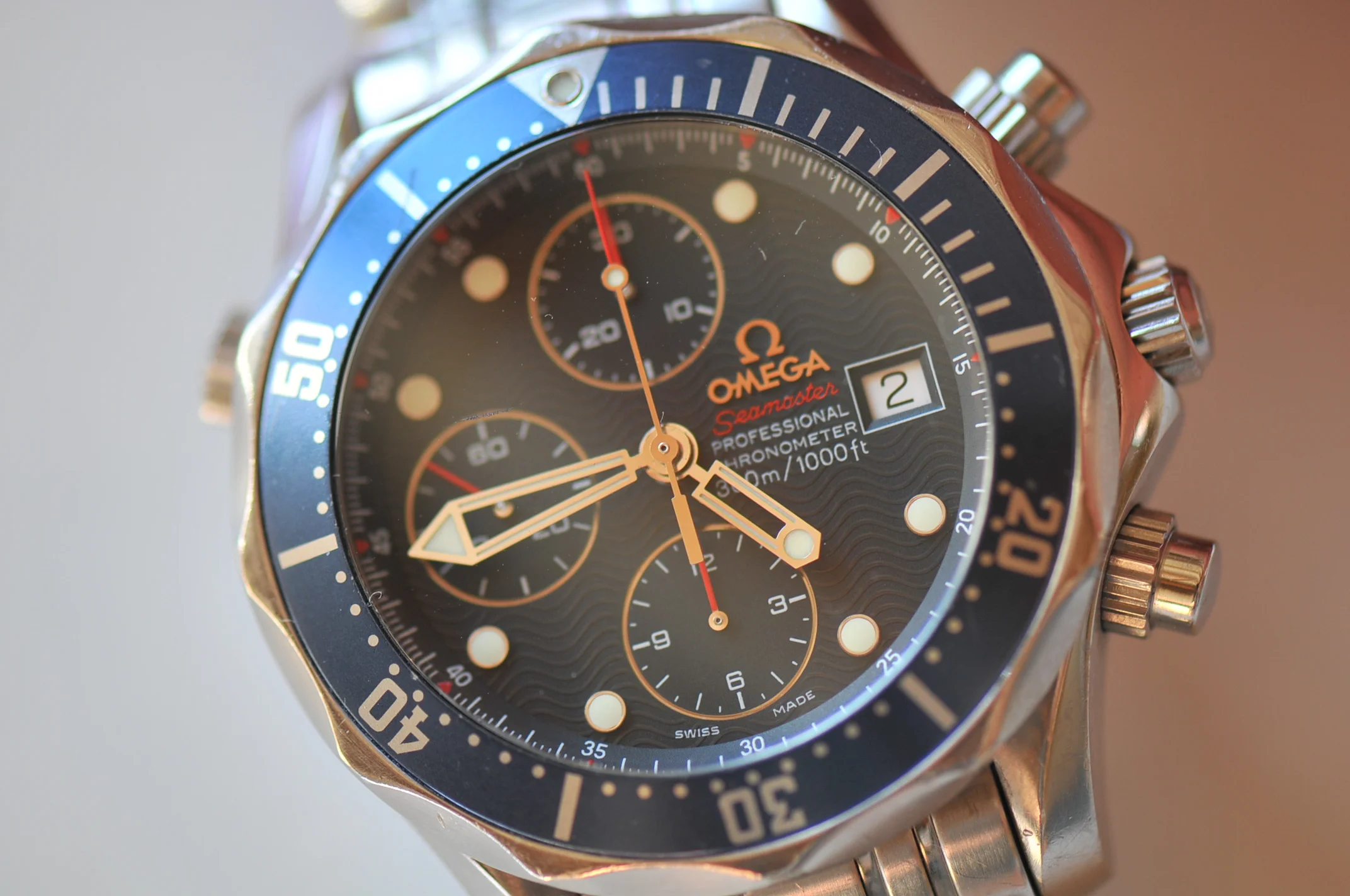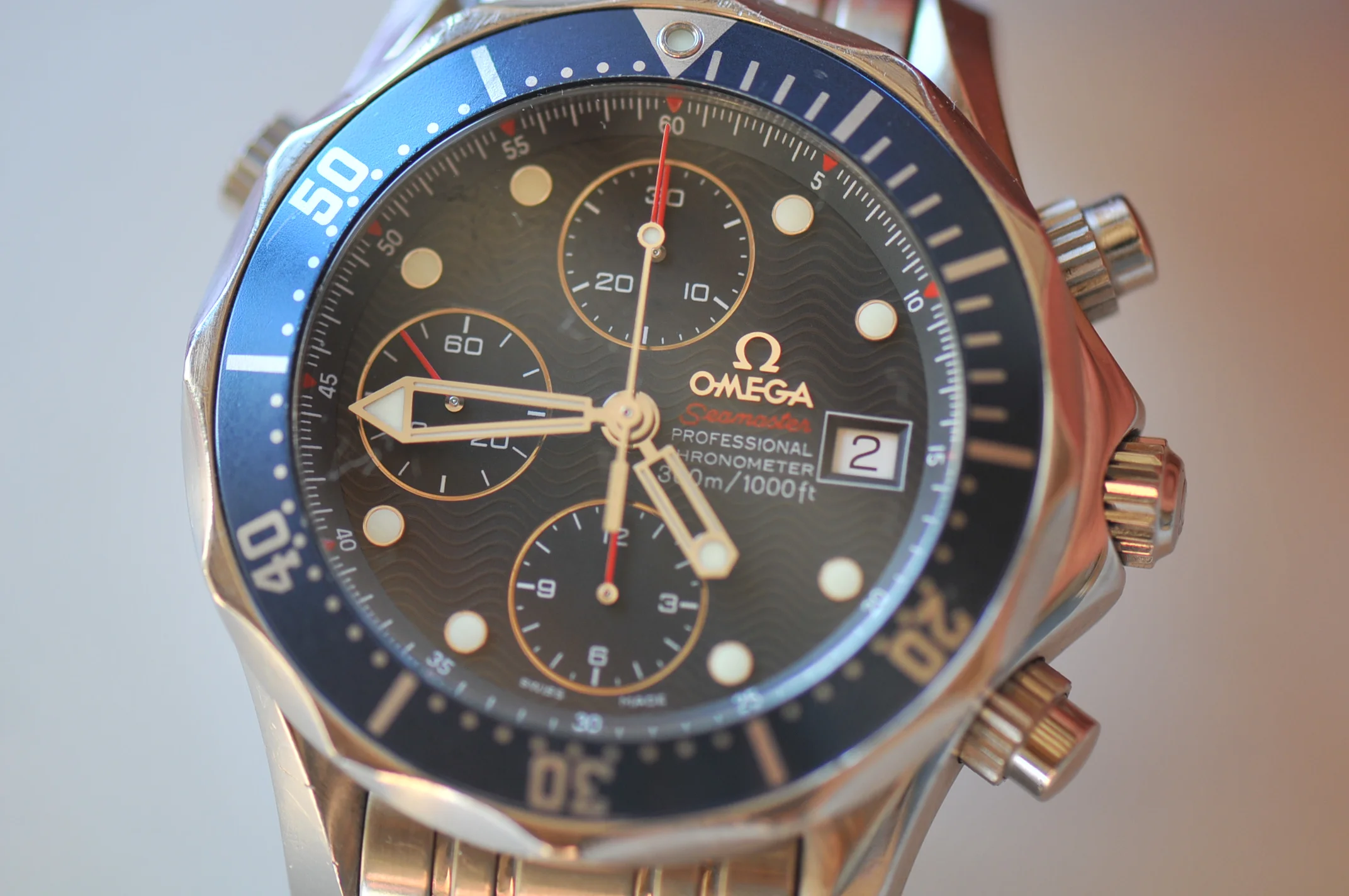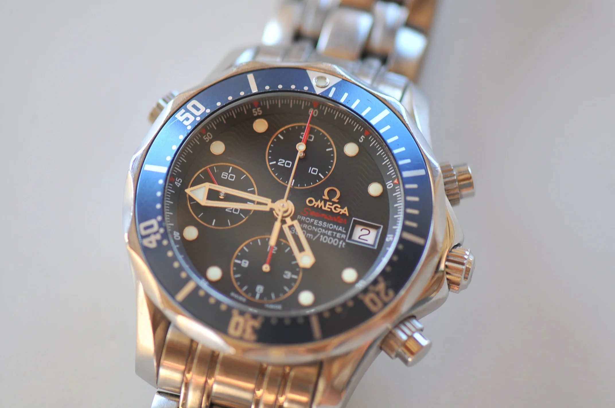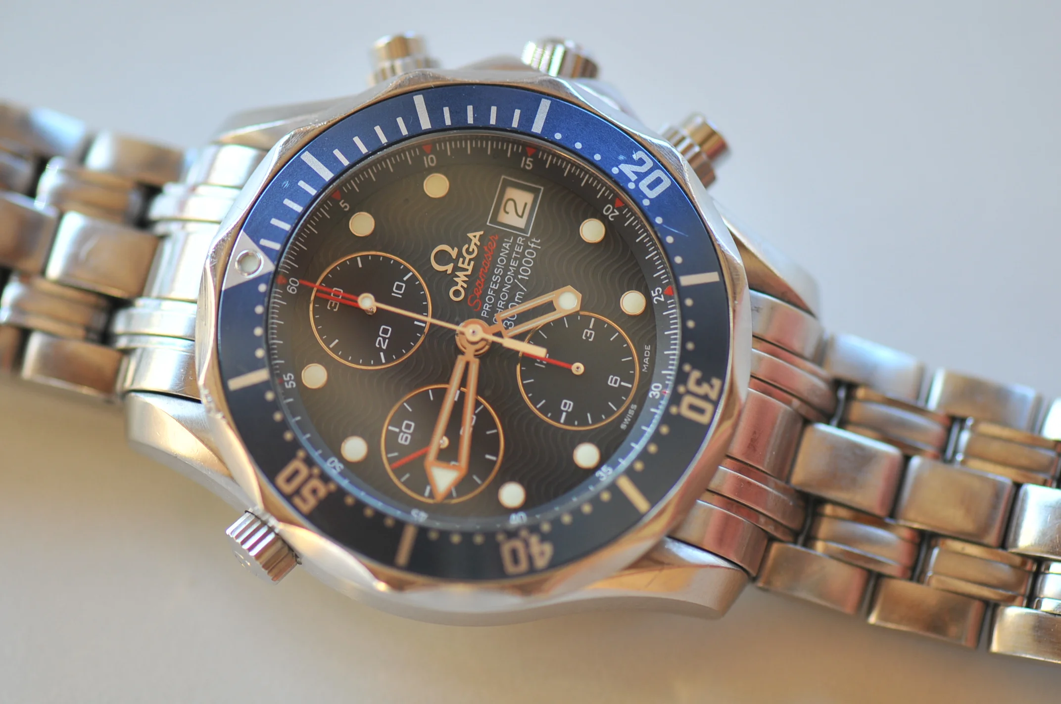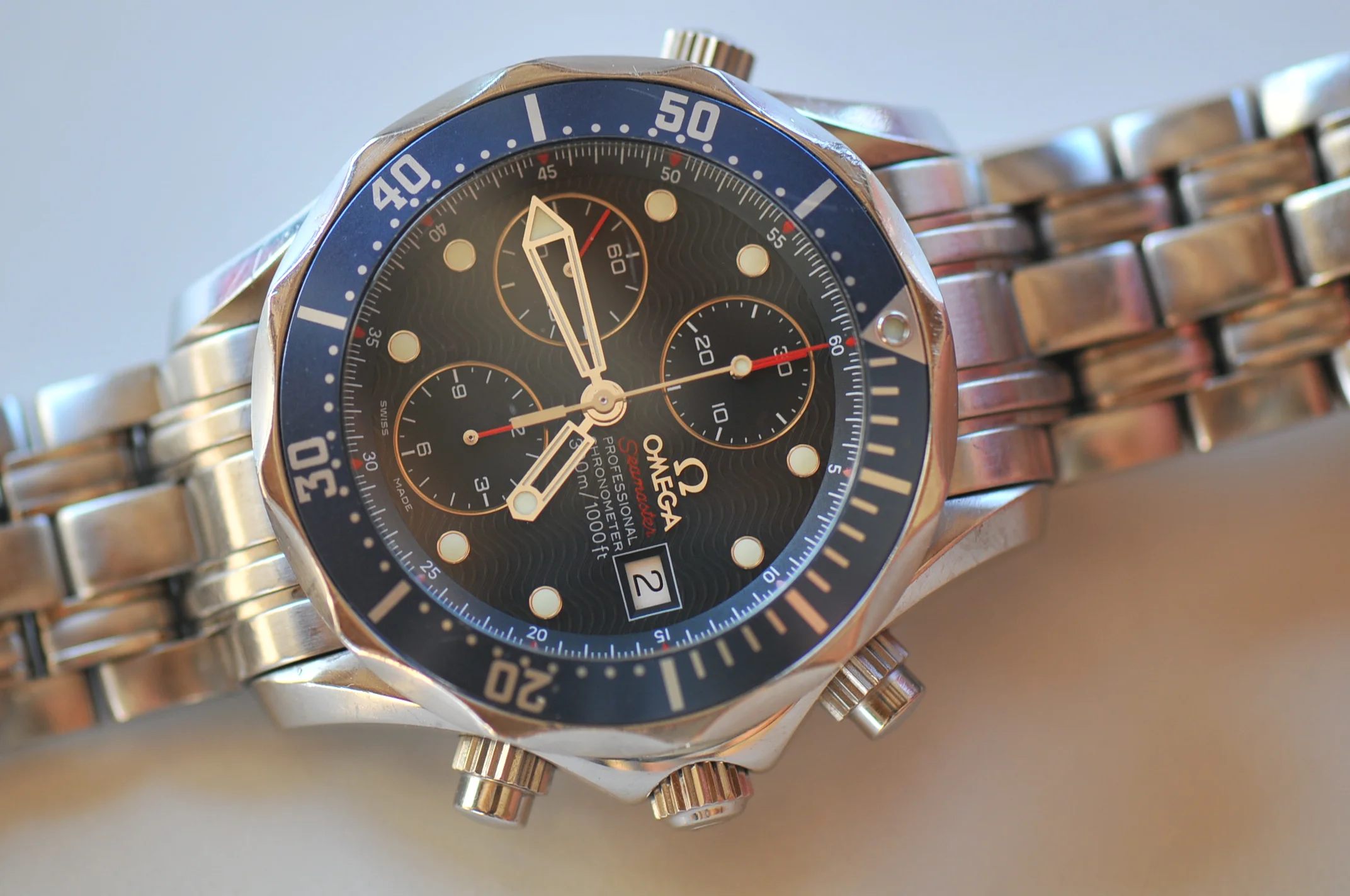 I have for sale a very nice Omega Seamaster watch in very good working condition. I don't know when was the last service but the watch keep good time, it has only a few seconds per day error. All the functions works well, It change the date, chronograph start, stop reset well. (All the counters works well)