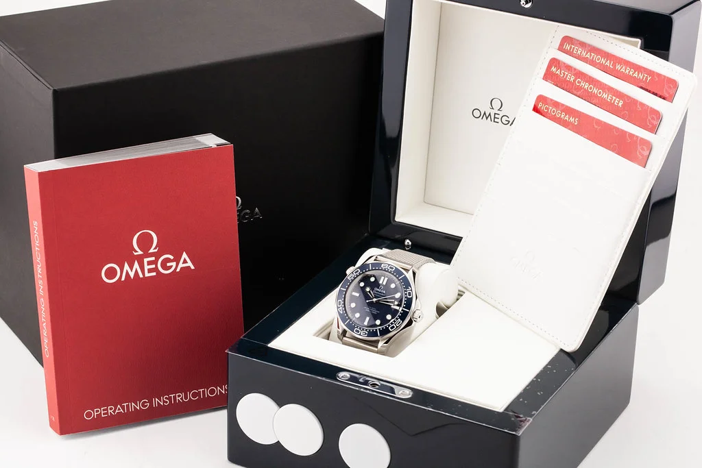·Up for sale is a brand new Omega Seamaster 300M 007 James Bond 60th Anniversary, reference # 210.30.42.20.03.002. It comes with all boxes, papers, booklet, and Omega Warranty Card dated February 2024.