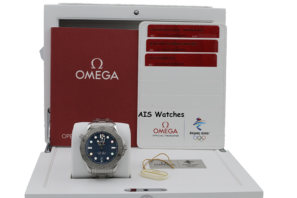 Up for sale is an Omega Seamaster 300M SS Beijing 2022 Olympic Winter Games 522.30.42.20.03.001 Blue Wave Dial Box & Papers. The timepiece is in excellent condition.