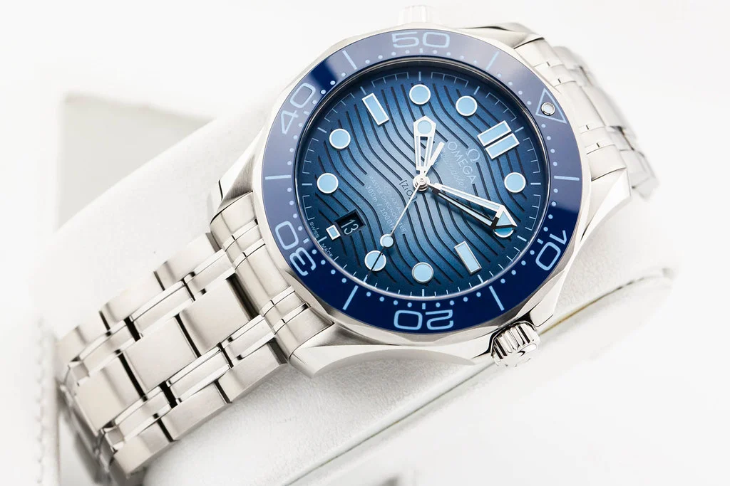 ·Up for sale is a brand new Omega Seamaster 300M 42mm Summer Blue Dial on Bracelet, reference # 210.30.42.20.03.003. It comes complete with all boxes, papers, booklets, hang tag and Omega Warranty Card dated June 2024.
