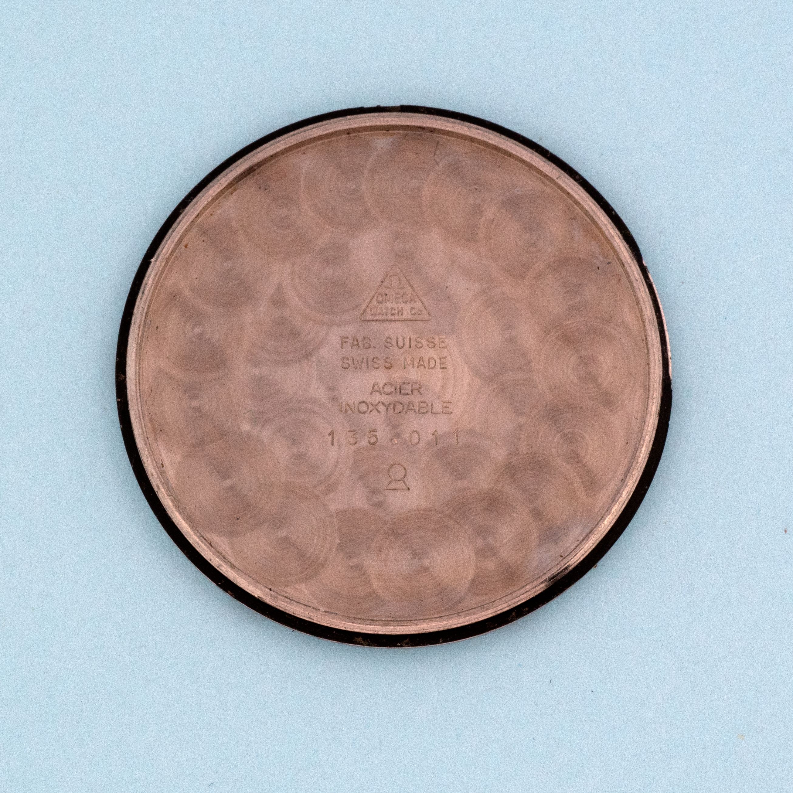 Up for sale this Omega 135.011 with an uncommon black dial with large tritium markers.