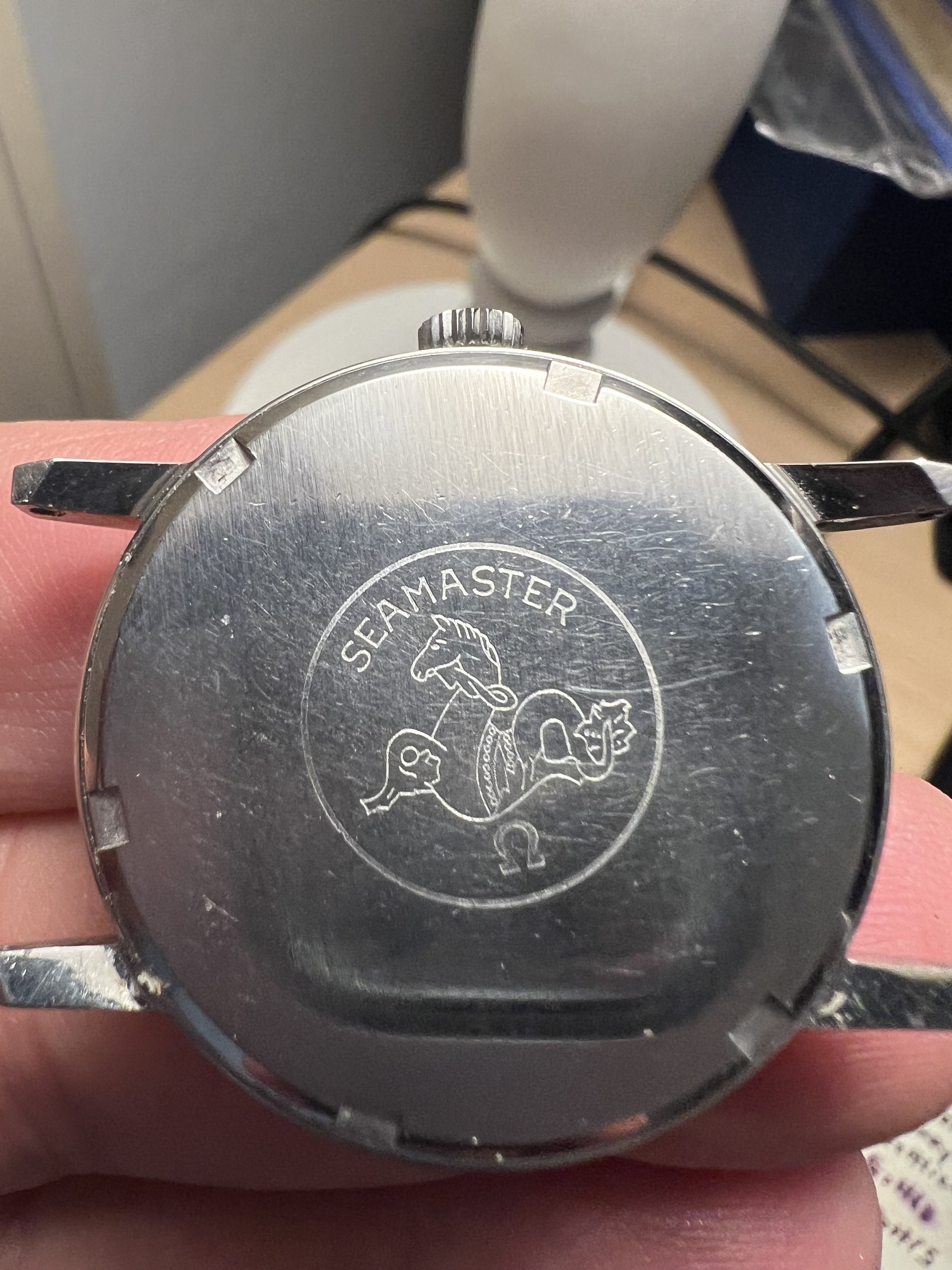 CASE BACK: Original screwdown caseback with etched Seamonster and Omega logo, good no significant scratches or marks