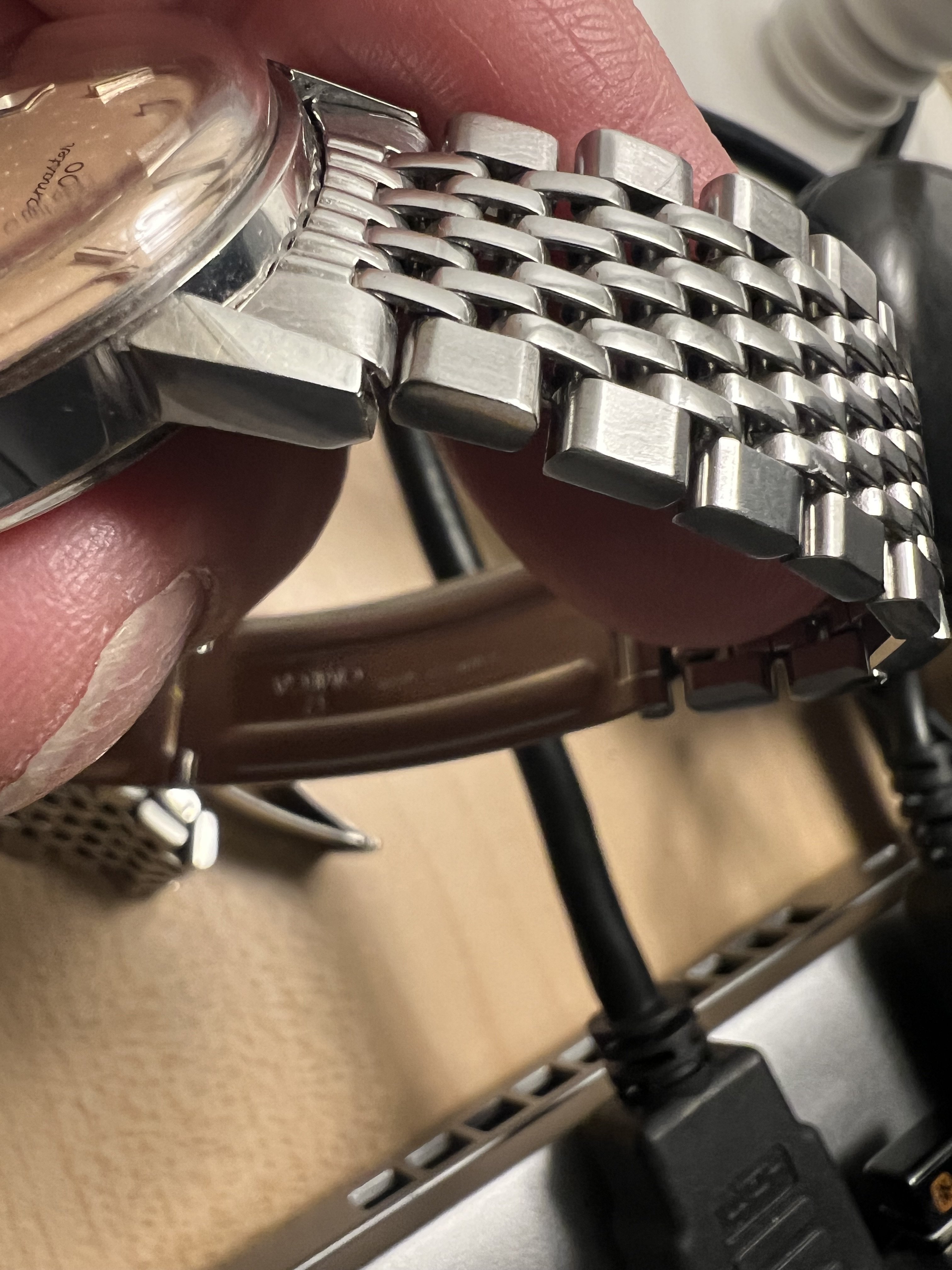 BRACELET/STRAP: Selling with pictured 9-bead BOR original Omega bracelet, sized to fit 7.5” wrist, or alternatively head only at reduced price as below. Bracelet has Omega markings but no number, but is Omega original. Total 21 links. 513 endlinks, which are not original to this watch but work well as seen.