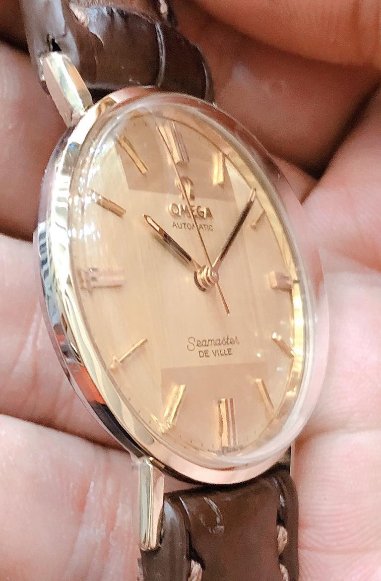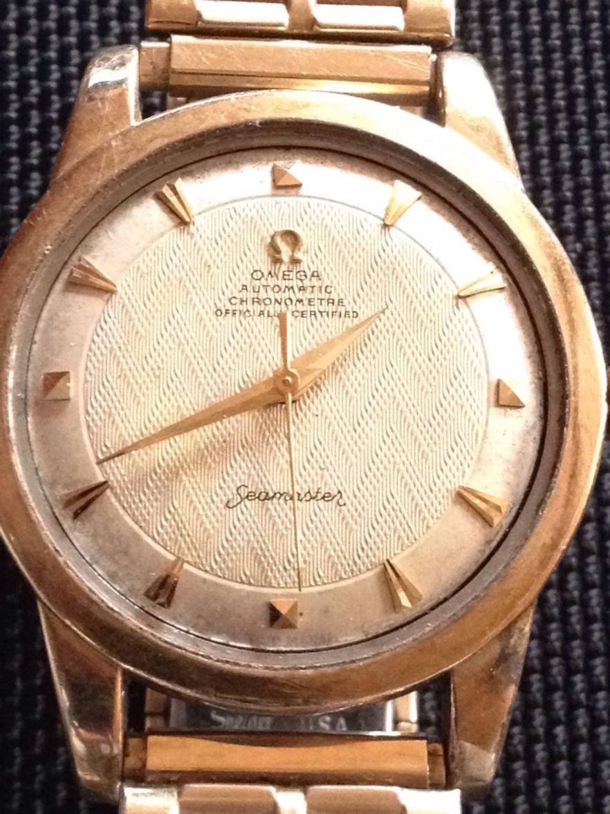 I’m having a regular movement service done, but in addition to that Tanner will replate and relume the hands, install a new crystal and crown, and lightly refinish the case. He has done this for me before on another Seamaster and it came back looking like this: