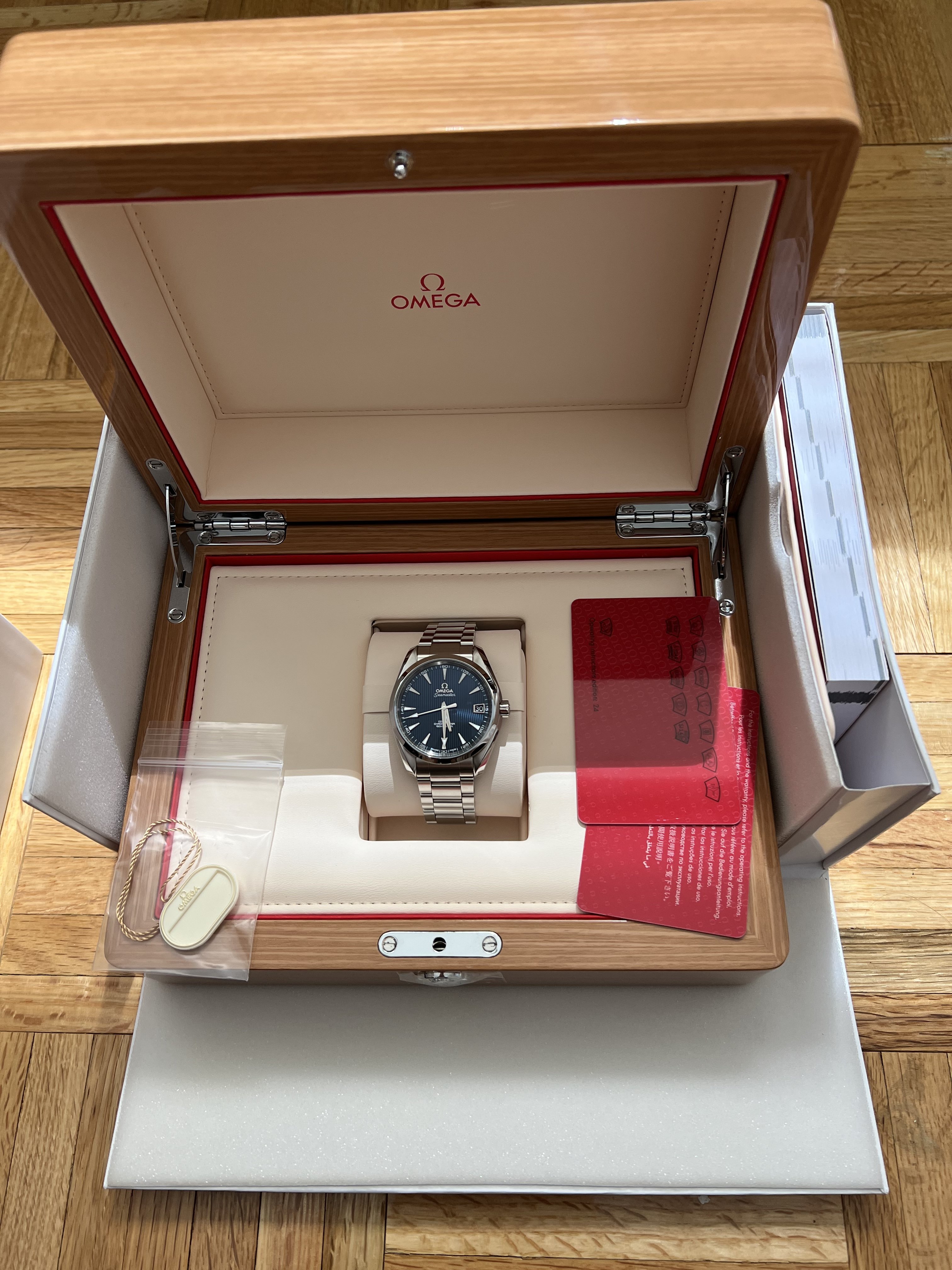 I have a new old stock Brand NEW Omega Seamaster Aqua Terra 231.10.39.21.03.001 for sale. Runs great and all functions work as expected. Please take a look at the photos for condition. Beautiful and the nice date window surround. Almost hard to believe I was able to locate a new one after all these years post discontinuation.