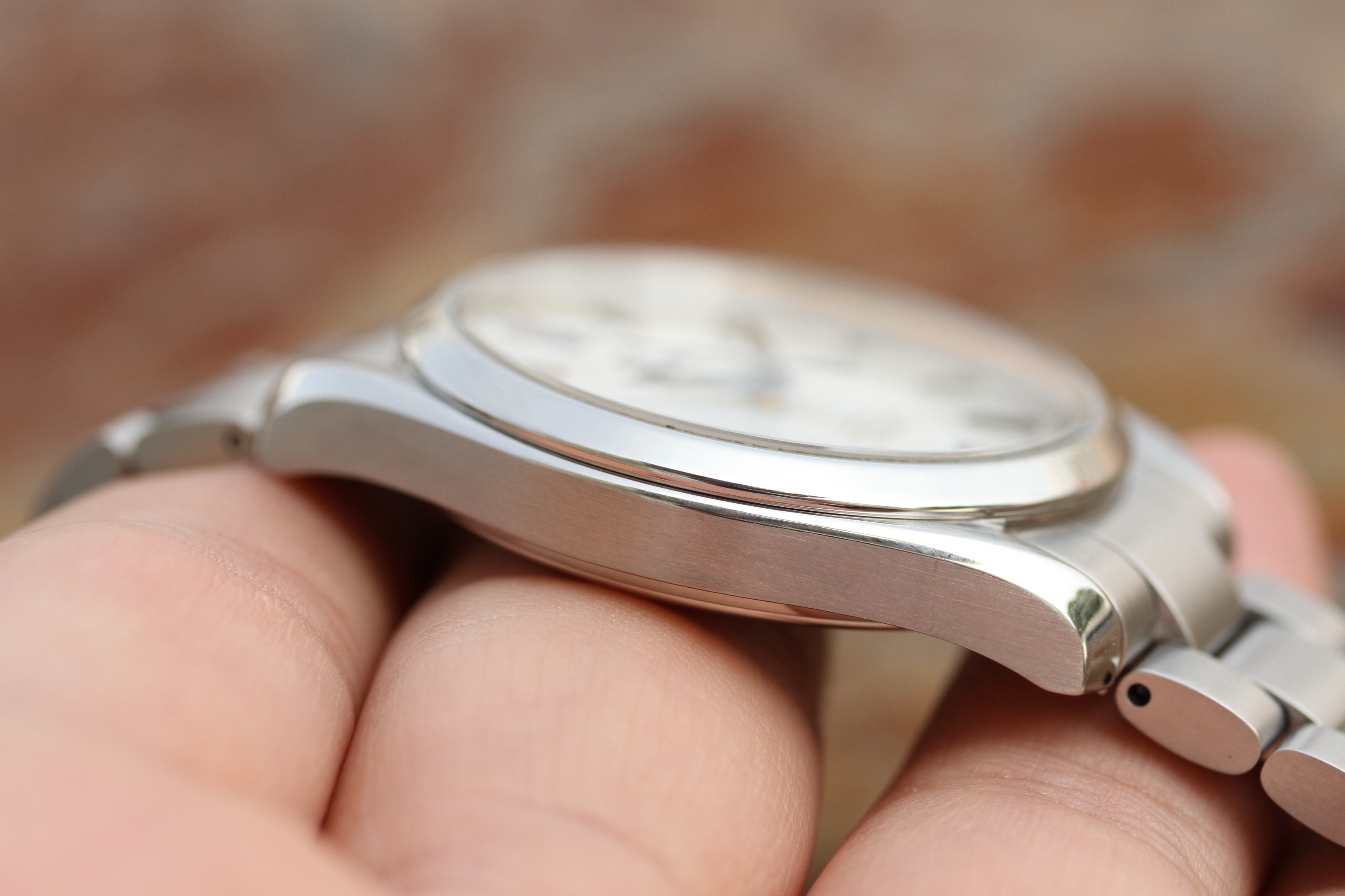 Excellent condition case with no dings, dents, or scratches. Clean crystal and bezel. Serial number fully intact on lug.