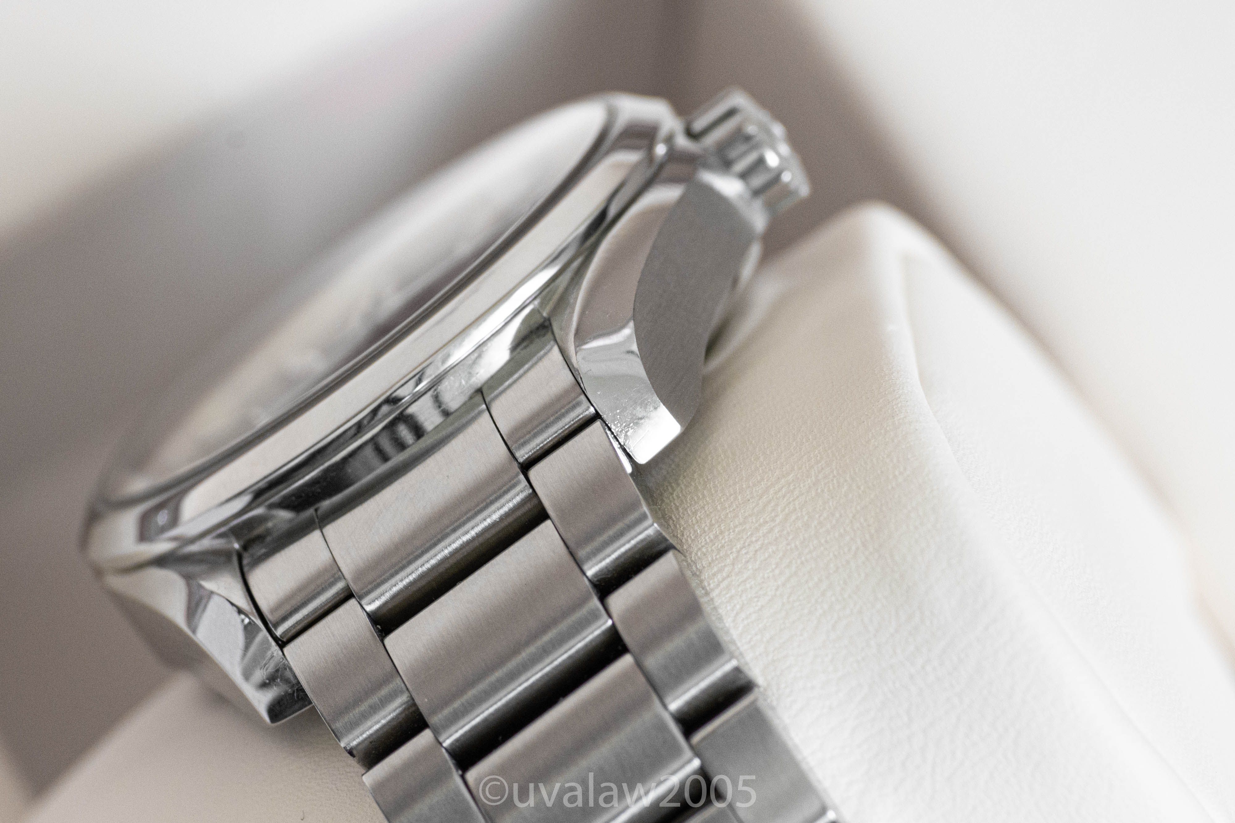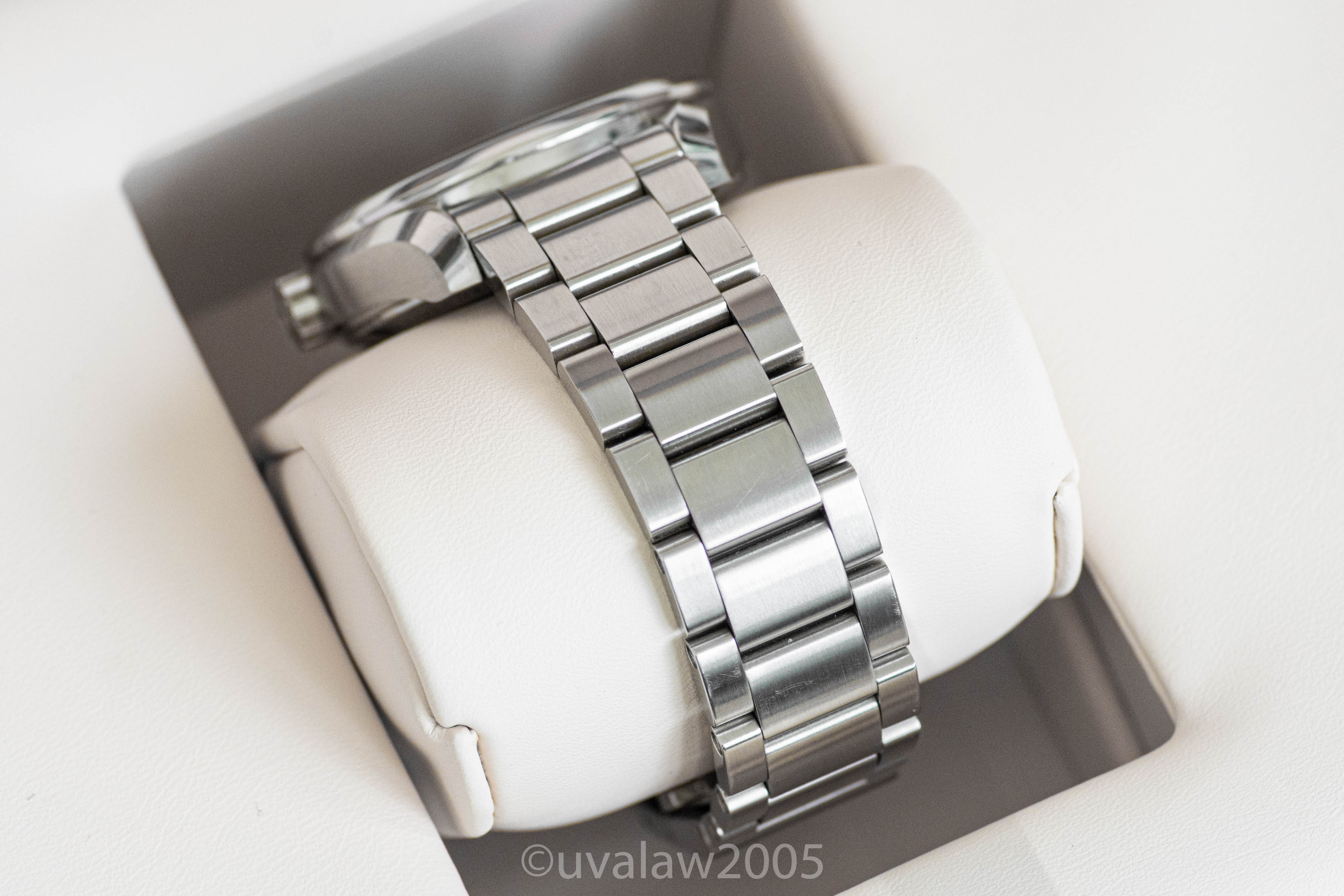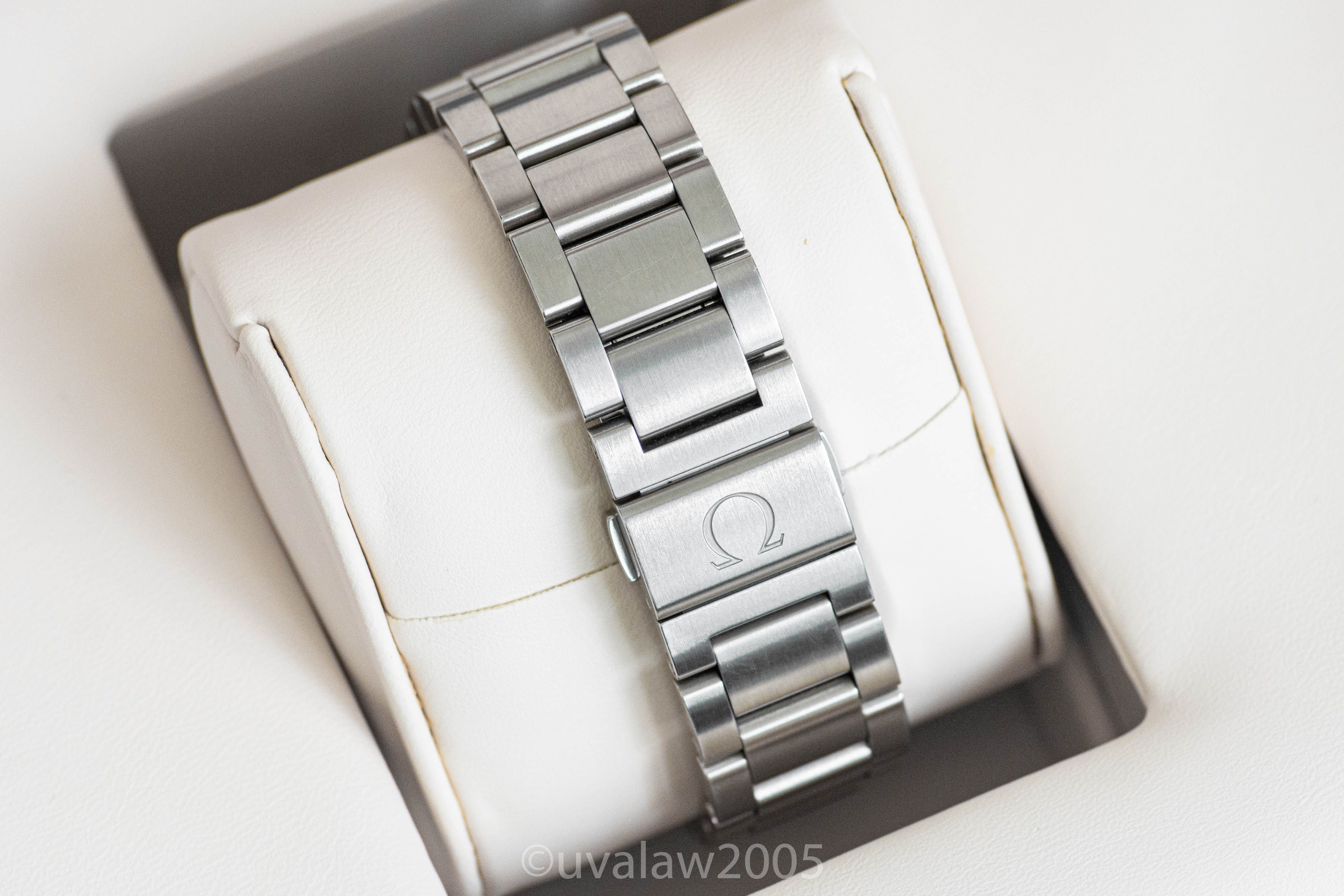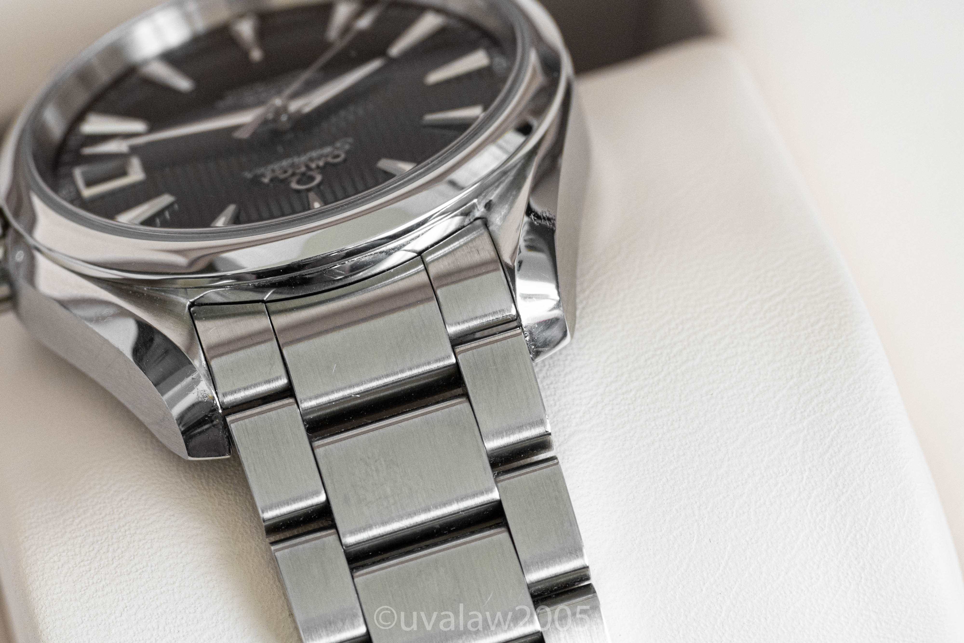 Crystal is perfect, case is in very good condition with minor surface wear to the bezel/bracelet and more noticeable wear at the ends of the lugs, as well on the polished portion of the 1 o'clock lug. All of this has been emphasized in the high magnification photos below. The 8500 Co-Axial movement is keeping excellent time, within +/- 1 second per day on my wrist (YMMV).