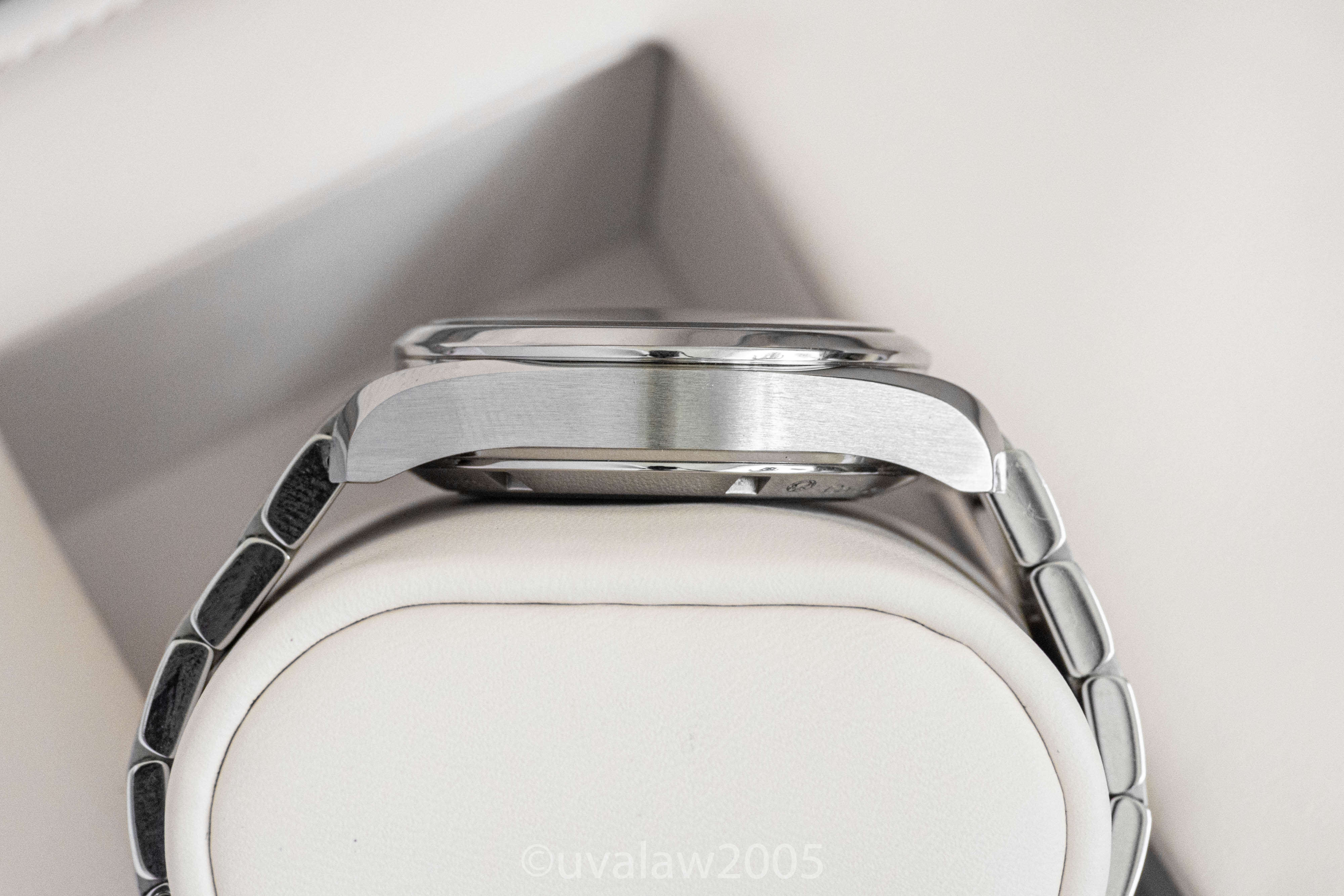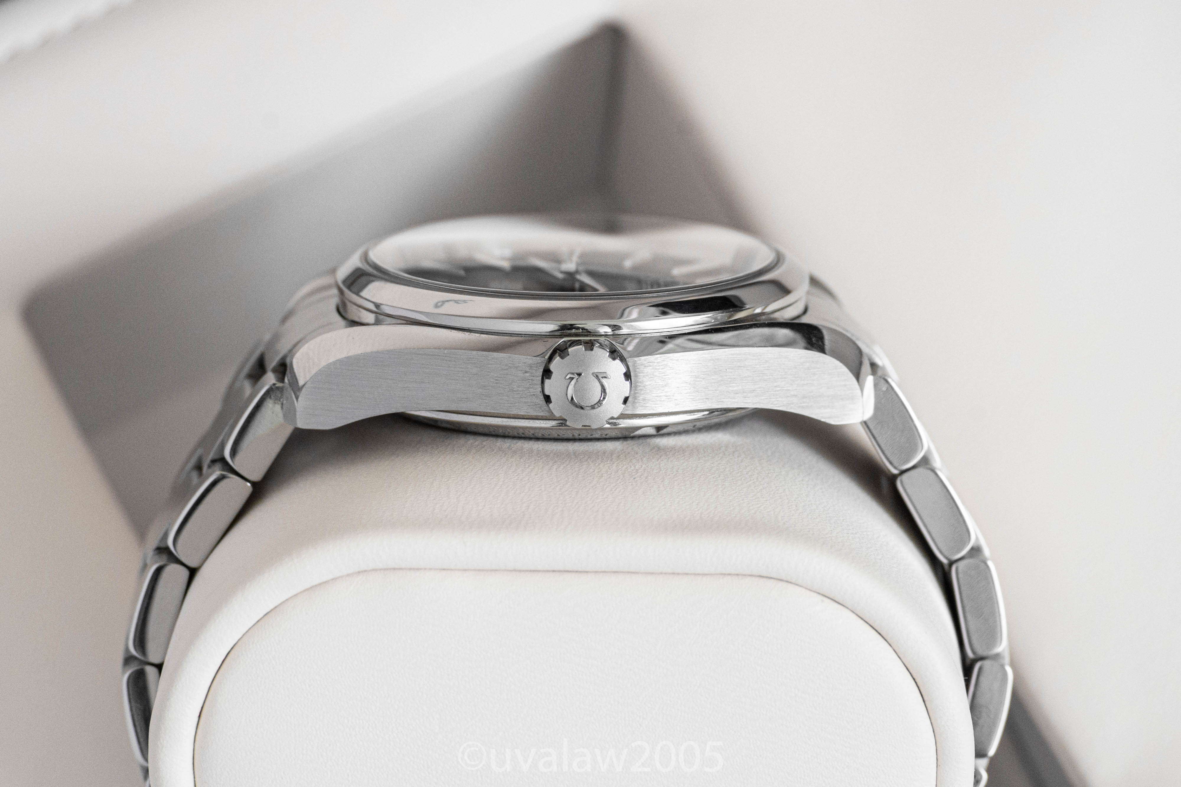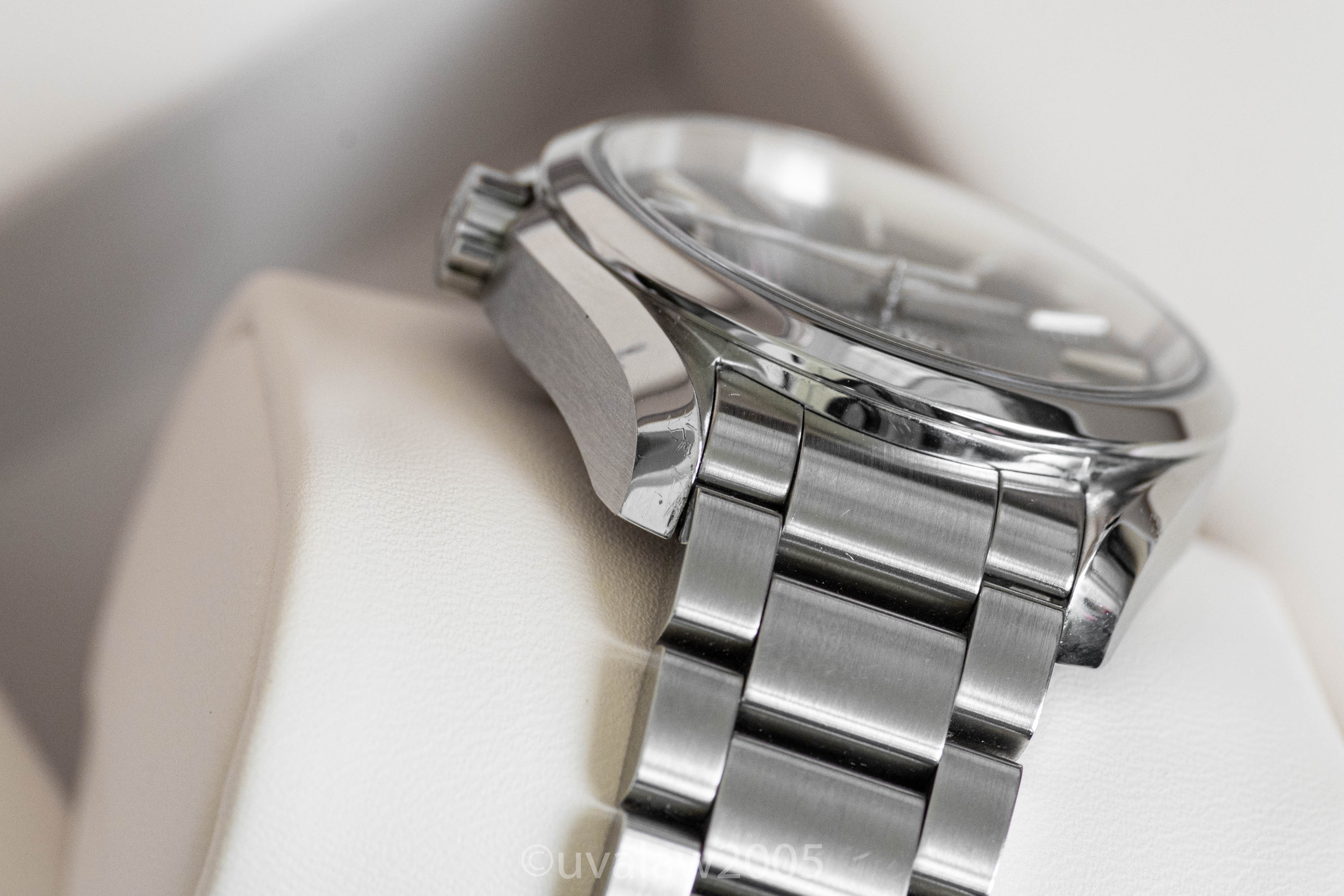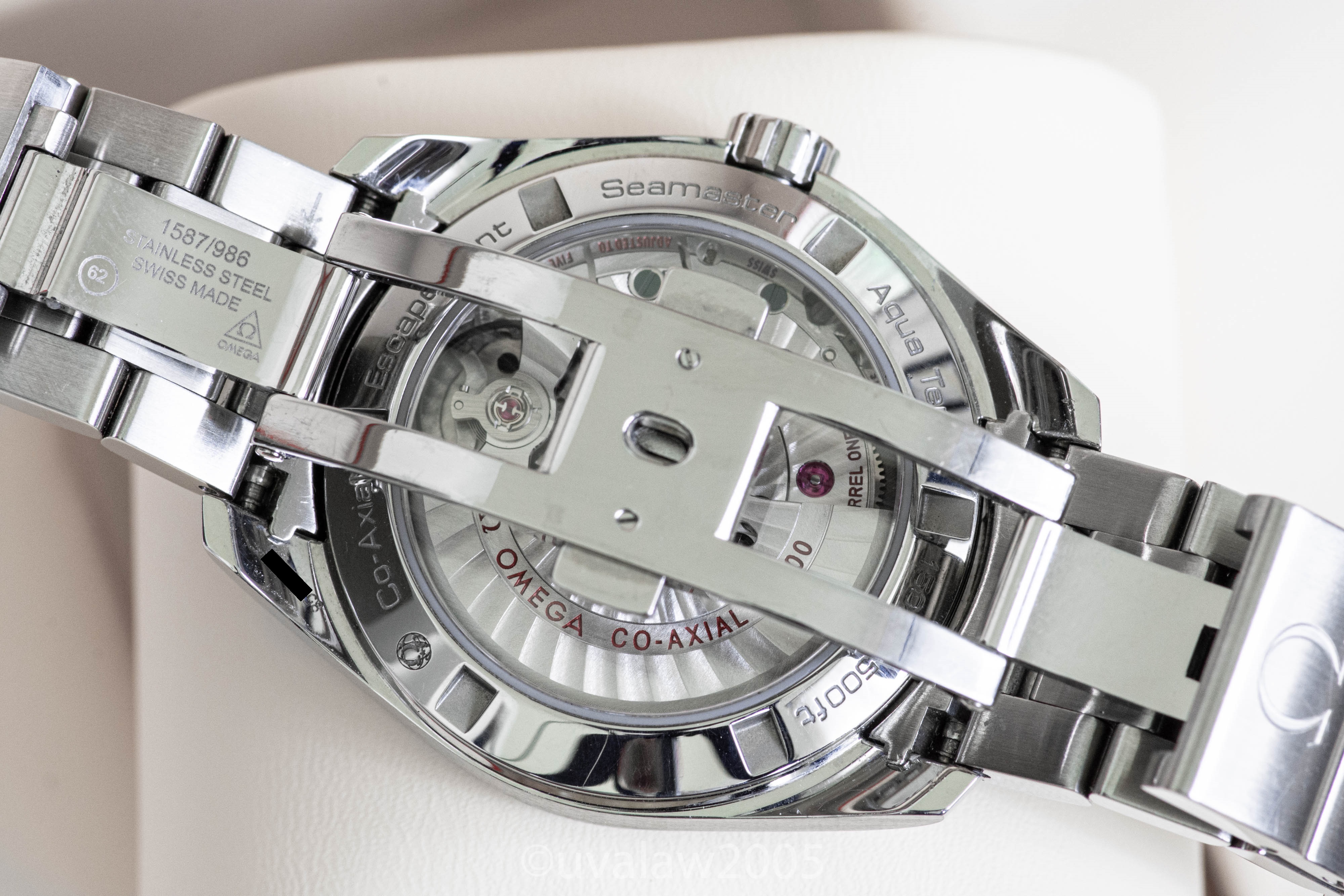 Crystal is perfect, case is in very good condition with minor surface wear to the bezel/bracelet and more noticeable wear at the ends of the lugs, as well on the polished portion of the 1 o'clock lug. All of this has been emphasized in the high magnification photos below. The 8500 Co-Axial movement is keeping excellent time, within +/- 1 second per day on my wrist (YMMV).