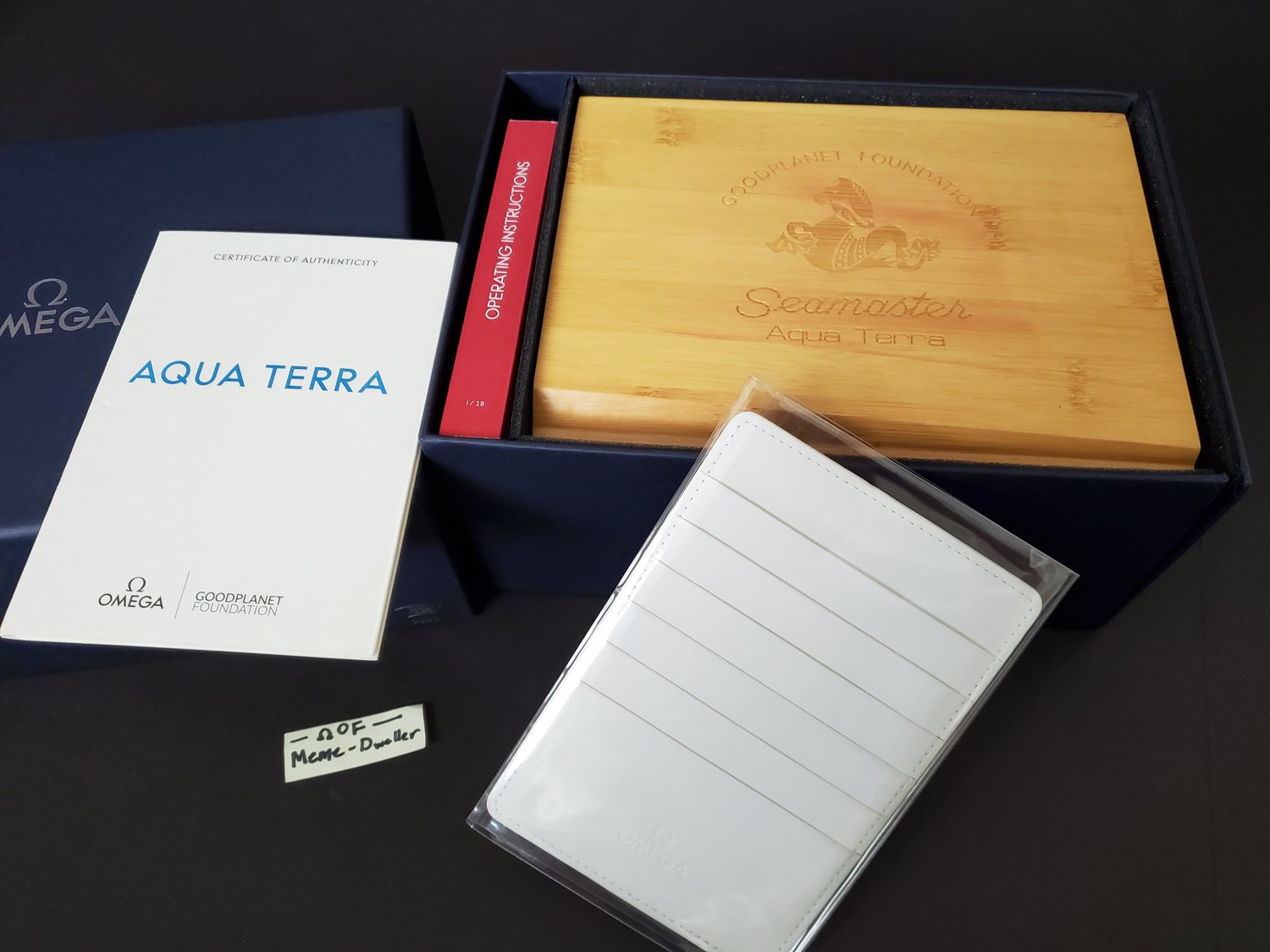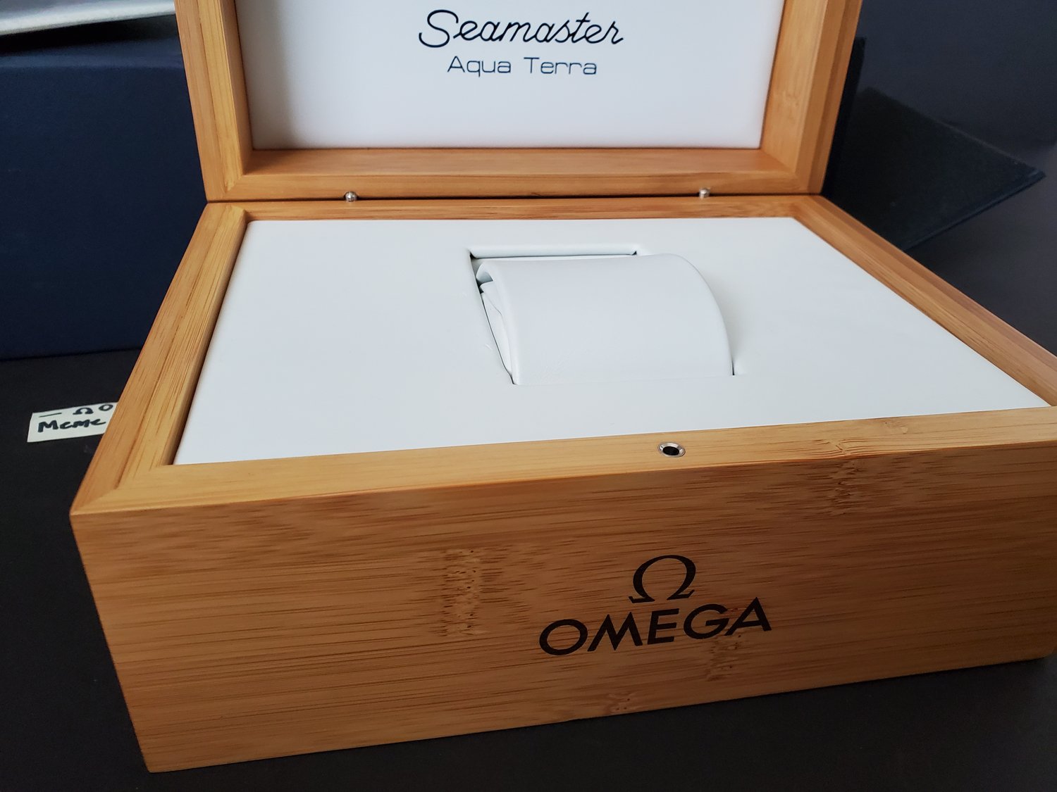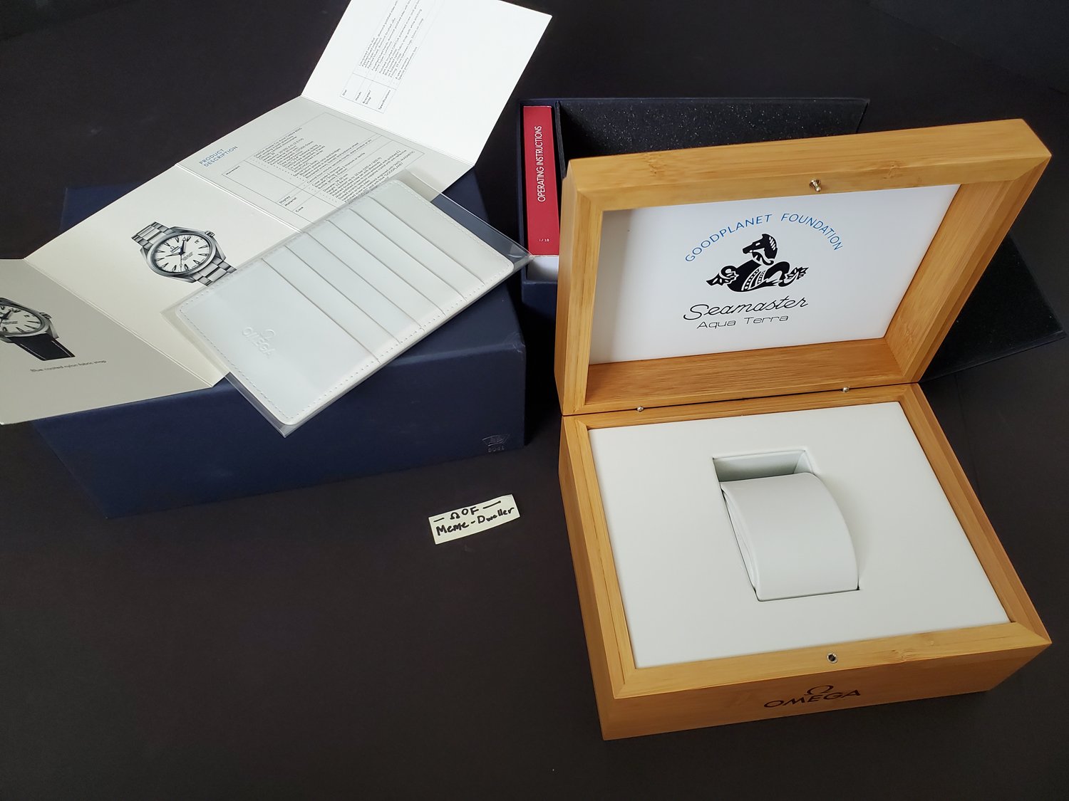 Up for sale is a genuine Omega Wooden Box set for the GoodPlanet Foundation Aqua Terra. Originally bundled with the titanium 38.5mm Good Planet Aqua Terra with either ref 231.90.39.21.04.001 (Ti bracelet) or 231.92.39.21.04.001 (nylon/leather). This is great for if you're missing the box or if you just have an Aqua Terra and want a high quality wooden display box.