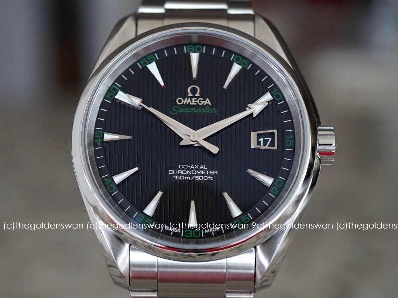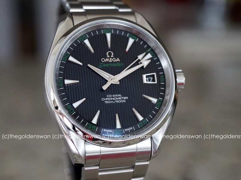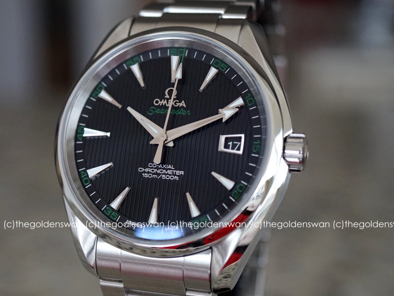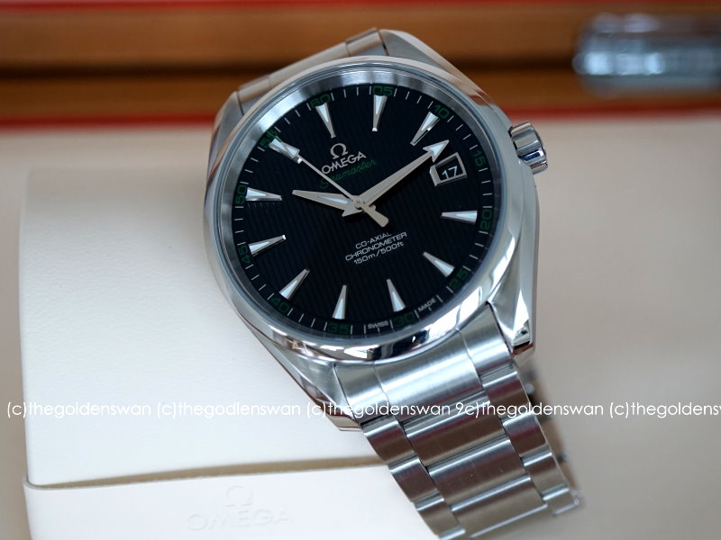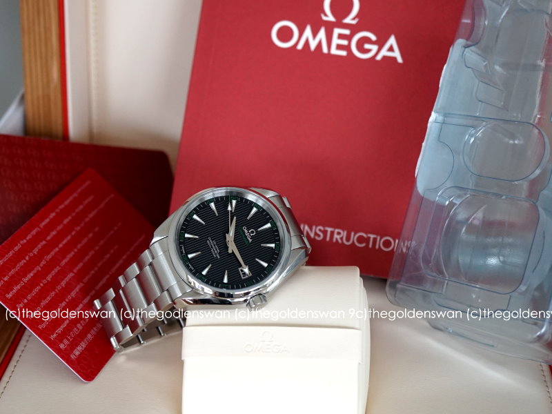 ·Omega Seamaster Aqua Terra Master Co-Axial Ref 231.10.42.21.06.001 , 41.5 MM stainless steel case on a stainless steel bracelet, Black dial with a teak concept pattern and green accents, Features the in-house manufactured 8500 caliber. The caliber 8500 beats at 28,800, contains 39 jewels, MInt with box and papers