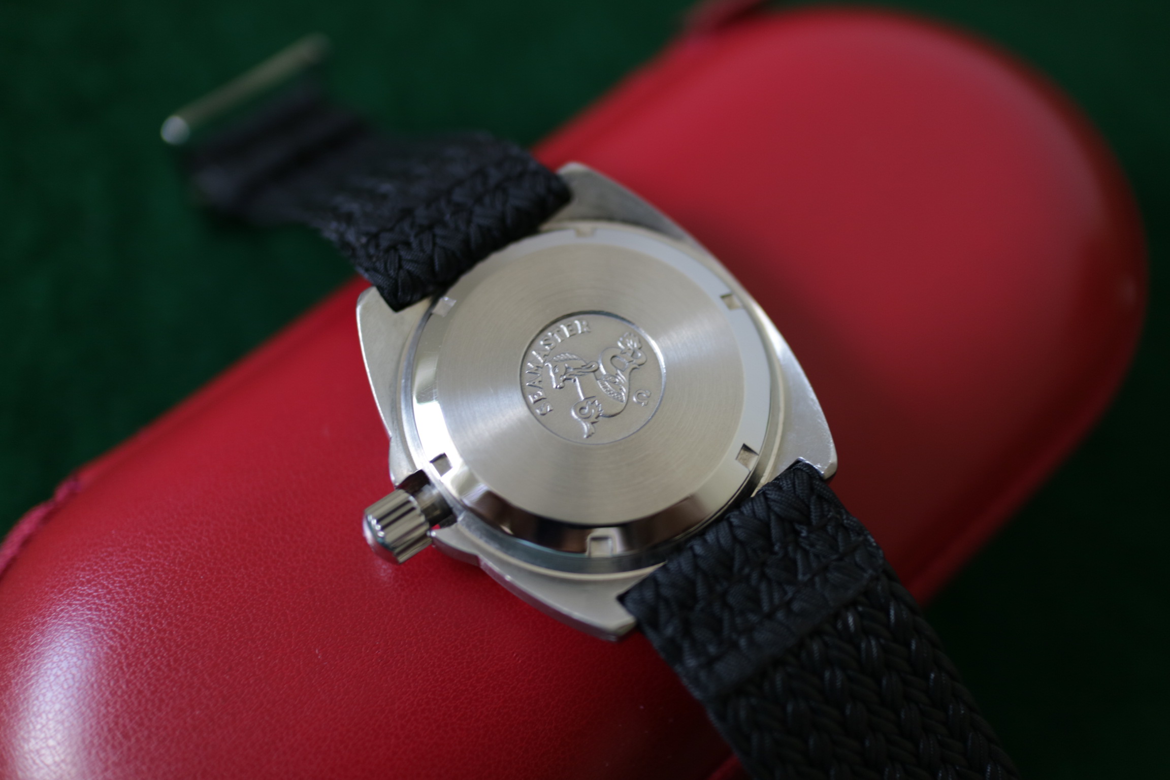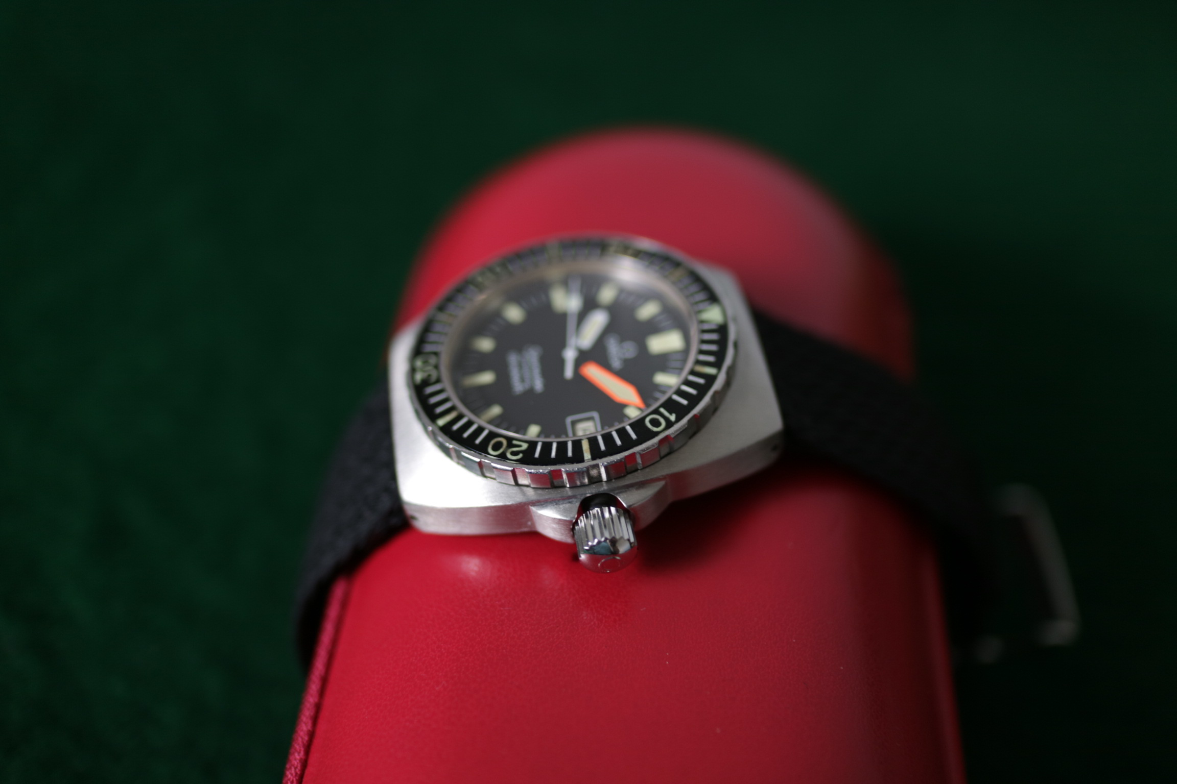 It comes on a 22mm Eulit Palma Panama 2 piece Perlon strap for that legitimate 70s dive watch feel.