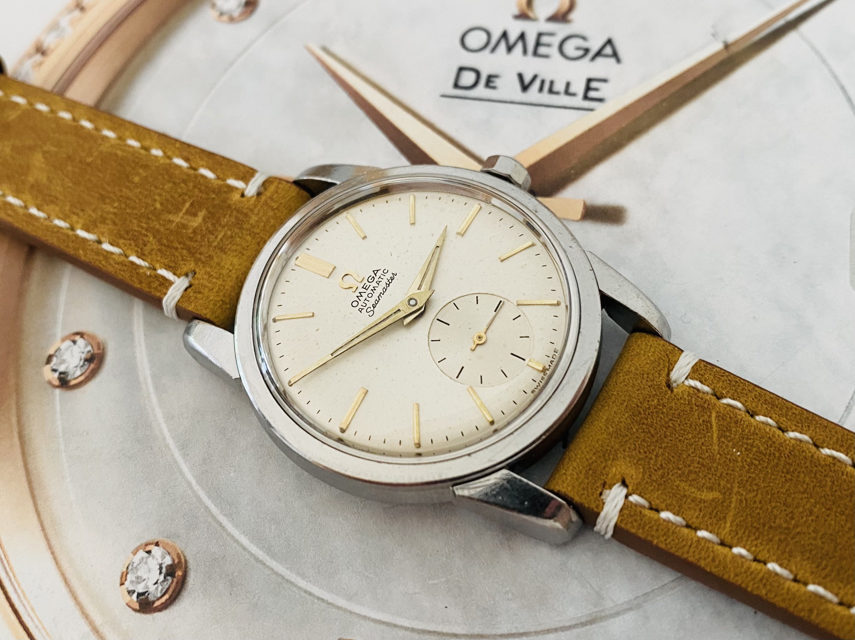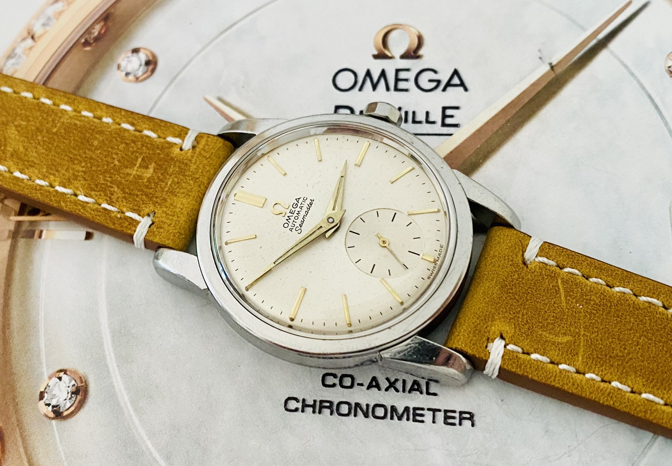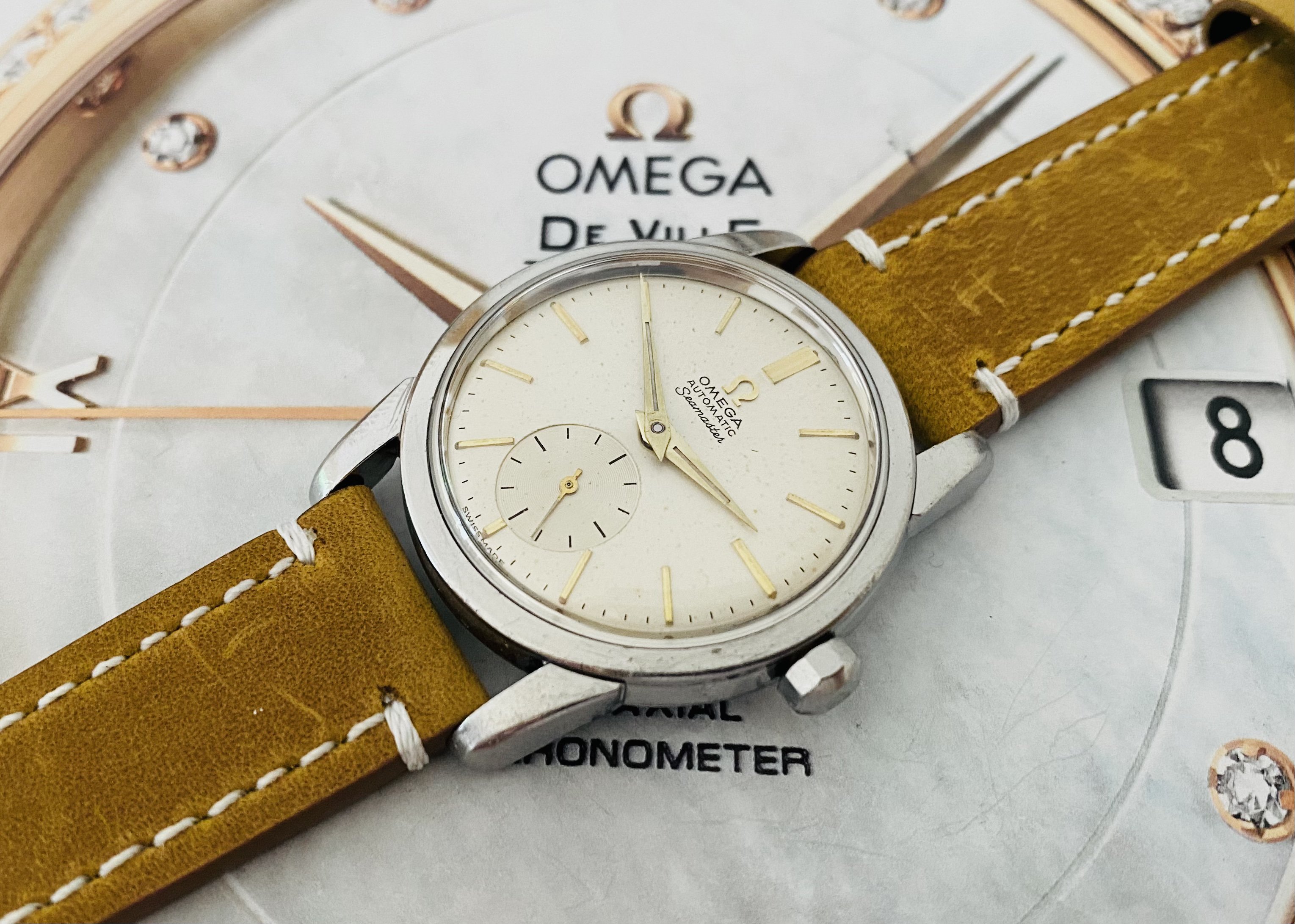 DIAL: with original white dial in nice condition with applied stick indexes, applied Omega logo, and tapered lume filled hands.
