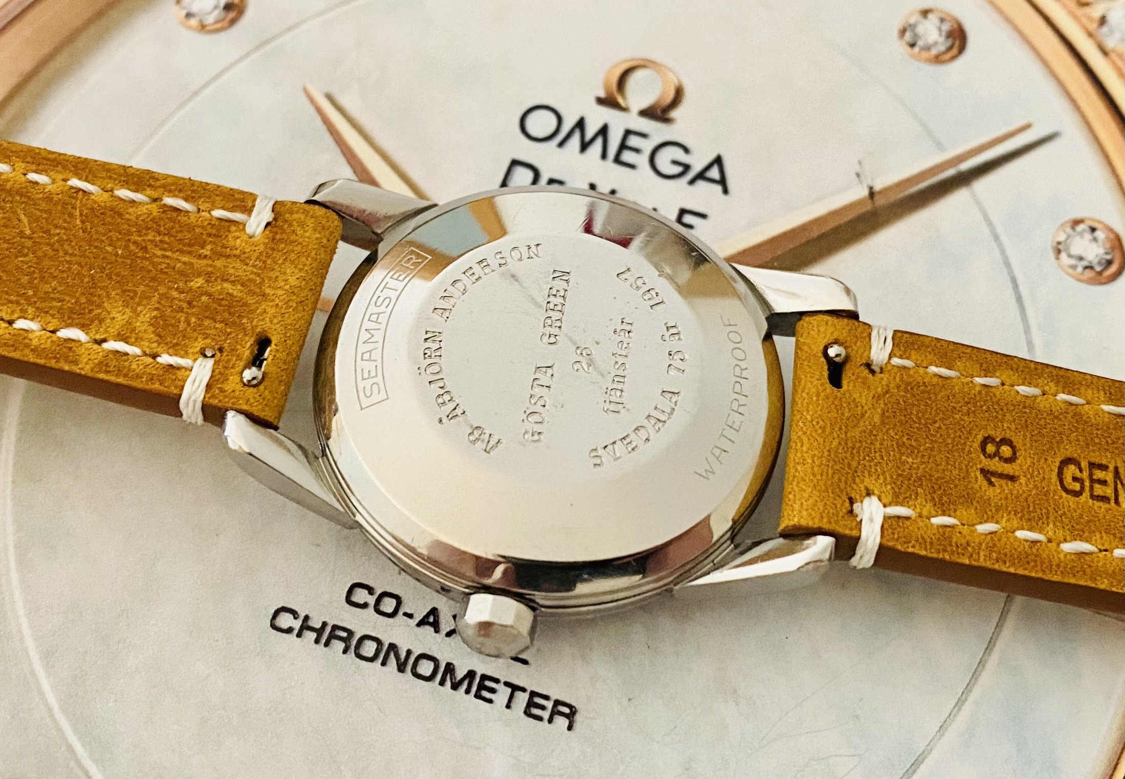 DIAMETER: ca 34mm w/out crown, lug width 18mm, Omega crown