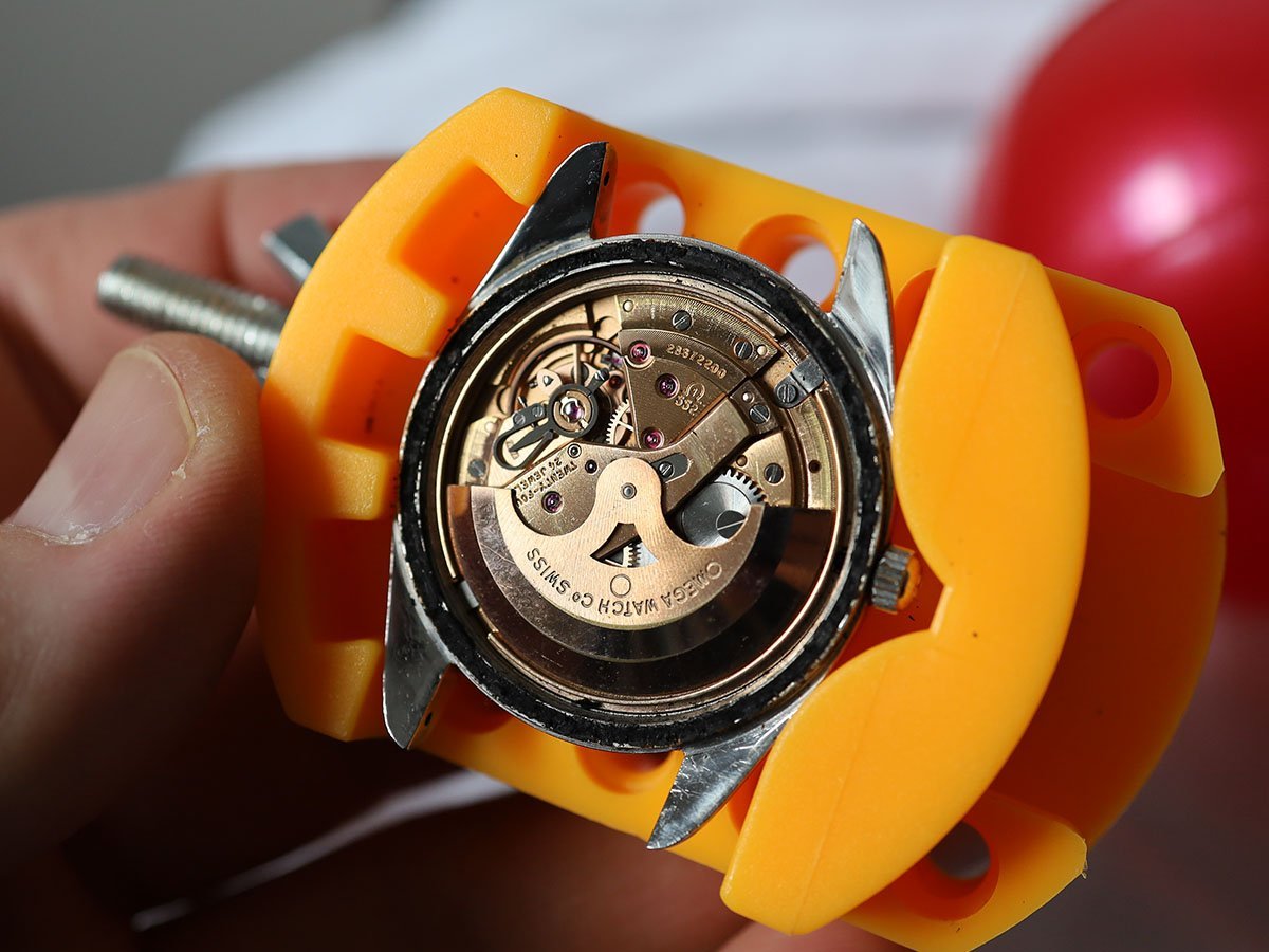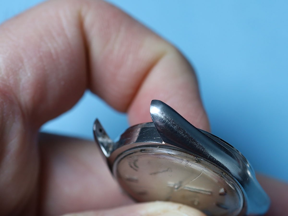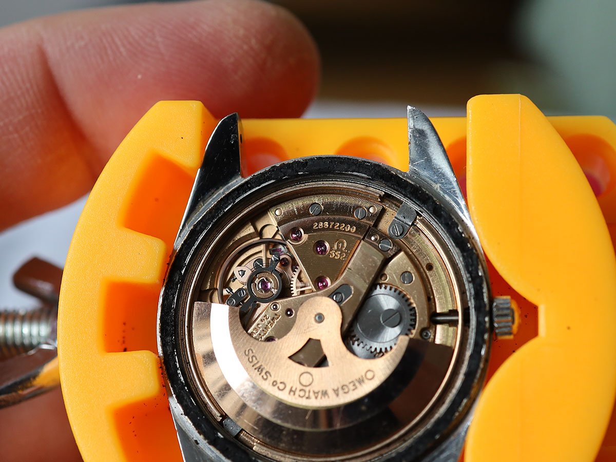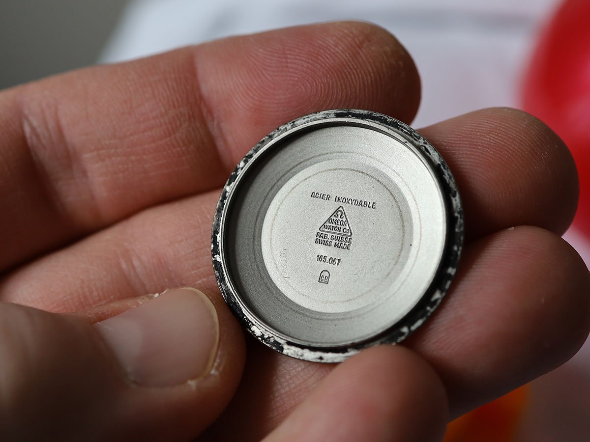 There are watchmaker service marks scratched onto the inside of the case back, but from the black tar of the melted gasket, I think it's safe to assume that this was so long ago, that it no longer matters.