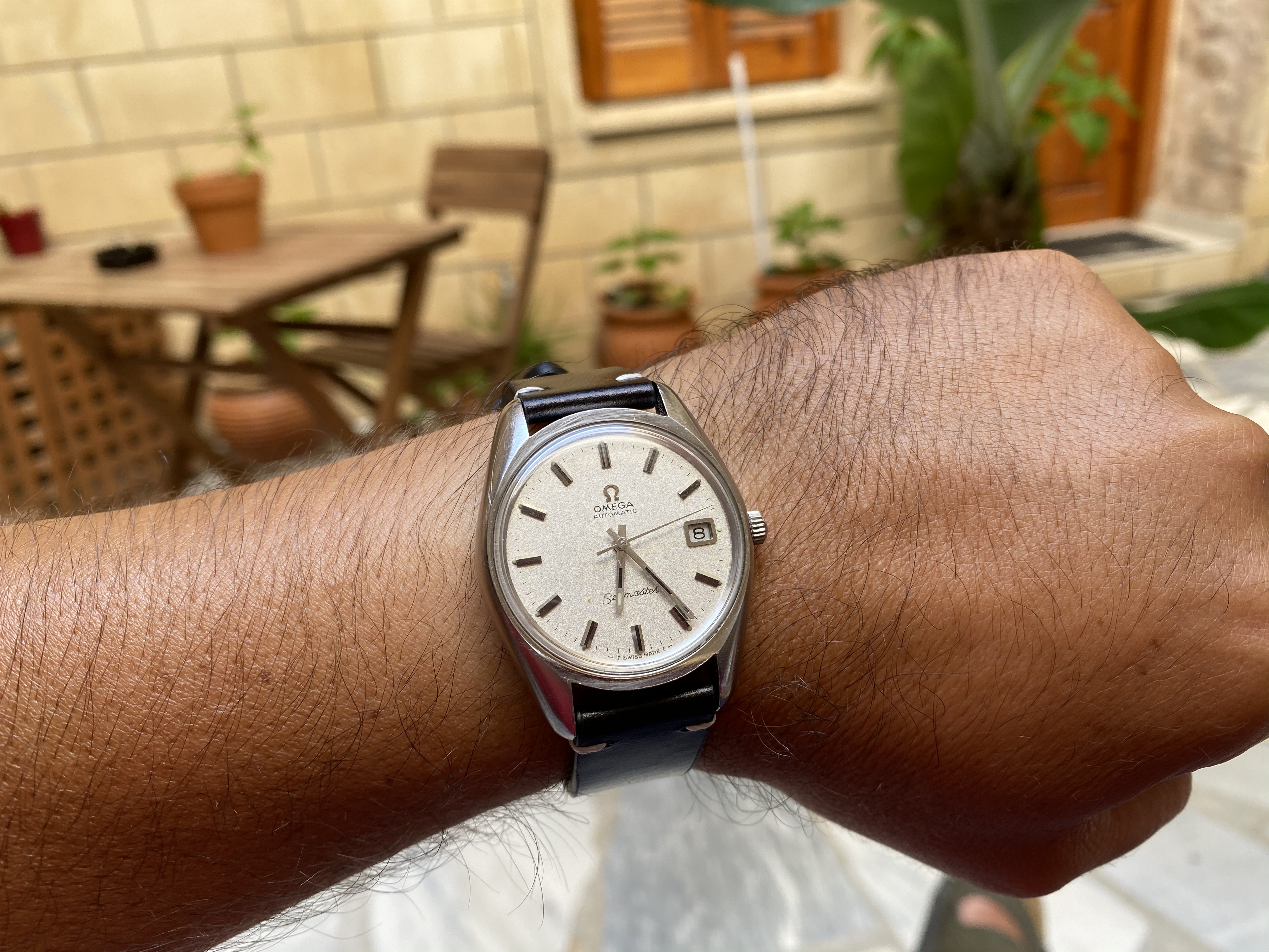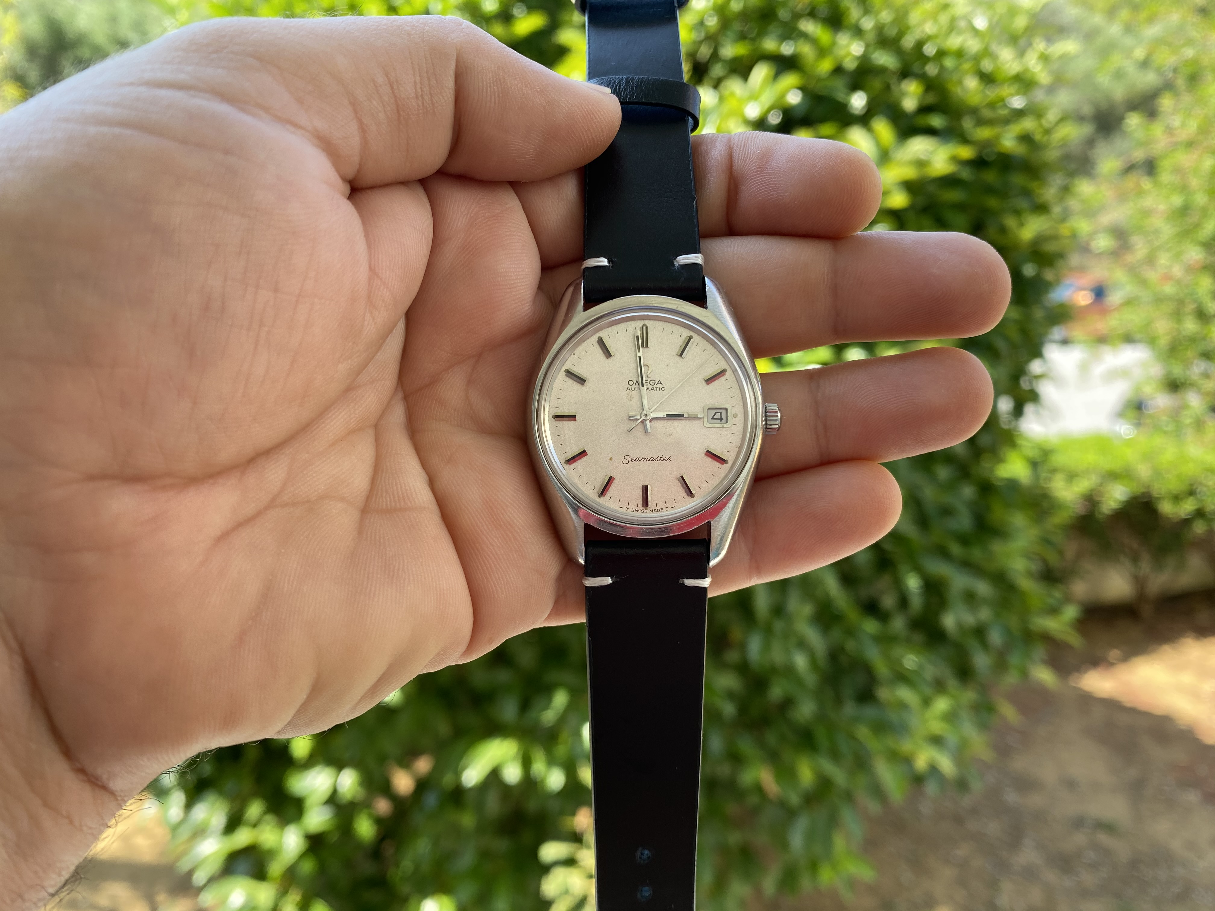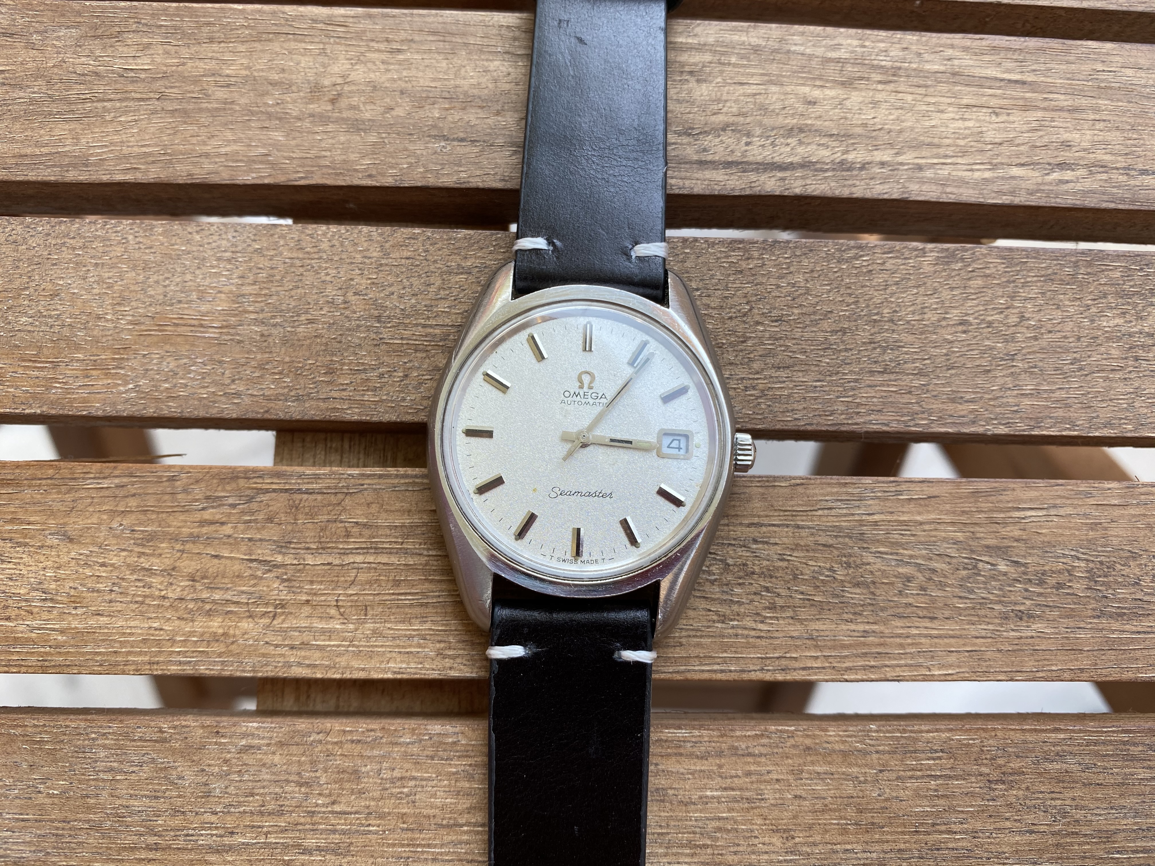 ·This is a very very nicely preserved Omega Seamaster Automatic with sparkles dial, and "fat boy" lugs, from my personal collection. Omega Signed crown, and glass. Everything is Omega signed except the strap and buckle There are of course a few small scratches and little marks on the sides and the back of the watch. The dial is really in a very good condition except some little marks which you can observe clearly in one of my photos but you don't really notice them by naked eye. My photos show a clear status of all the above description, and maybe some more that I did not notice, so please take time to observe all of them.