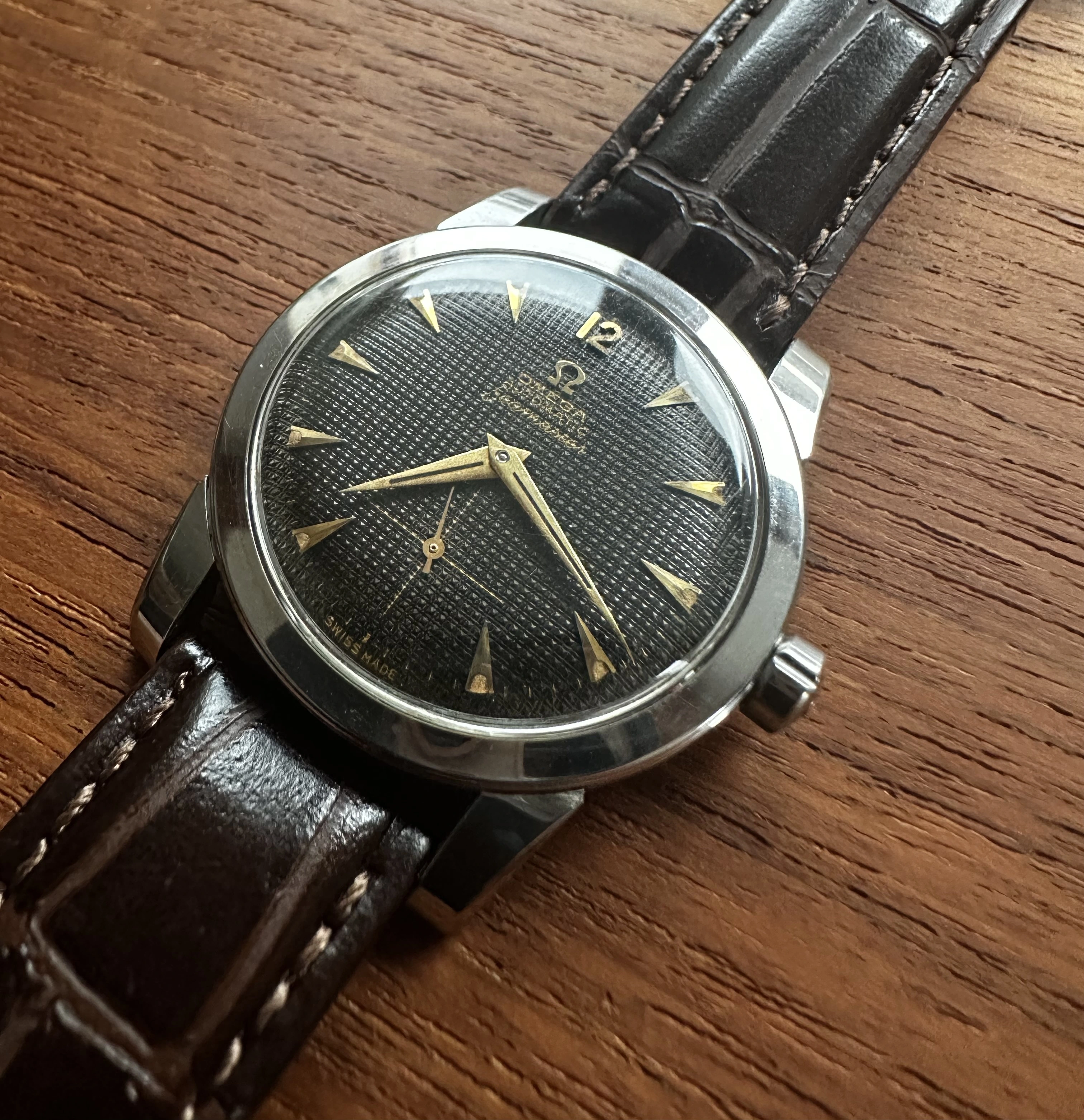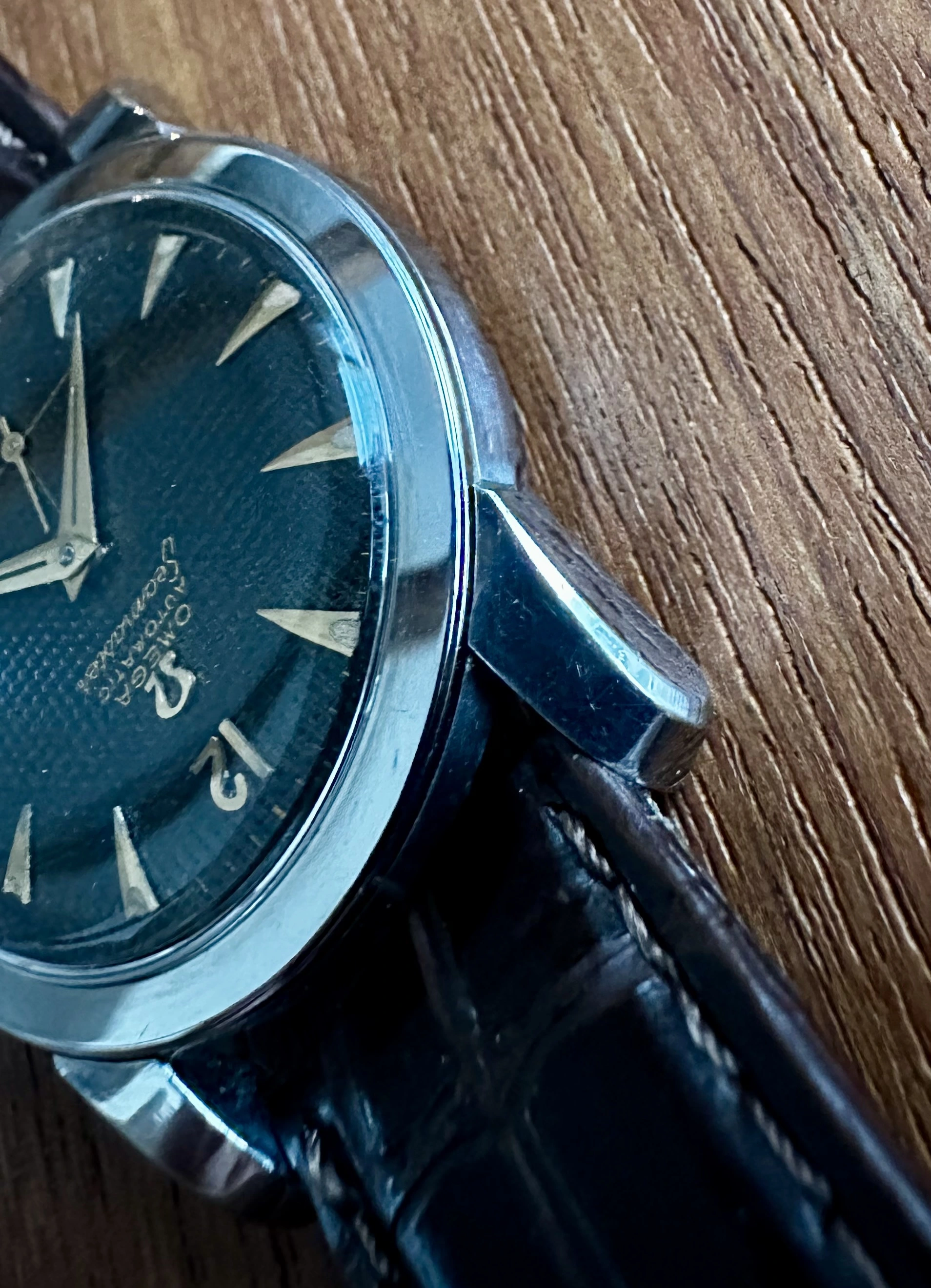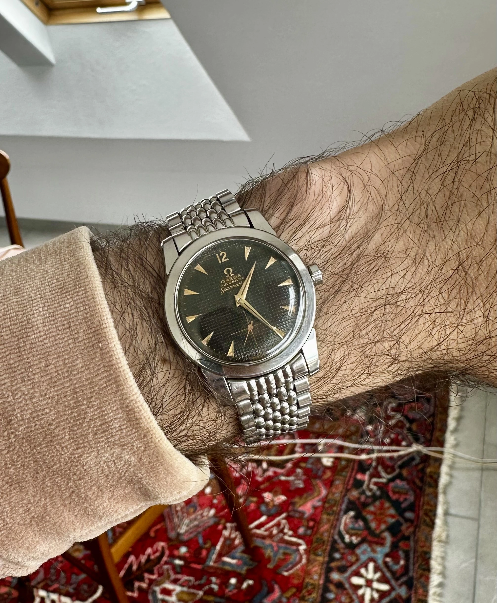 This watch used to belong to an old German Omega collector which passed away some years ago and I bought it last Friday at a watch fair in Germany.