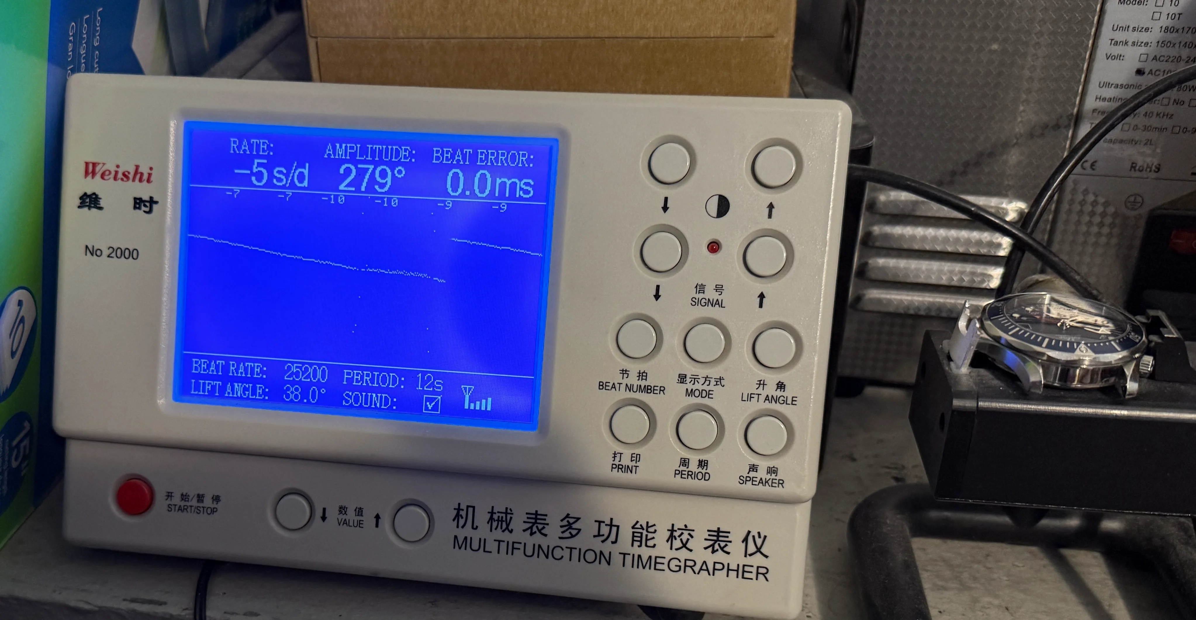 The movement is a caliber 2628C coaxial, which was the very last refinement of the 2500 series coaxial, equivalent to the 2500D (this can be confirmed by the font of the date wheel and the serial number series, which is 85475XXX (2500D revisions started after 8525XXX serials). The watch is running very well as per the reading on my timegrapher (below).
