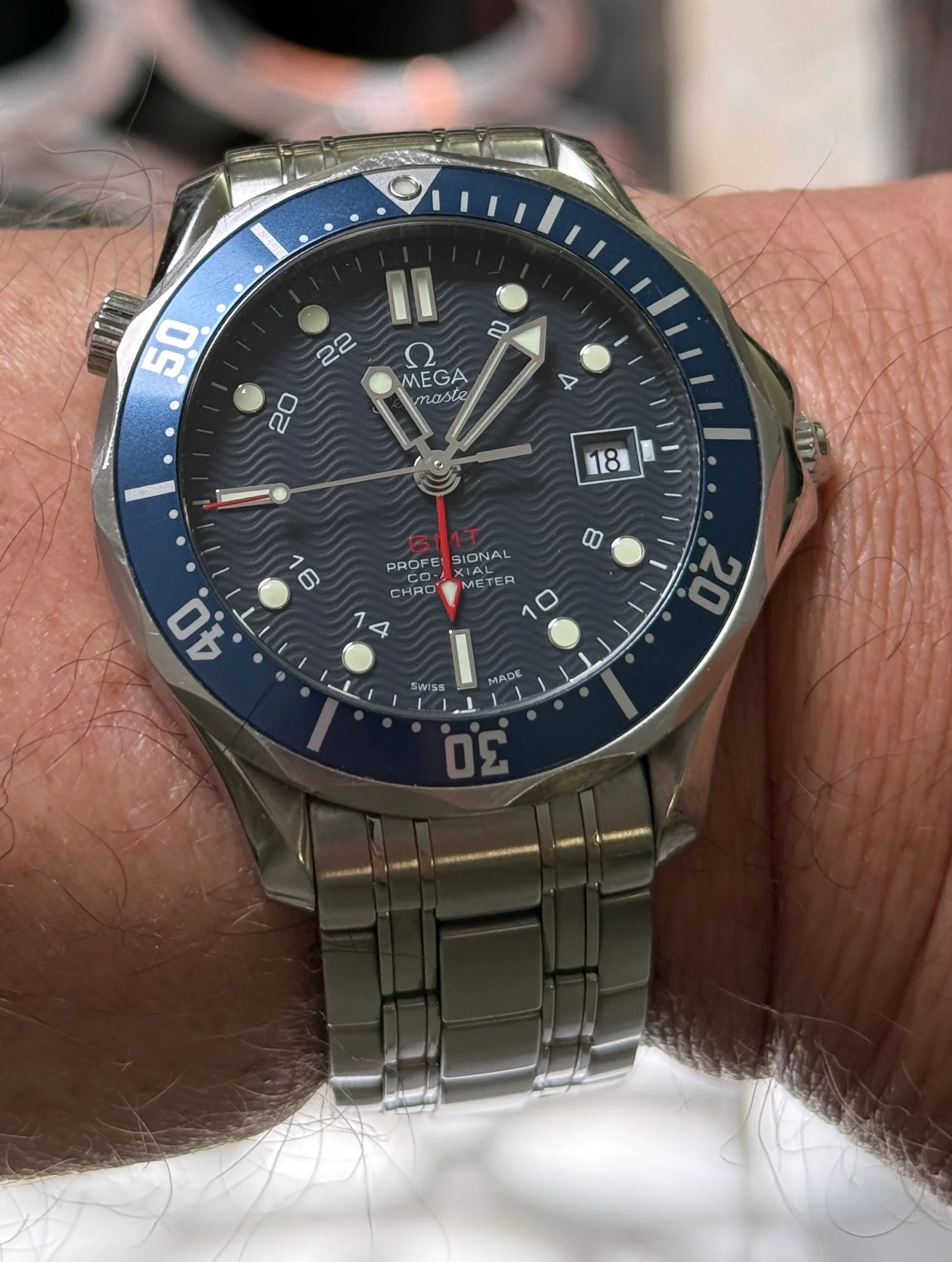 ·For sale ($2,975 OBRO) have the hard to find, Omega Seamaster Professional Bond GMT, 41mm, reference 2535.80.00 More details of this discontinued model can be found at: https://www.omegawatches.com/watch-omega-seamaster-diver-300m-co-axial-gmt-41-mm-25358000