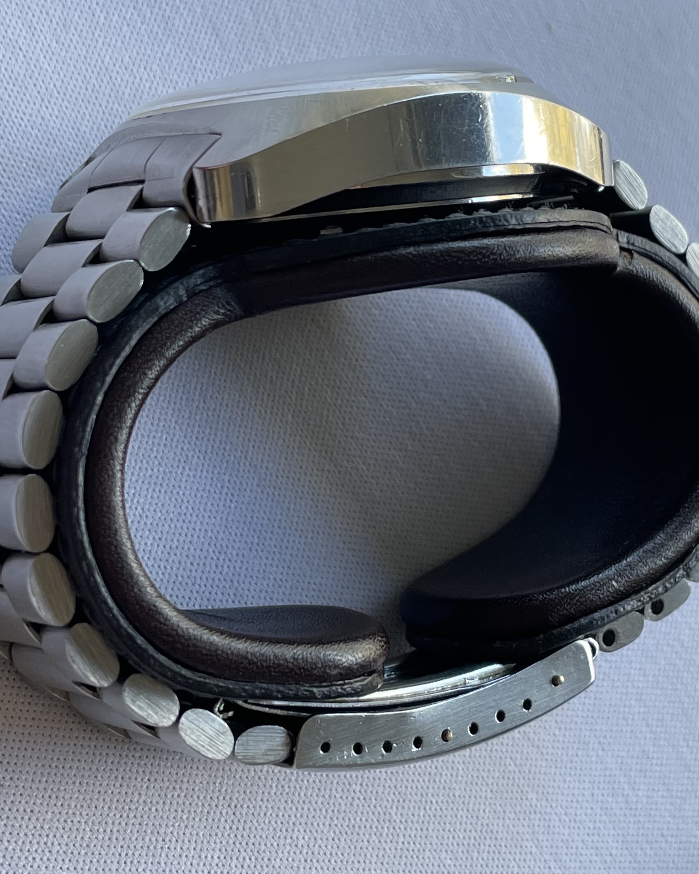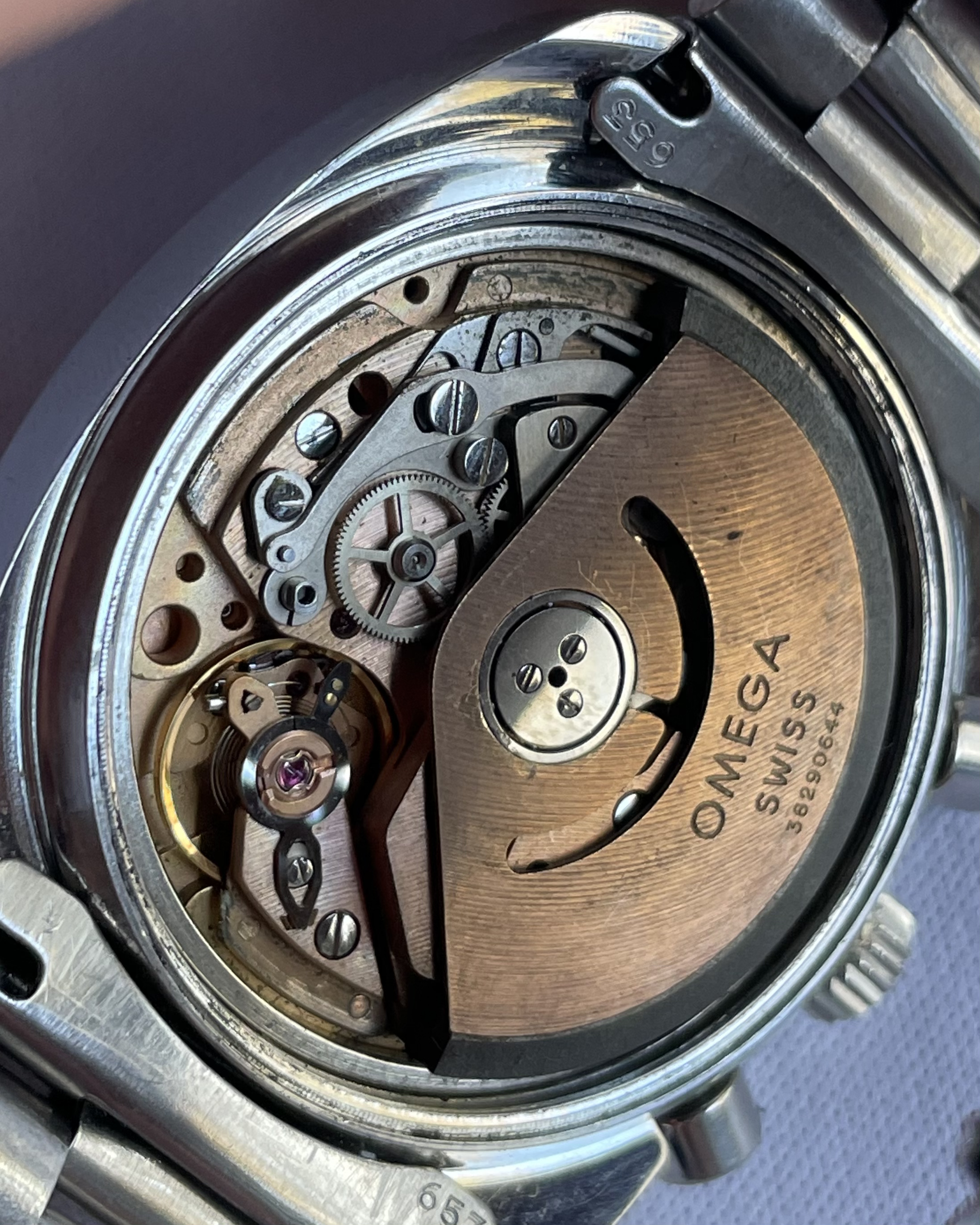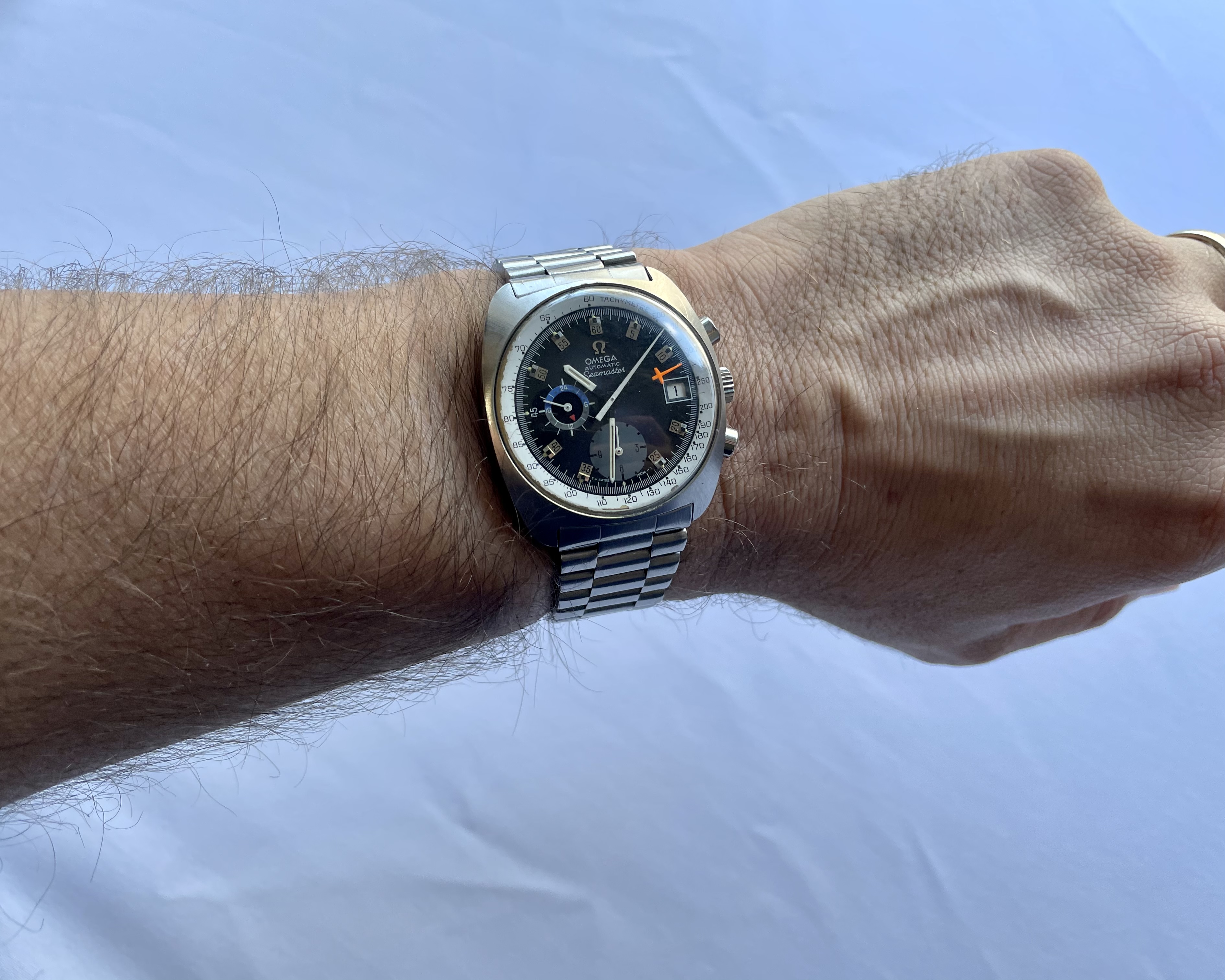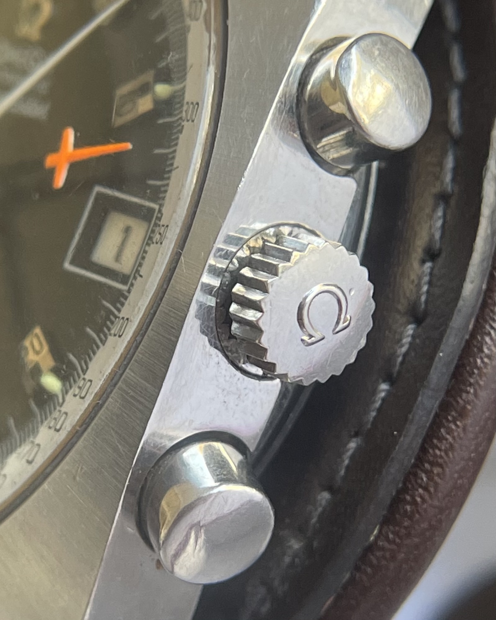 Movement: cal.1040 auto see here for far more on this movement/watch. Not serviced in my possession. For the past 7+ years in my possession, I’ve not worn the watch save for photos or 2-3x a morning around the house. Date wheel clicks through as expected. Winding and time-setting all works as expected. Crono second and minute hands reset to 12 as expected. Based on movement appearance, I’d assume the watch deserves a service were it to be worn/wound with any regularity. (Service was not a priority for me as I largely kept the watch as a great example of an otherwise rare dial variant.)