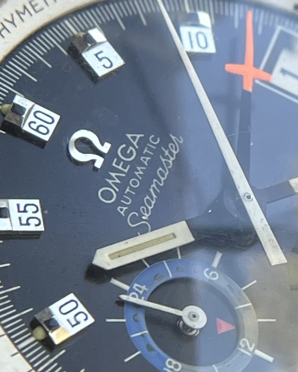 -> Blue-Black “Yachting” dial with OAS (OMEGA AUTOMATIC Seamaster) verbiage and iridescent gray sub-dial