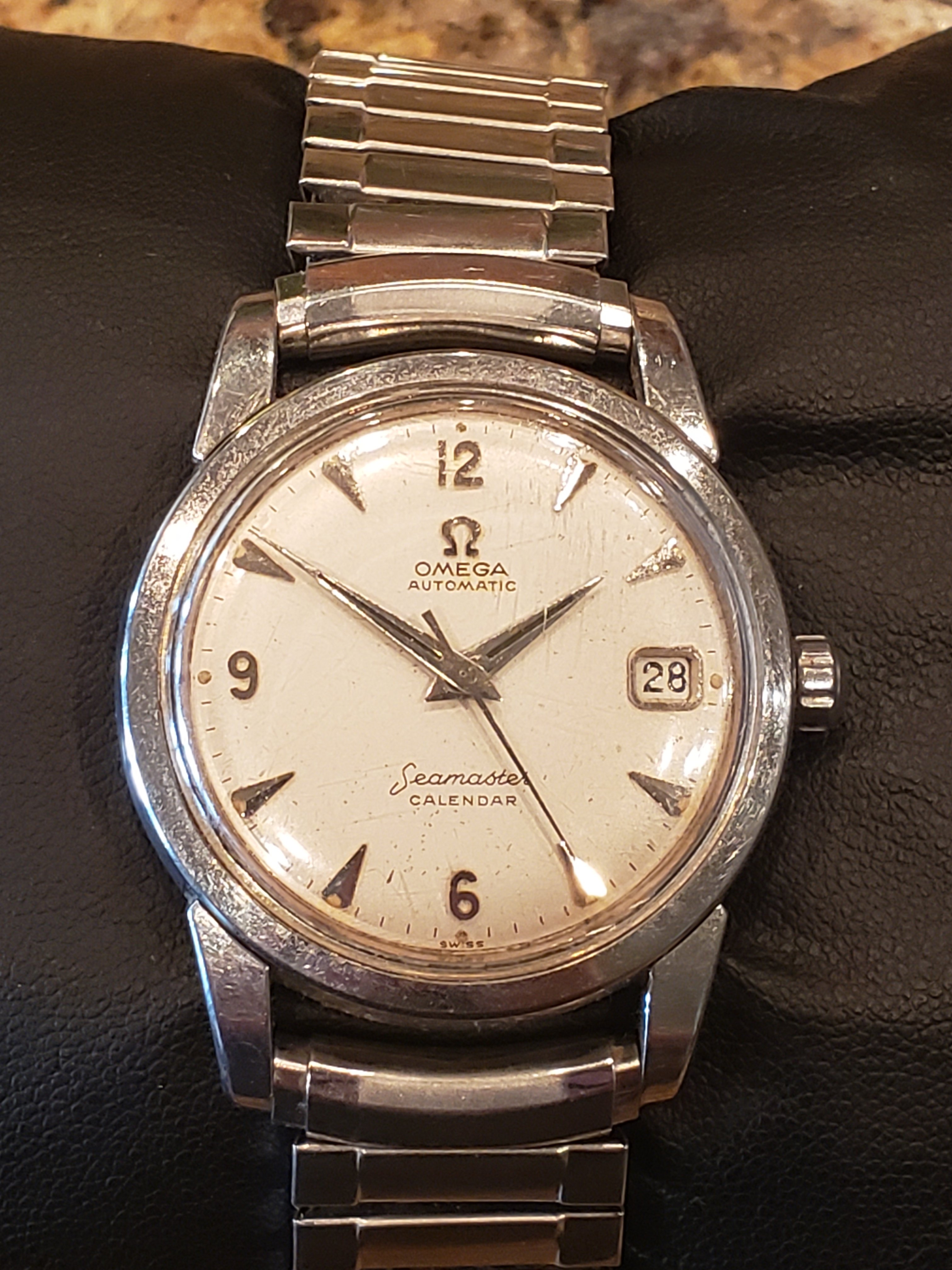·Hello again everyone, I thought I would share some photos of my grandfather's daily Omega Seamaster Calendar 2849. I finally got some photos of the movement and I am dropping this watch off to be serviced by Kelly at Art of the Watch. I realize that this piece is nowhere near as valuable as the stunning 1940s chronograph but this will be a gift to my mother. I am just having a little trouble reading the caseback, I can read the 2849 but the second part is a little hard to read.