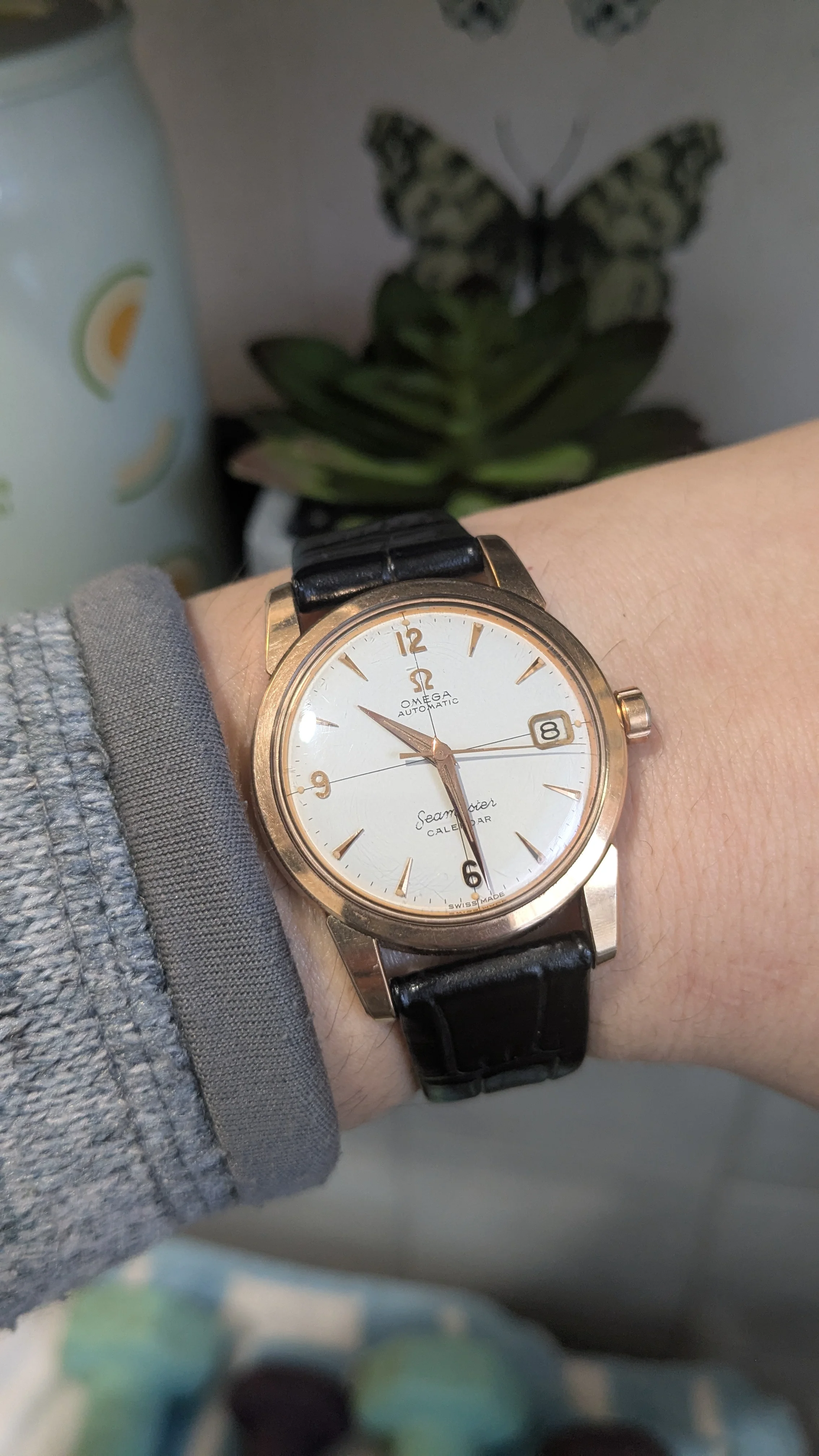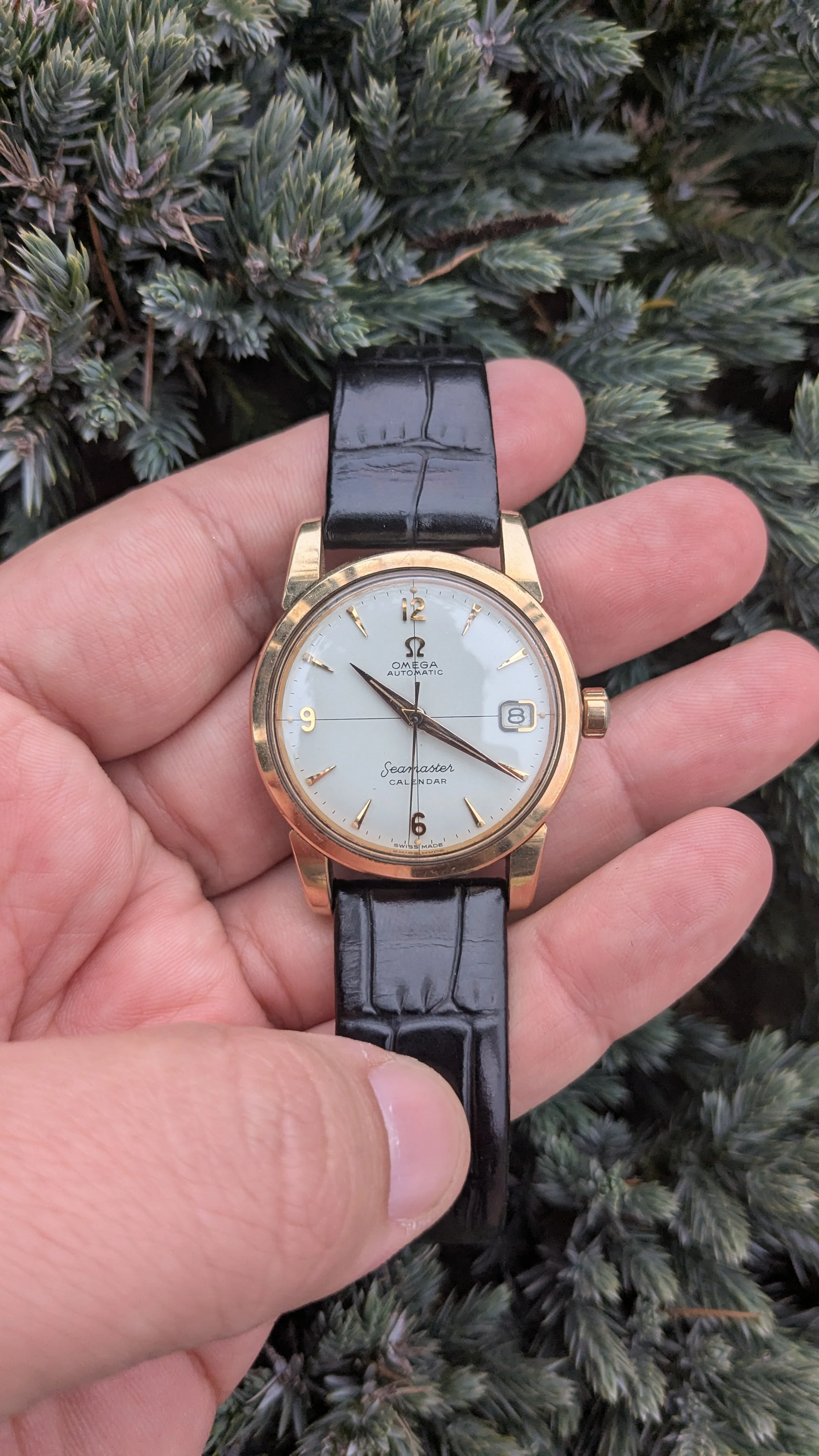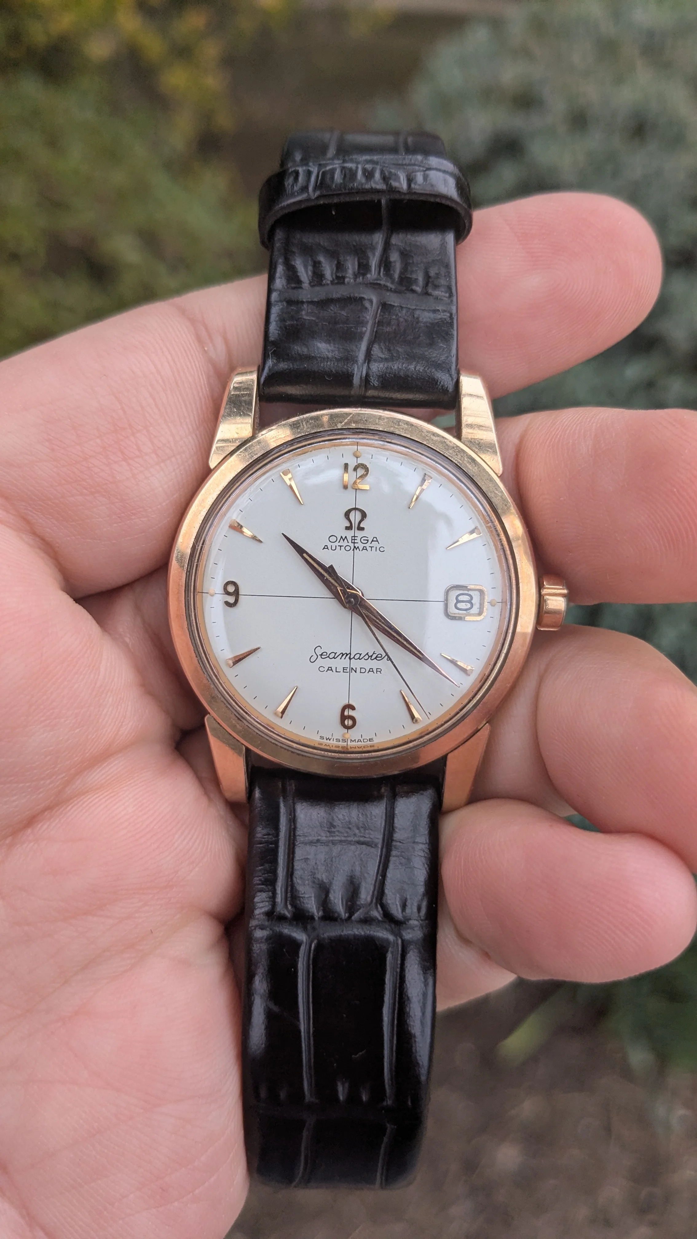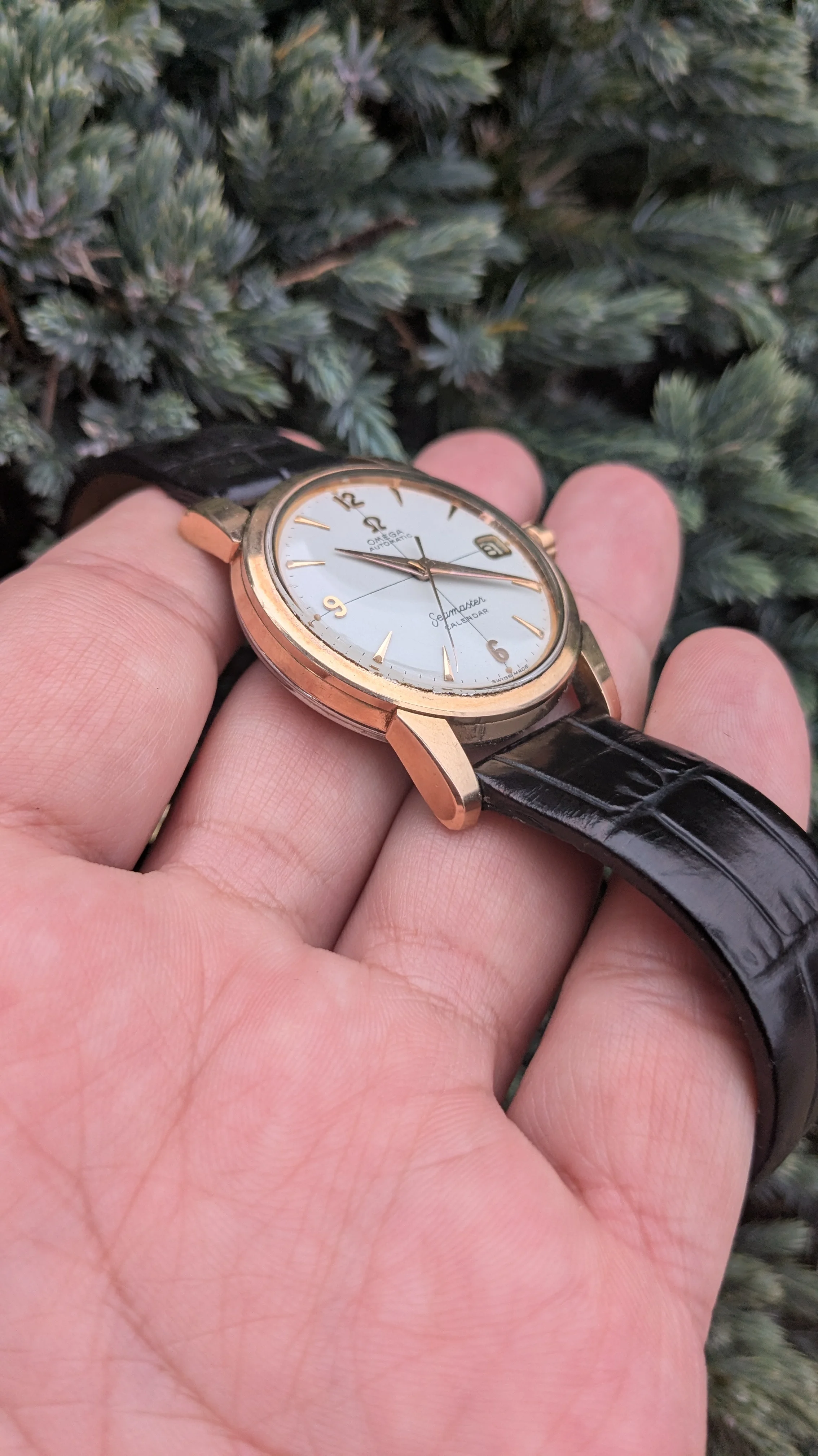 I have for sale a vintage Omega Seamaster Calendar 2849 34mm in stainless steel with Rose Gold Cap in sharp condition. Dial is in prestine clean condition. Rose Gold matching furniture. I think this is a really nice and clean example of the reference and wears very well.