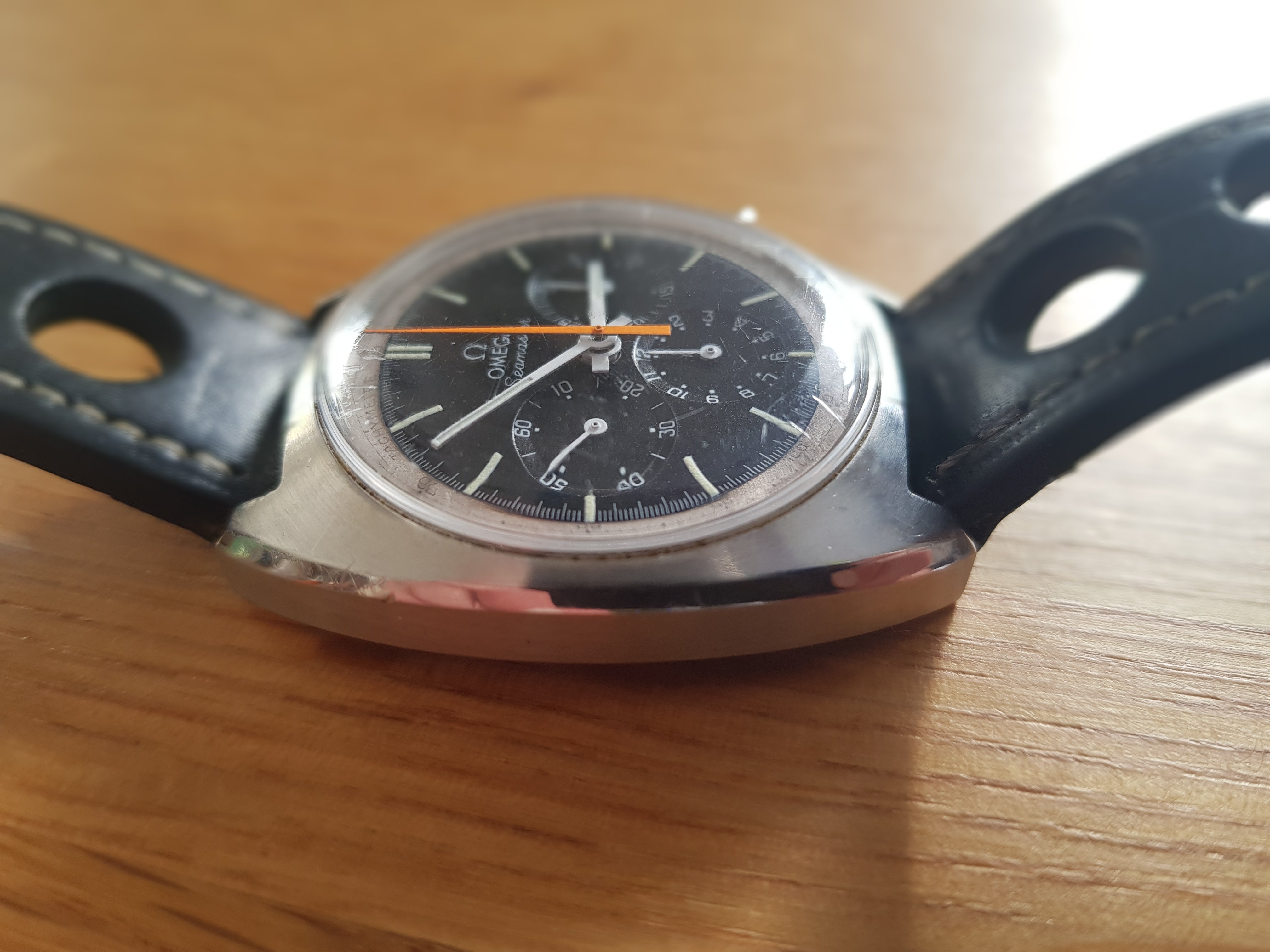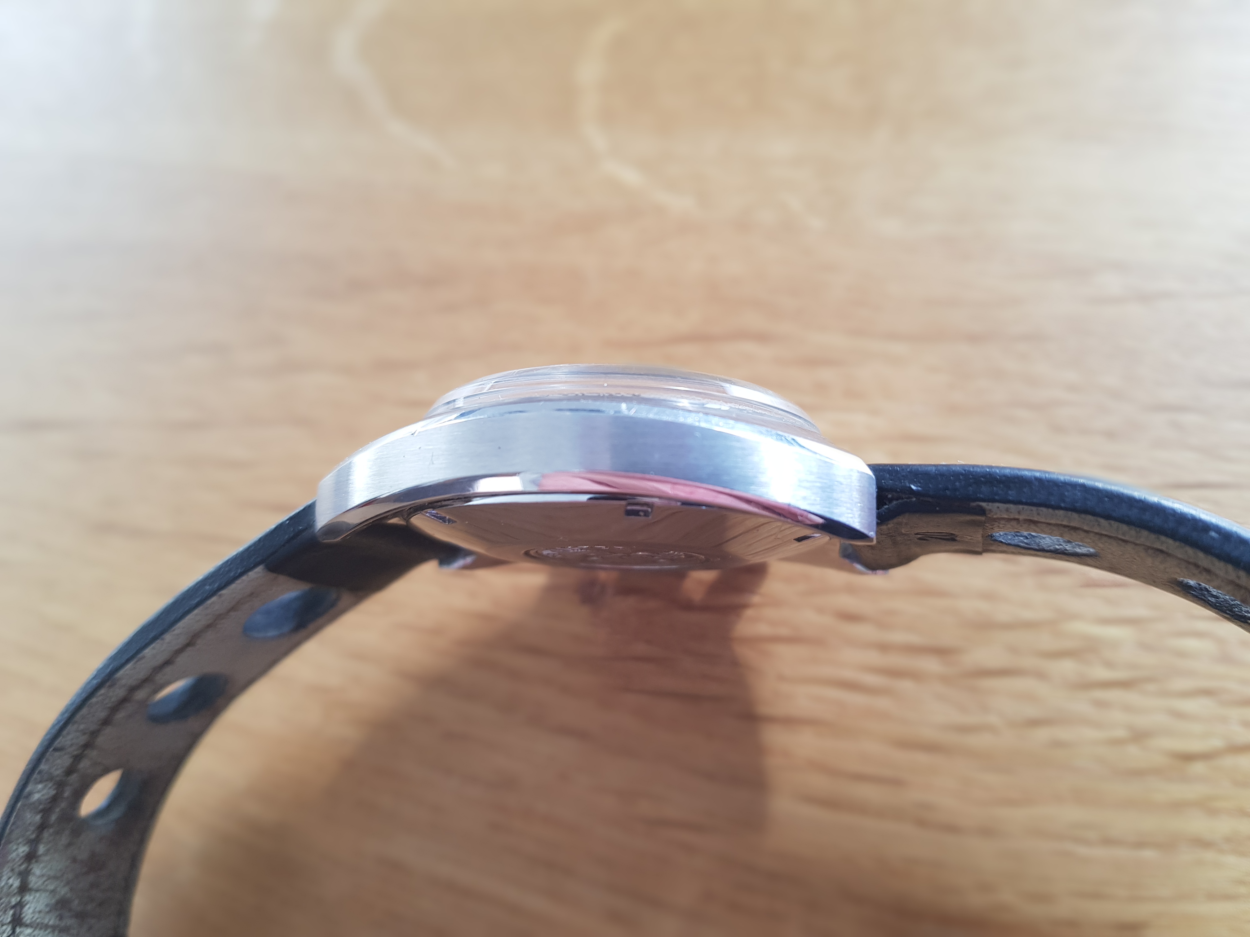 Case in good and sharp condition (facets are still there) with some small scratches (on the backside) and a small dent at 10 o´clock.