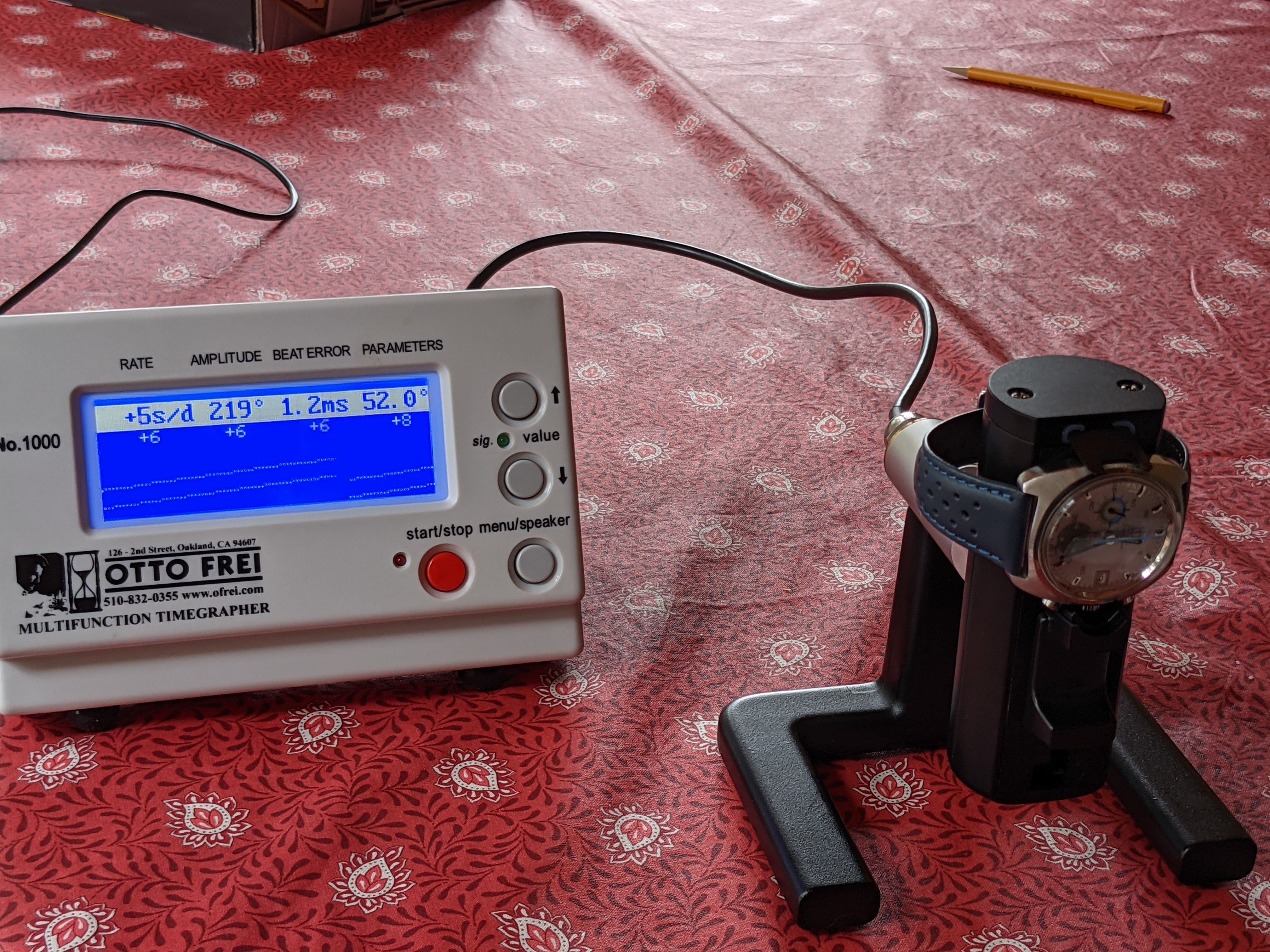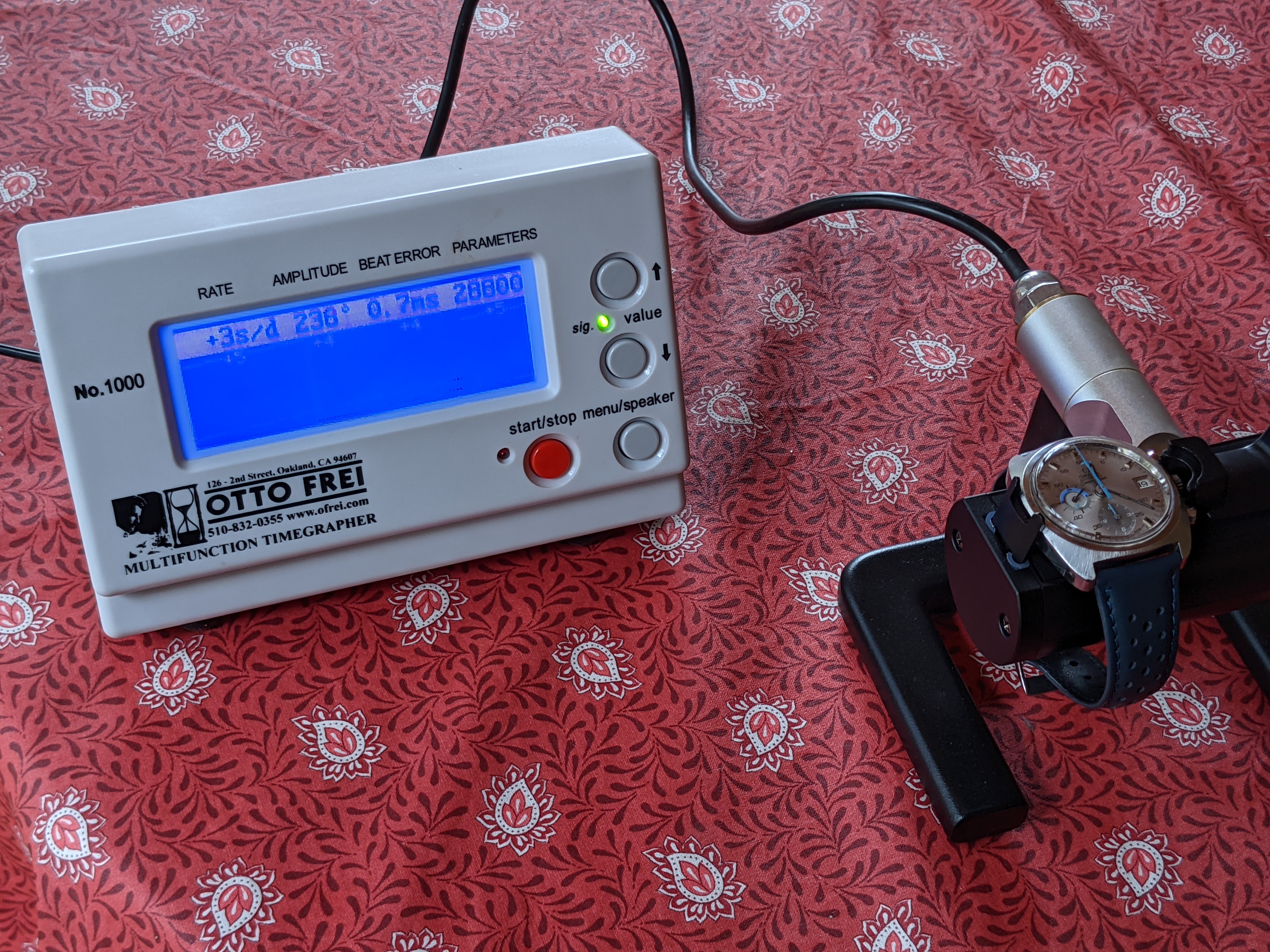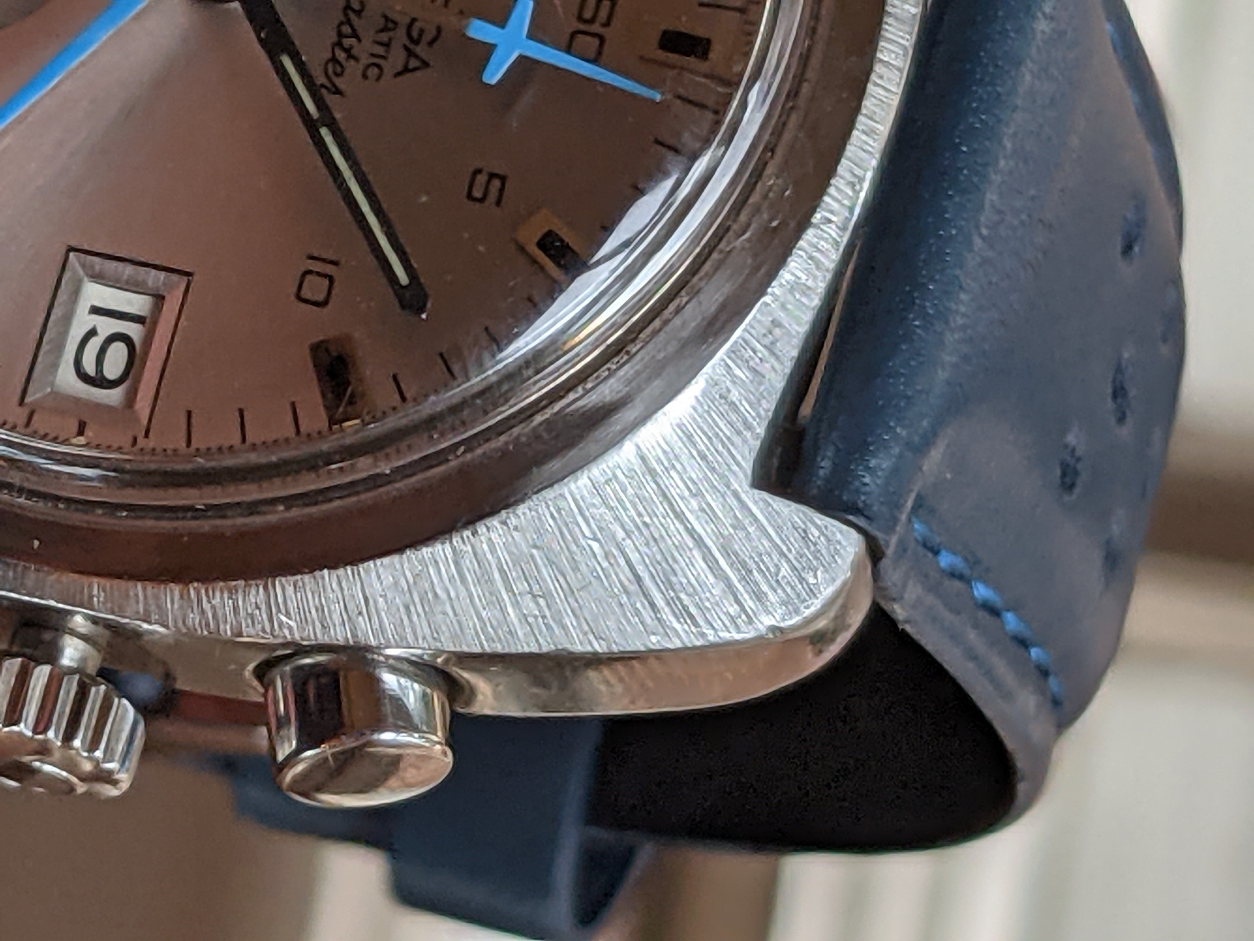 Purchased on eBay from a dealer in Portugal in early 2019, I’ve enjoyed this watch for 3 years now. I haven’t opened the case since service, but as you can see from the timegrapher photos, it’s running great. Service receipt will be included with the watch. It comes on a blue leather racing strap made by Abel Court of Heuertime, which matches the chrono hands perfectly. Read more about the 1040 family at http://www.calibre1040.com/. (Thank you @Andy K for your great work!)