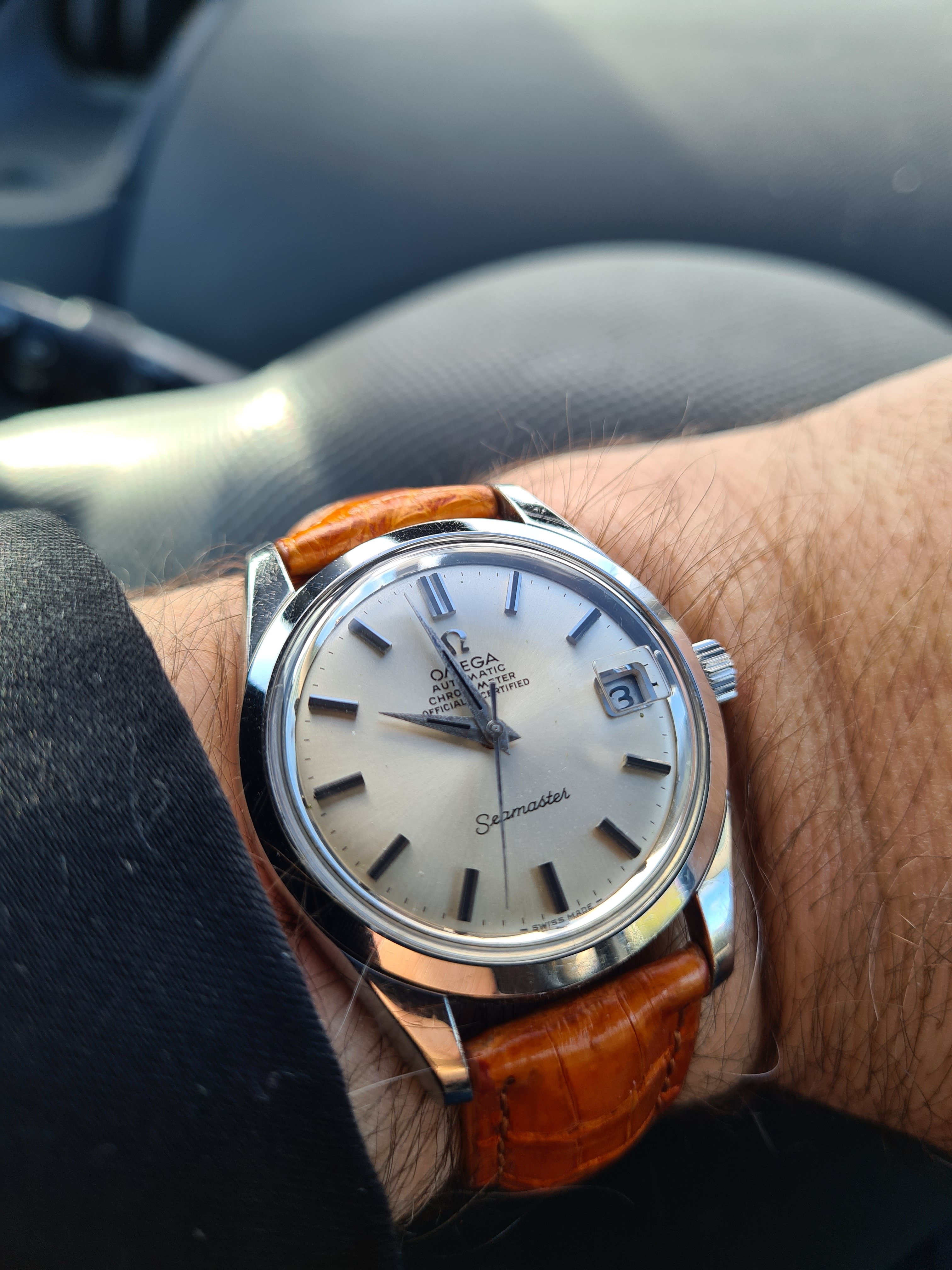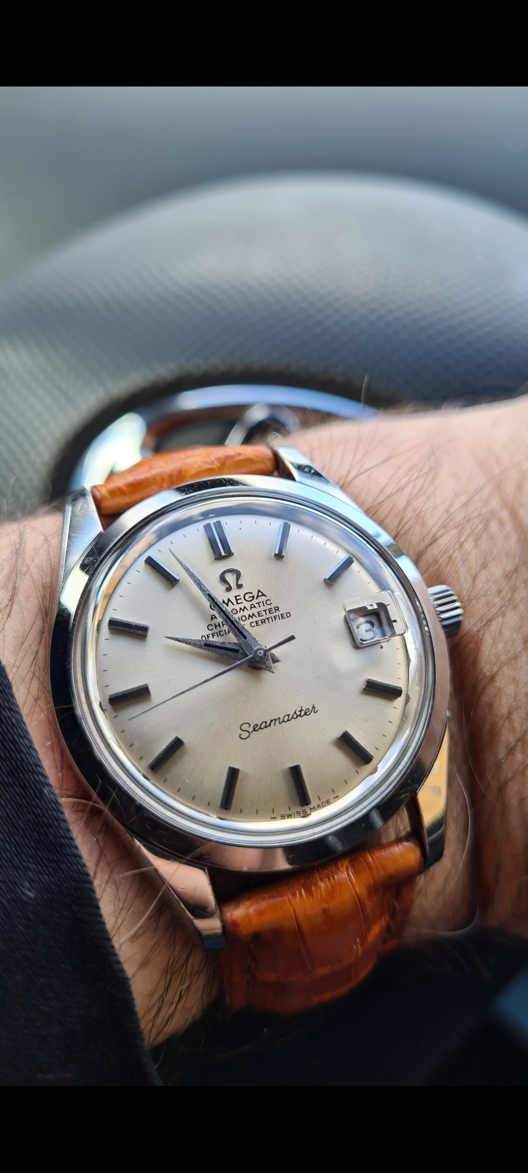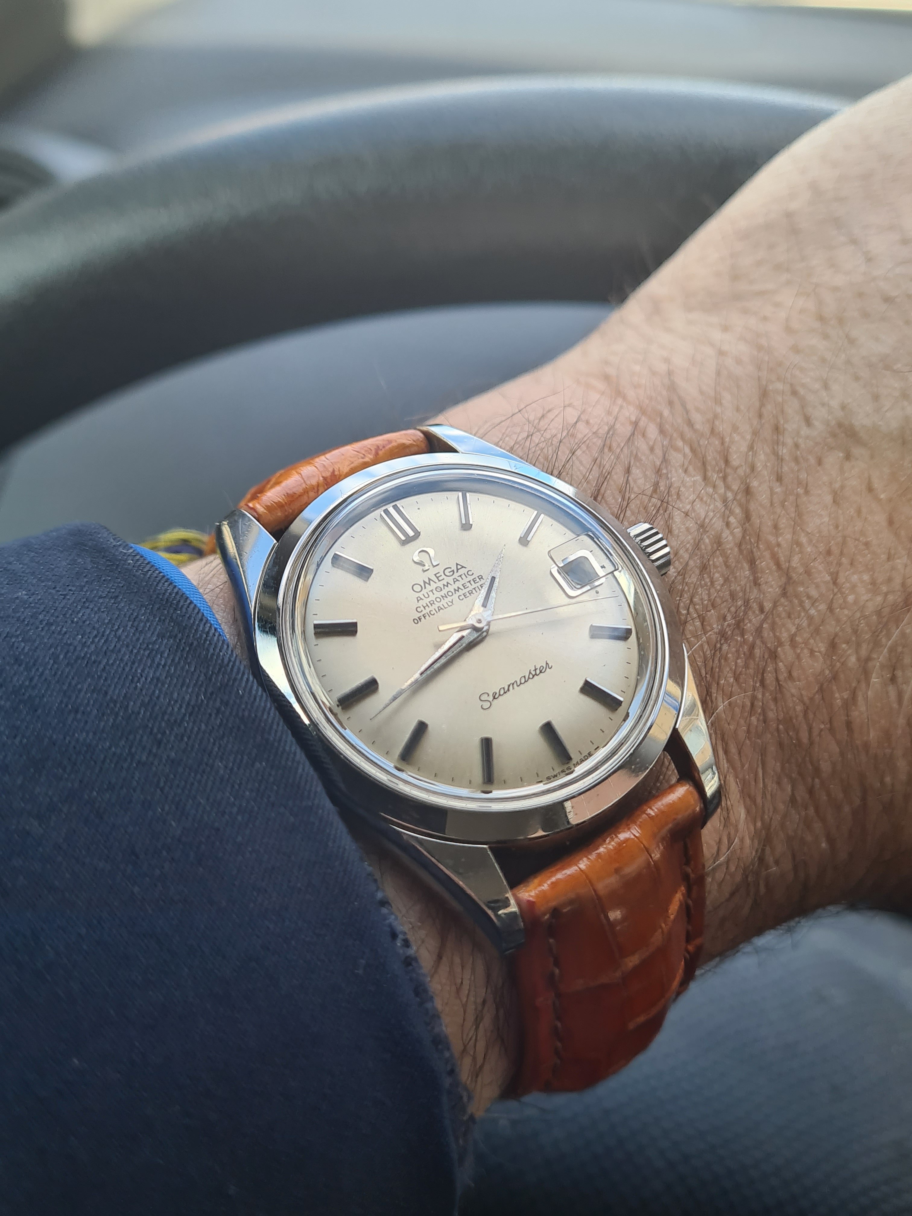 For sale today a omega seamaster 168.024/166.010 with a chronometer caliber 564. Dauphine hands with champagne dial. Service history is unknown but the watch runs great.