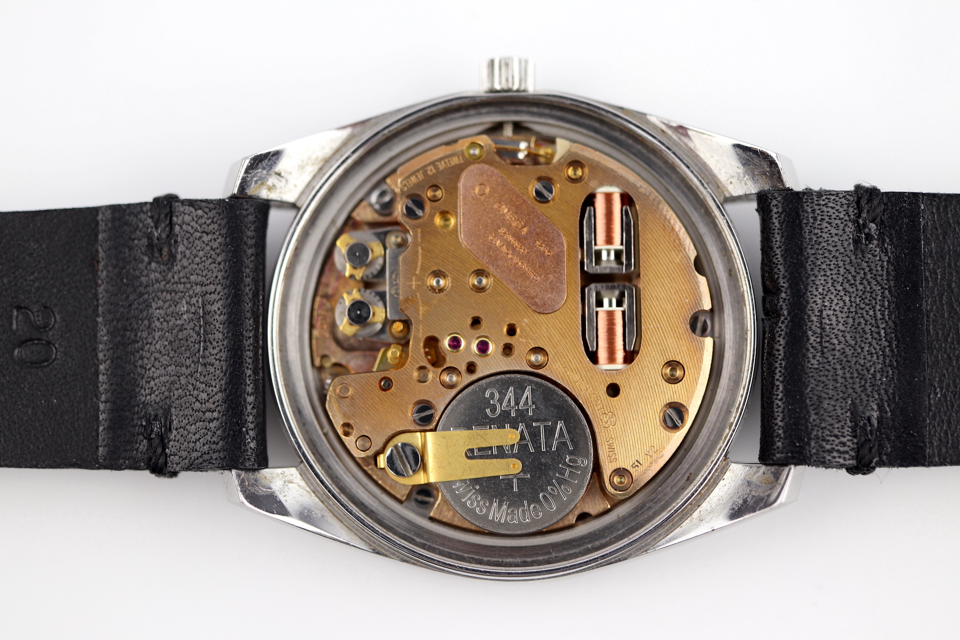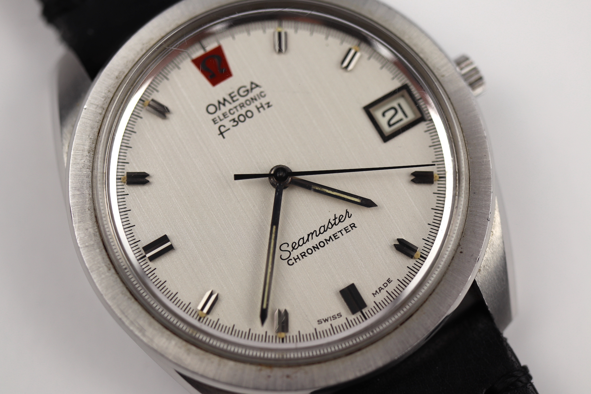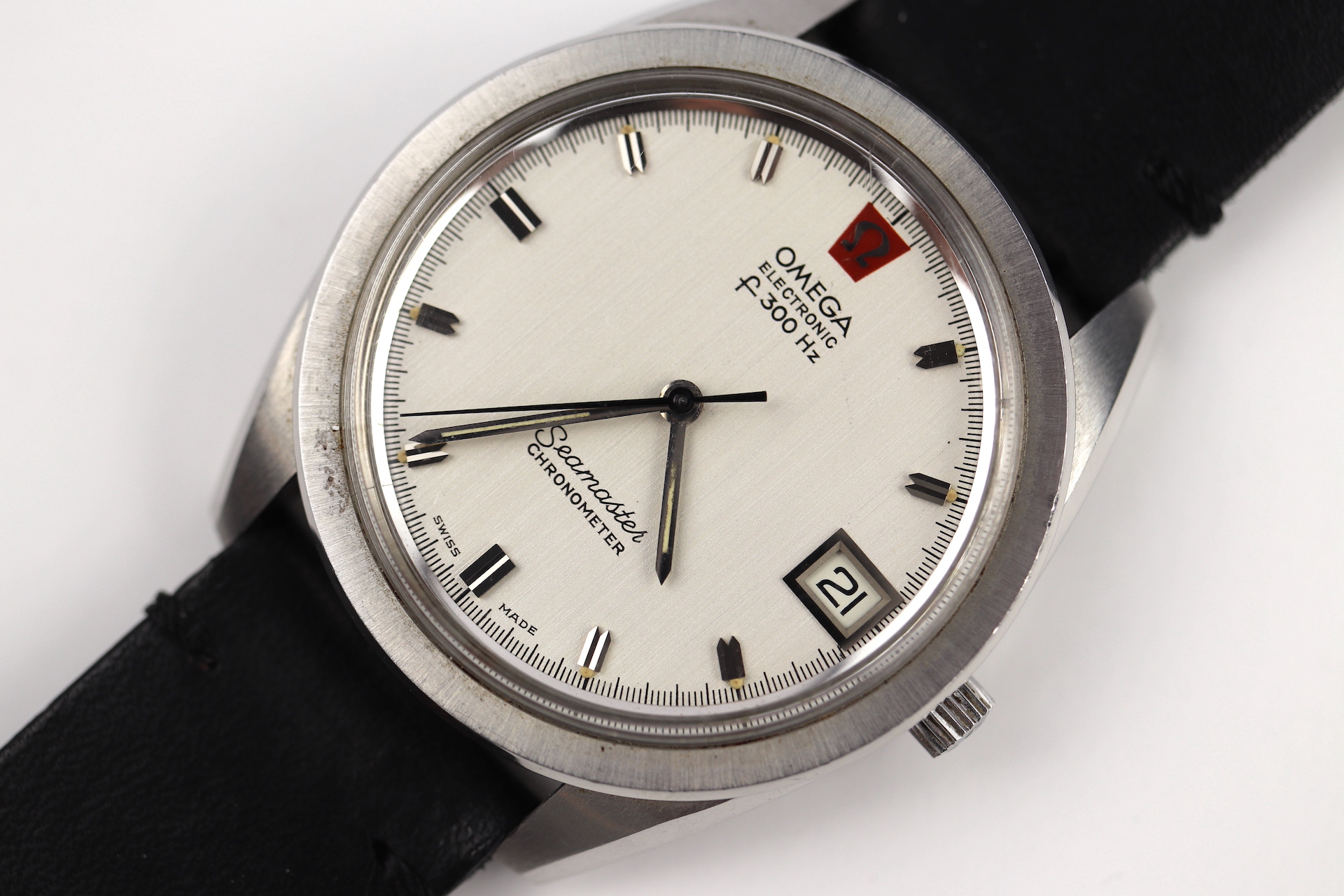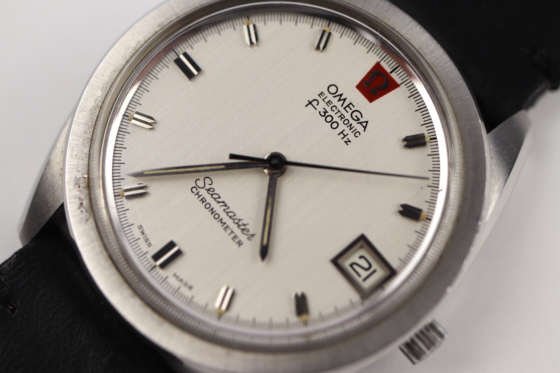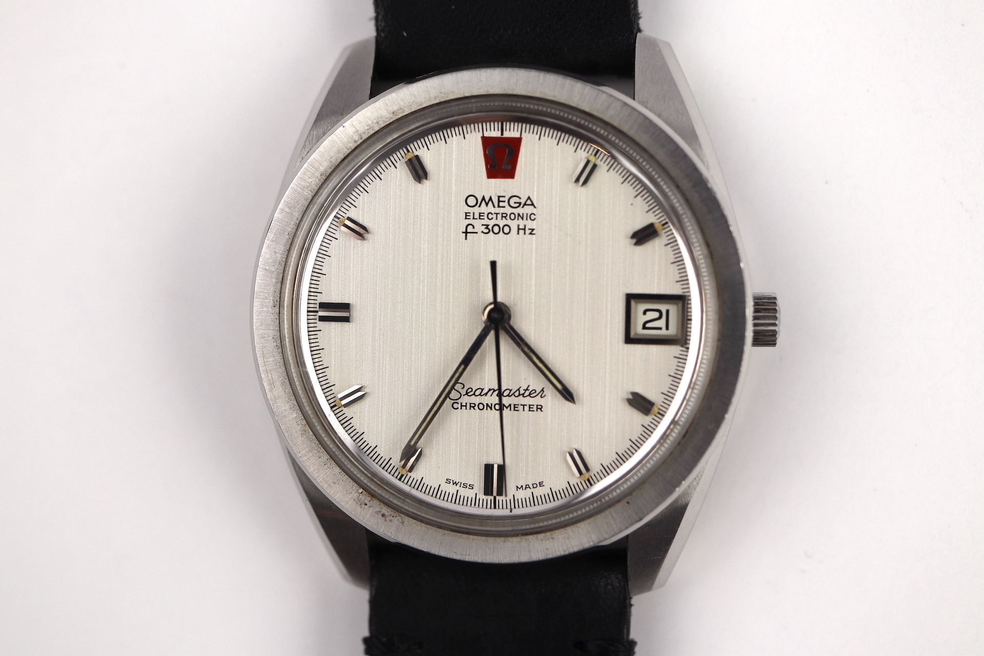 ·For sale, I have an Omega Seamaster Chronometer F300 Ref: 198.001. It has the Caliber 1250 which is an electronic movement. The watch was just serviced and it has a new battery and gasket. The calendar date changes automatically which often is an issue on these watches. It appears to be all original. The serial number would suggest the manufacture date to be 1970. The watch will come with a new black leather strap.