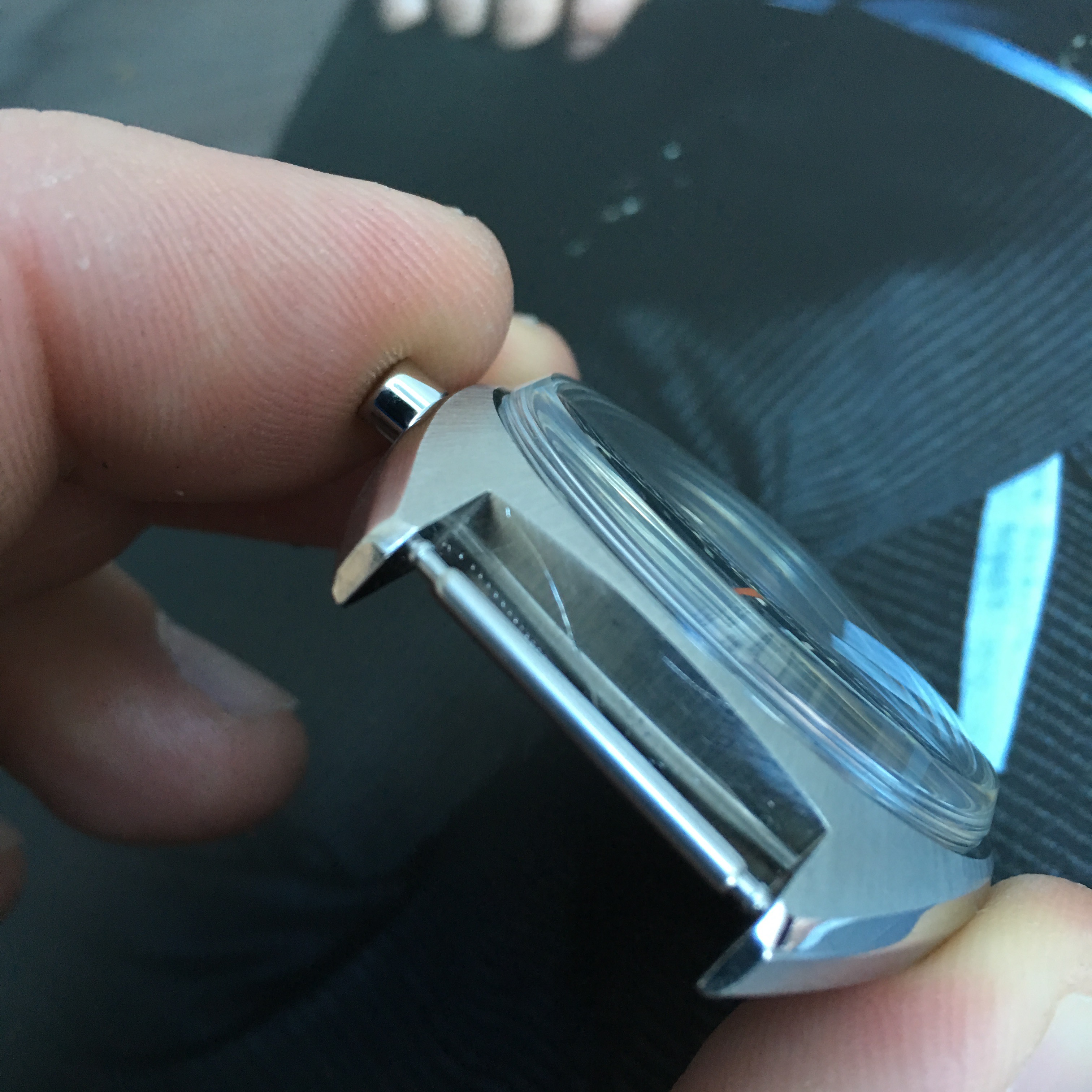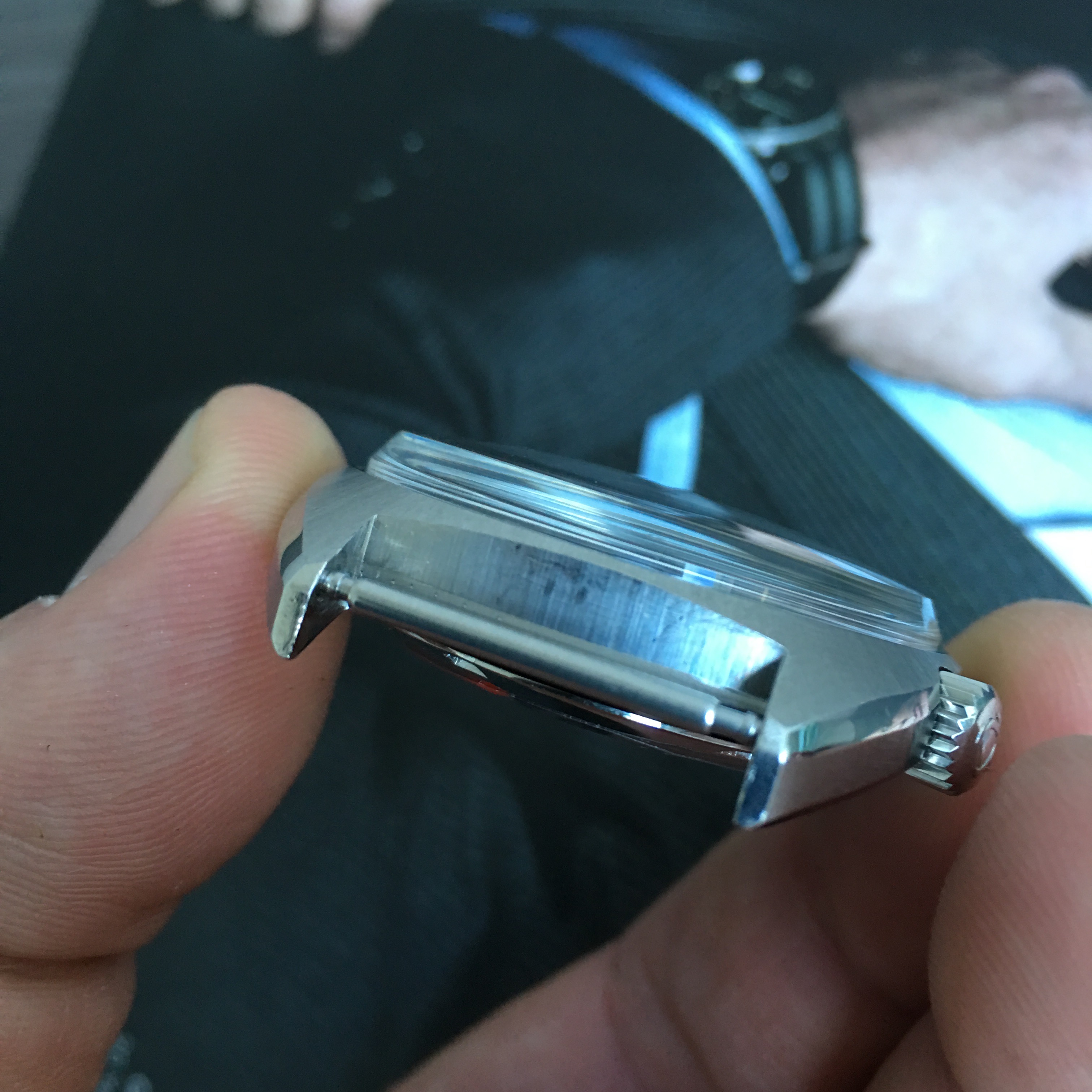 Case - The case has been refinished, there are some light scratches between the lugs, one small dink at 5 in the bevel, and some light scratches to the back on the main case at 12, and 5 where someone has in the past slipped with a tool.