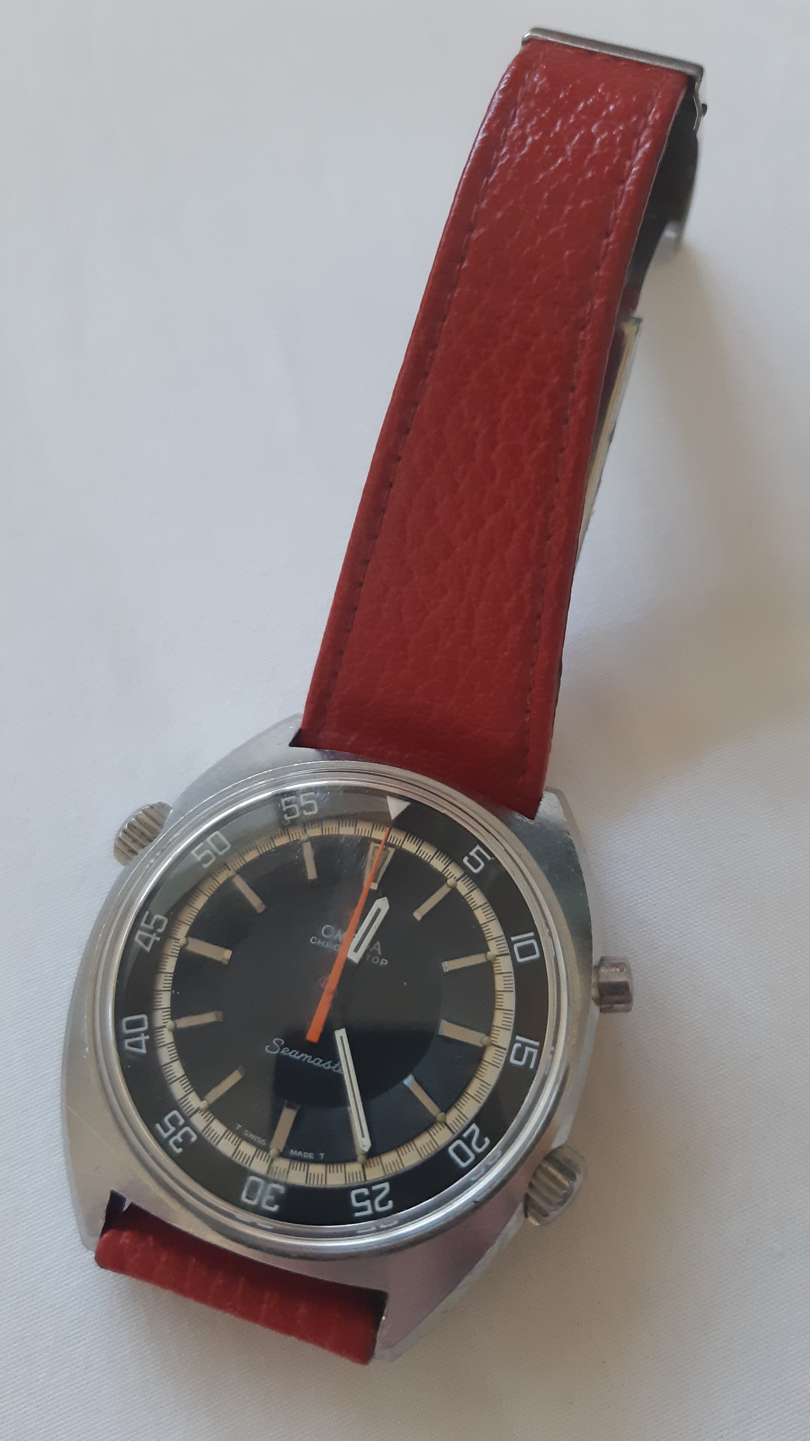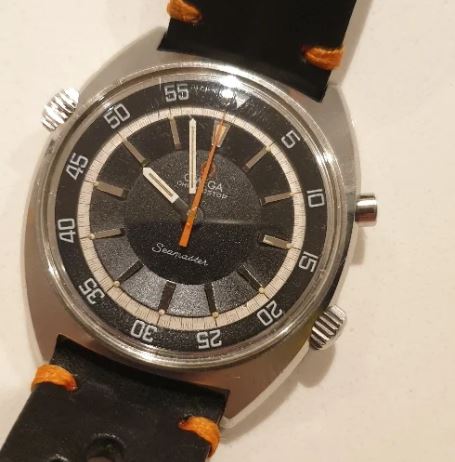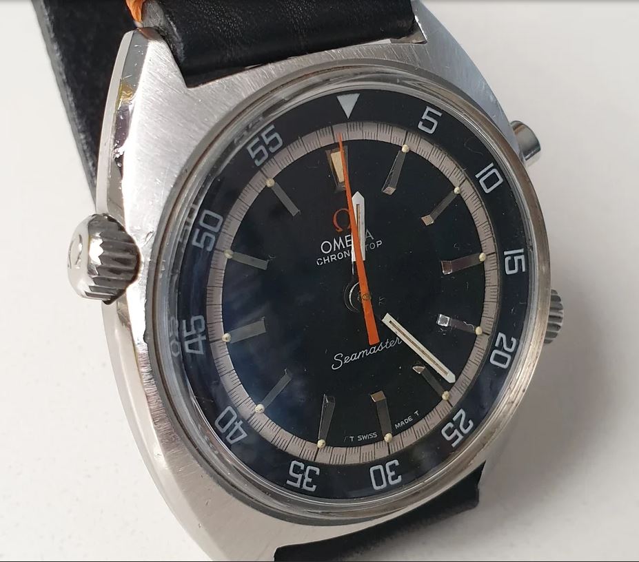 The Chronostop Regatta also called the “countdown”, is distinguishable by a blue and red rotating bezel. The variant is designed with a 15-minute regatta scale that is ideally set for regatta countdowns. This comes as a function tailored for such races, as sailboats are positioned at a starting buoy when the gun goes off, and cross the starting line 15 minutes later. It is distinguished by the name “Seamaster” written below the dials. Very few of these models were ever sold, making it a very rare variant for this watch.