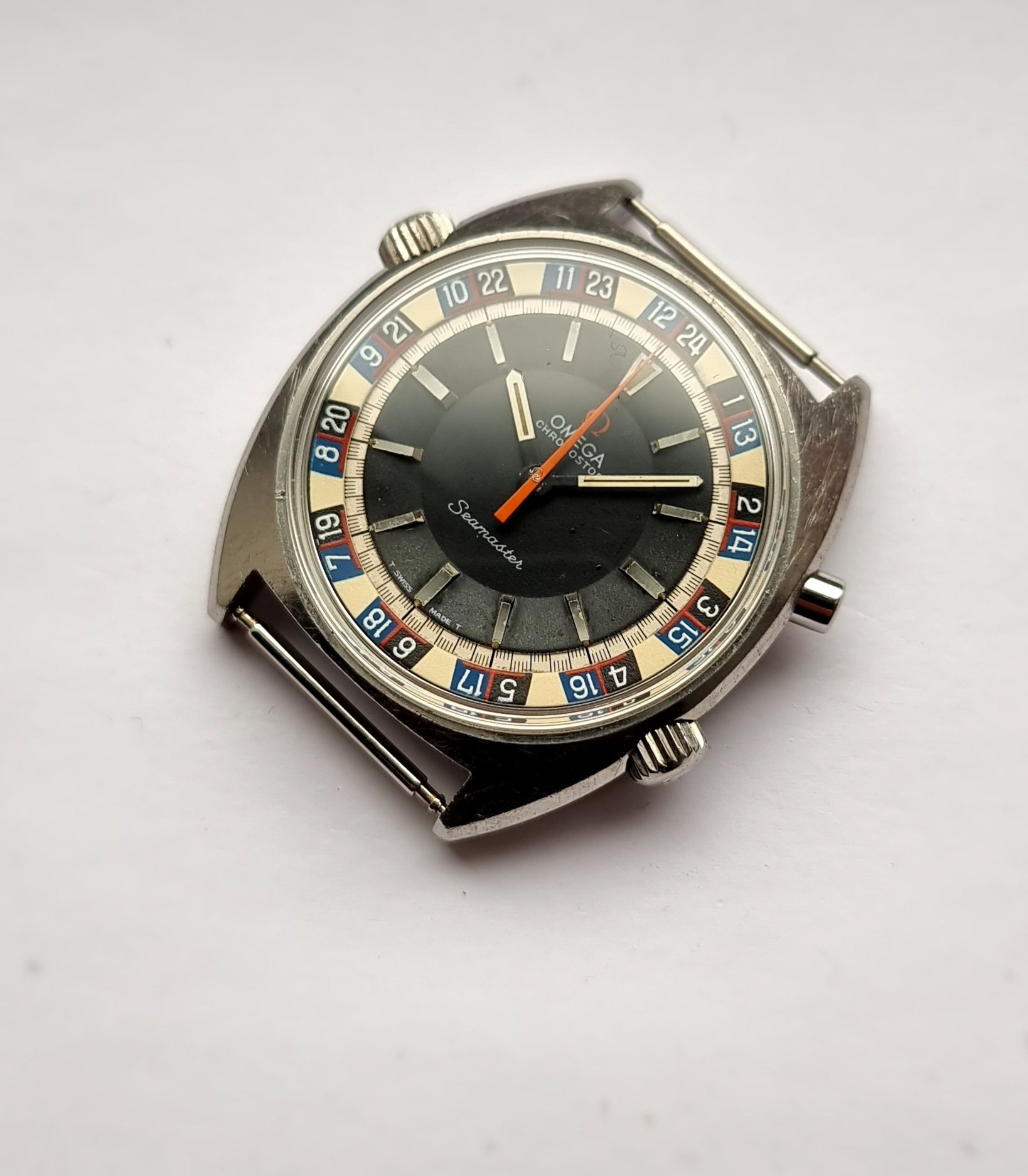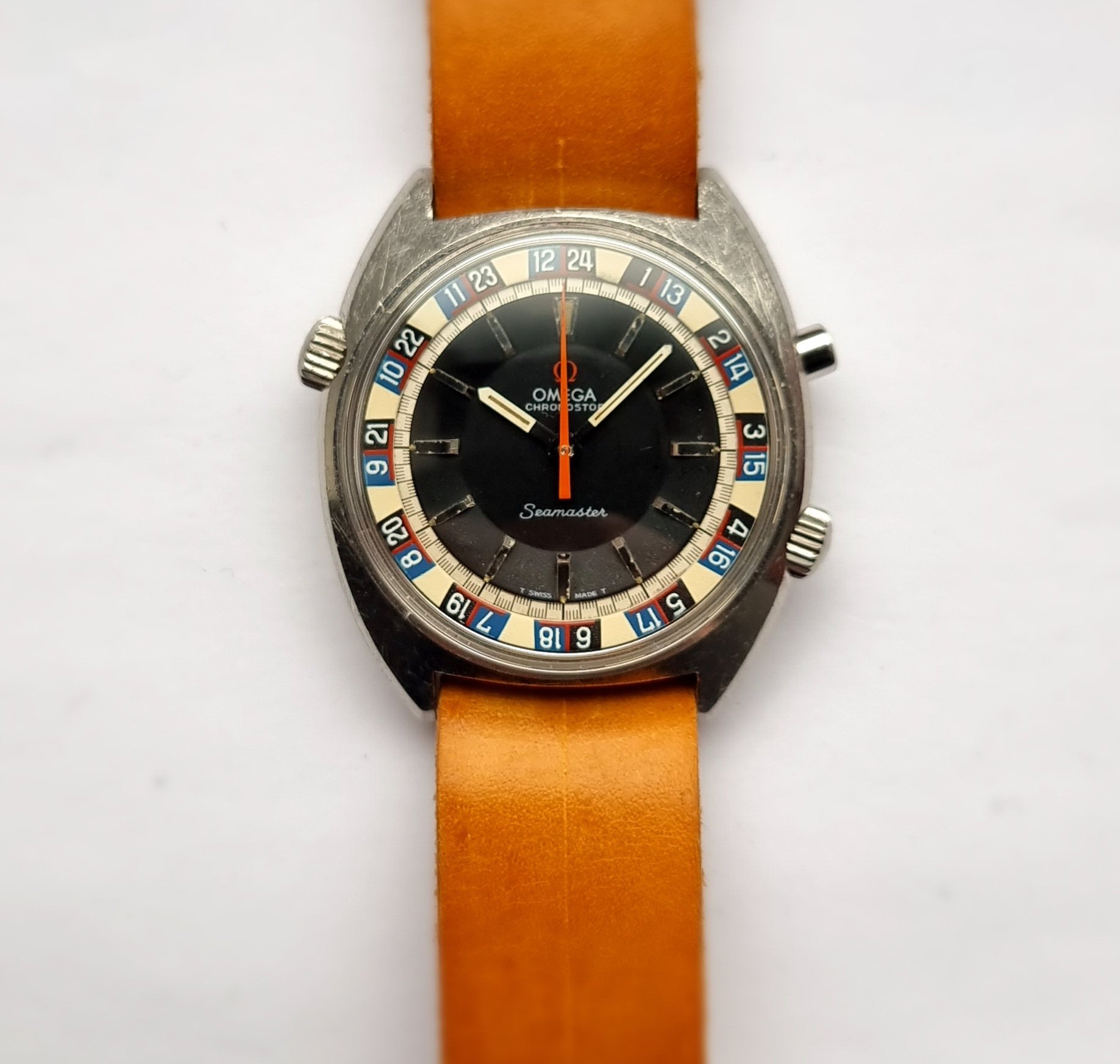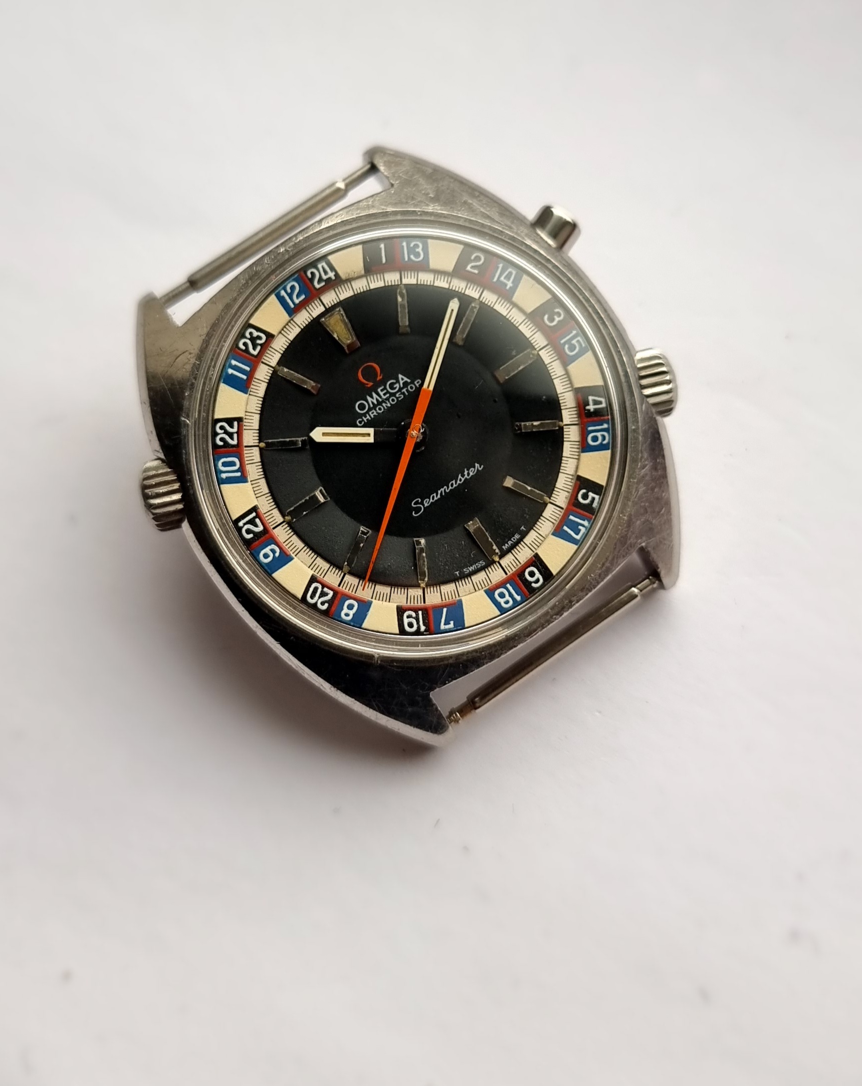 ·Omega Seamaster Chronostop 'Jumbo' 145.008 with rare Roulette Wheel internal bezel.