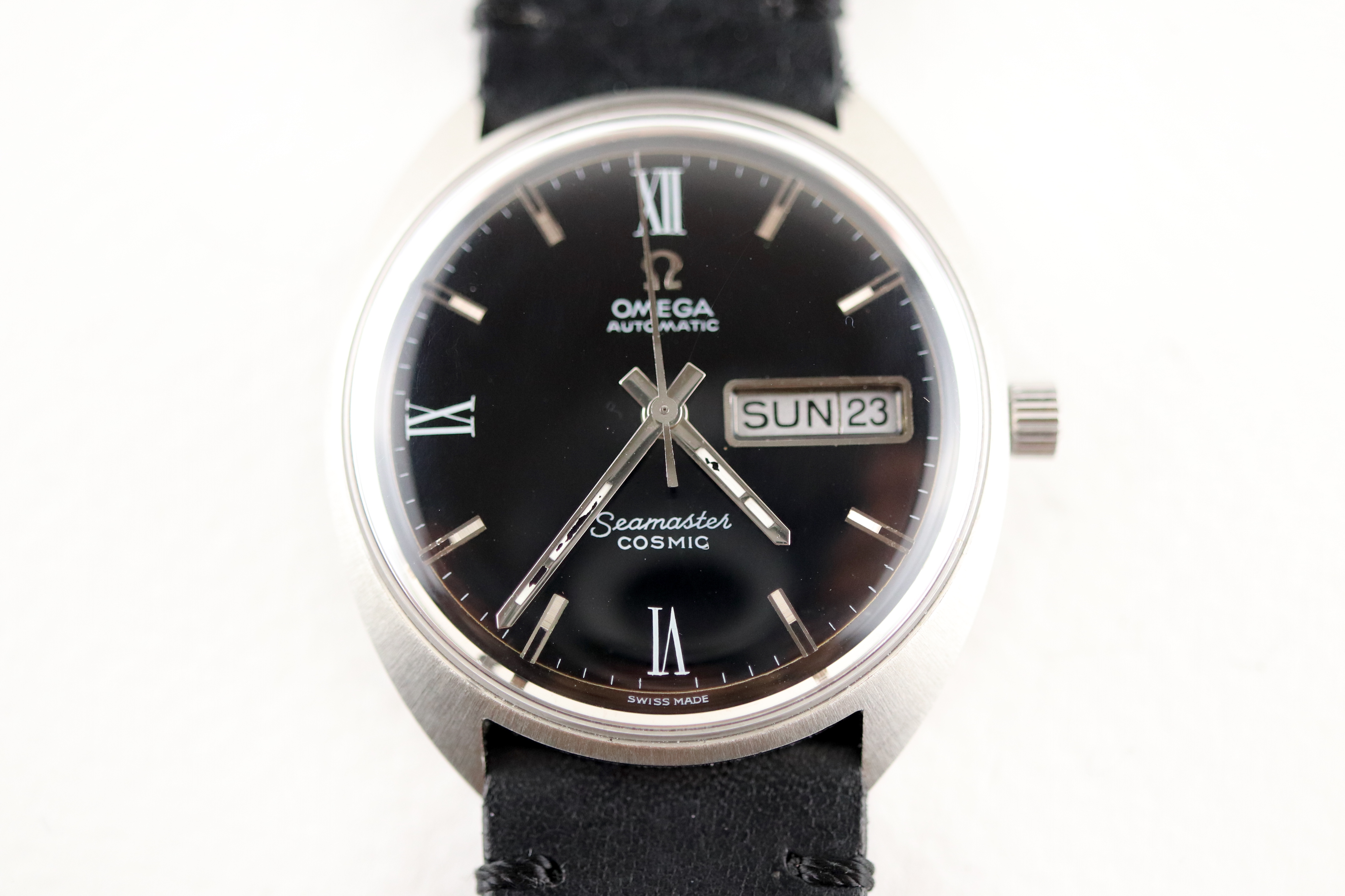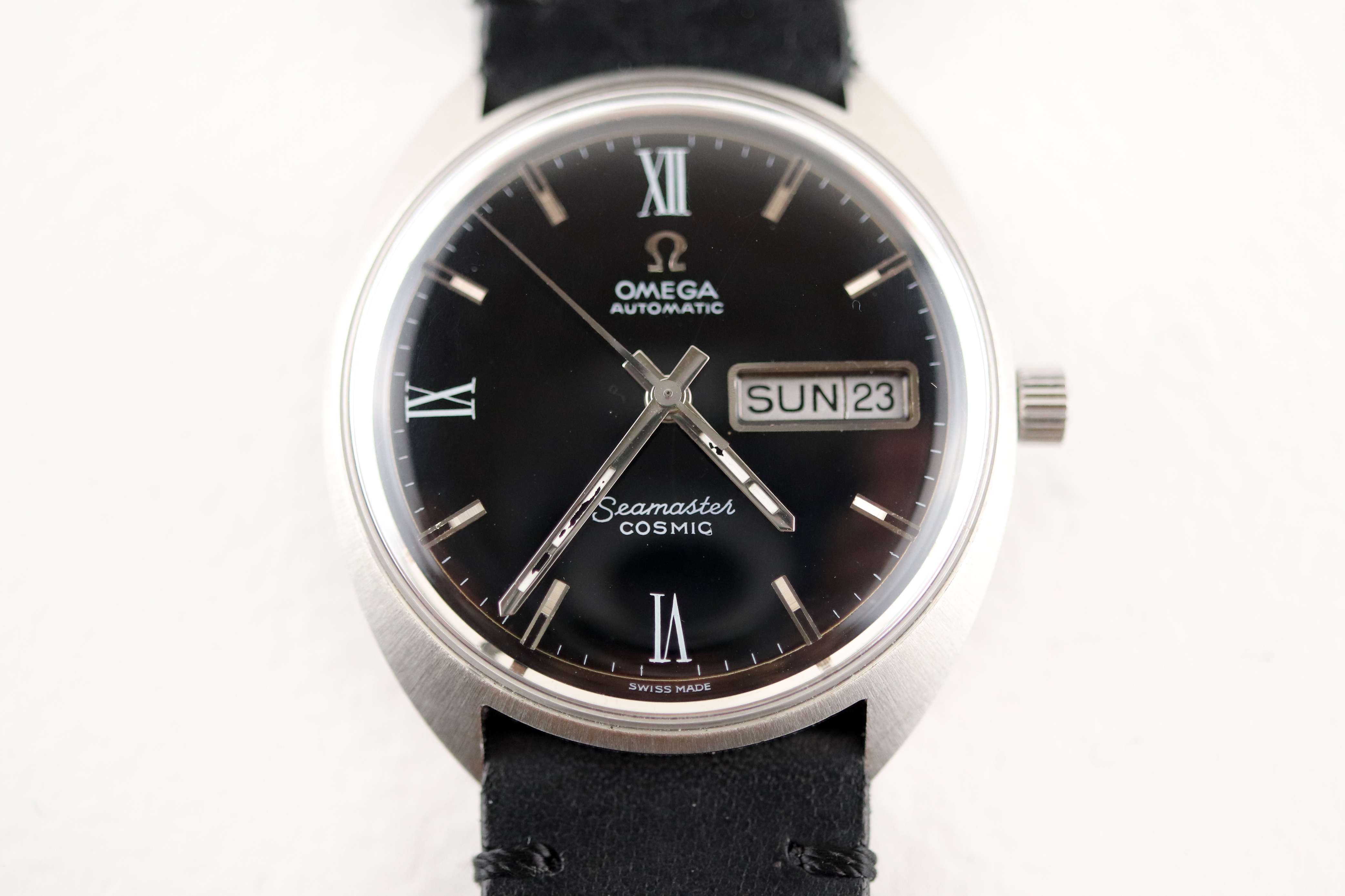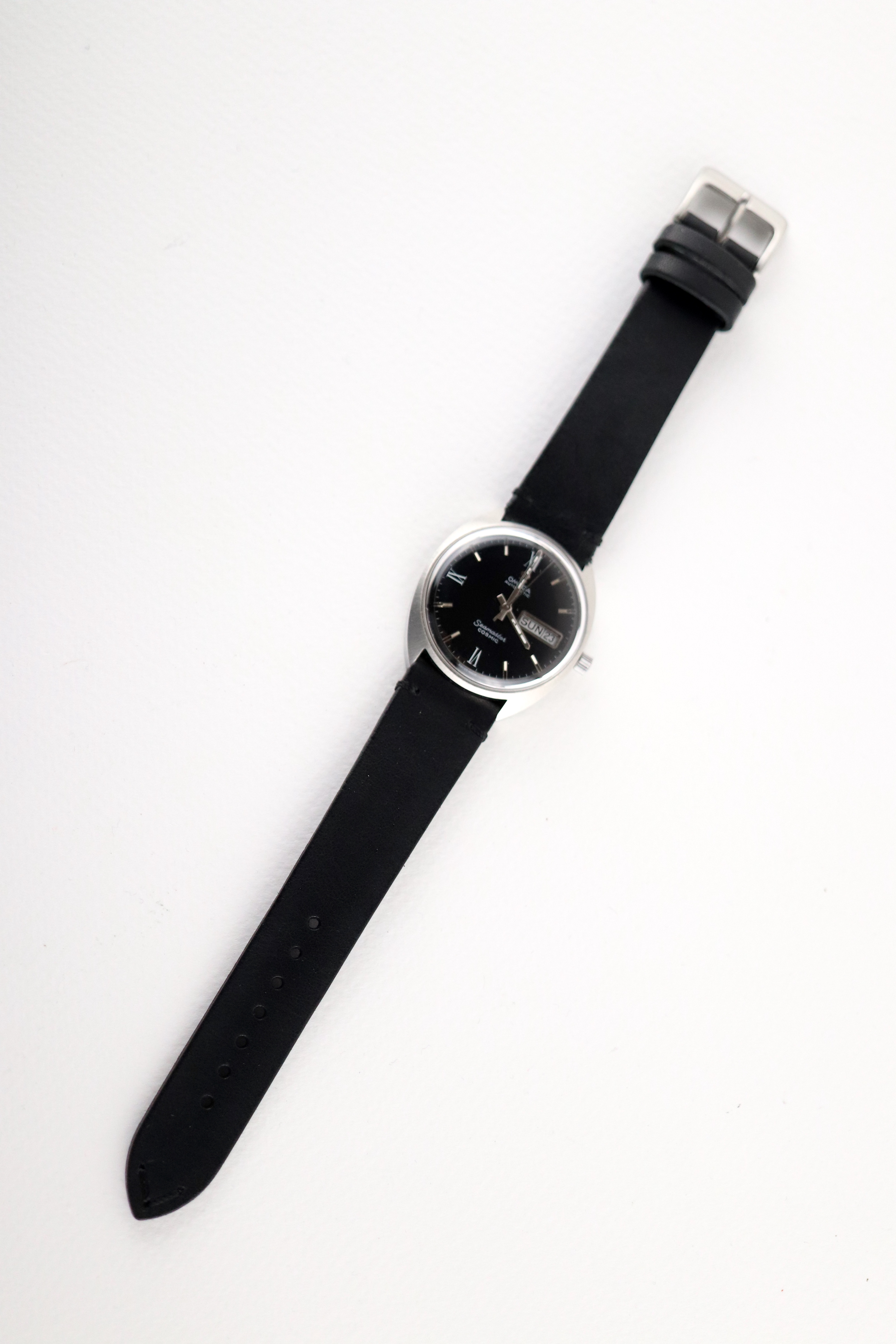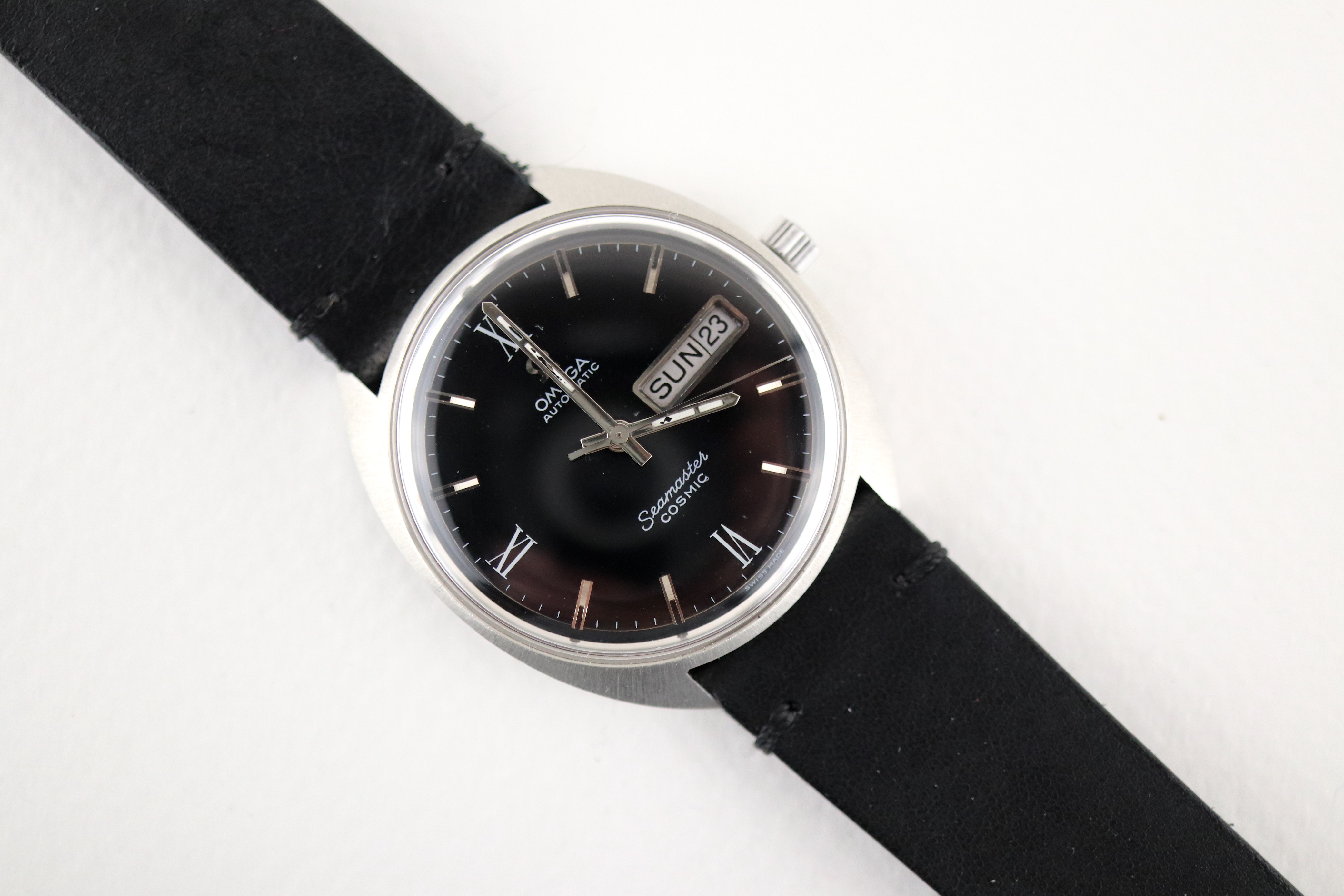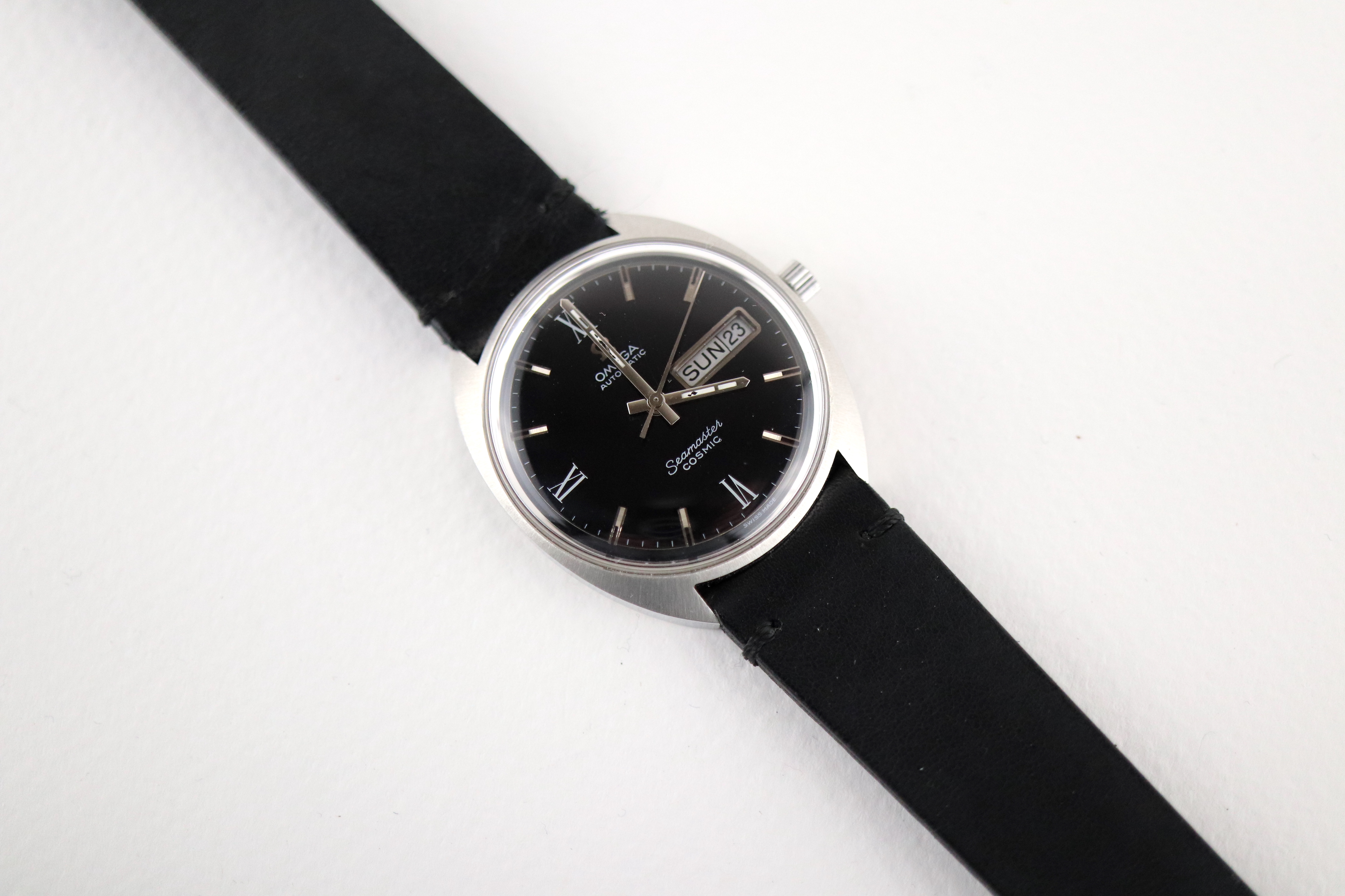 ·For sale, I have an Omega Seamaster Cosmic reference # 166.036. It has the Caliber 752 which is an automatic movement. The case looks very sharp and does not appear to have been polished in the past. There is some lume loss on the hands. Watch has just been serviced and comes with a 2-year warranty. The watch will come with your choice of either a new Brown or Black leather strap. You can also have a bracelet for an additional fee if you like. If you need more pictures let me know.