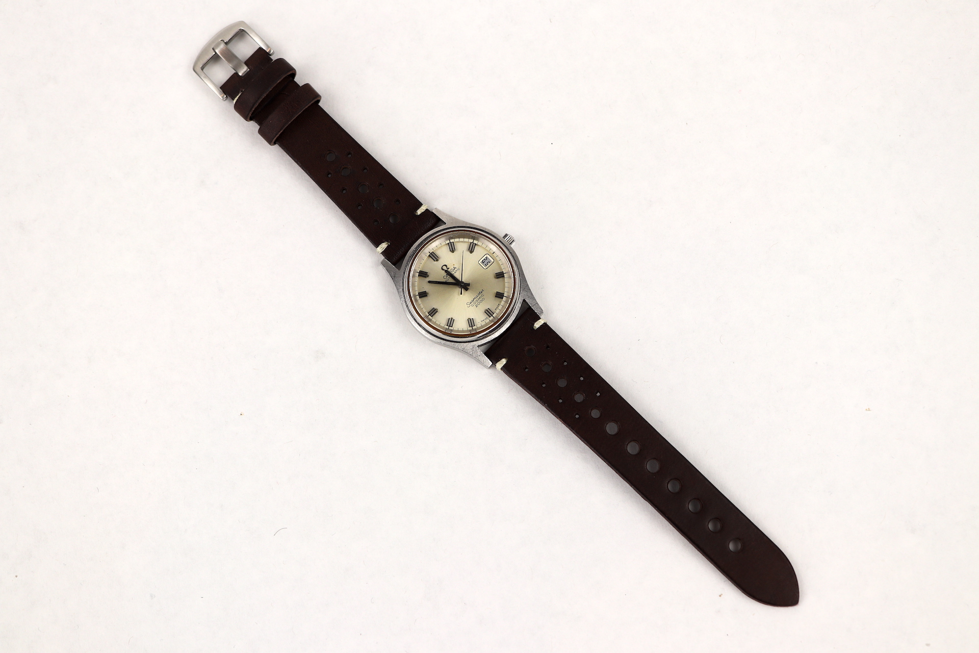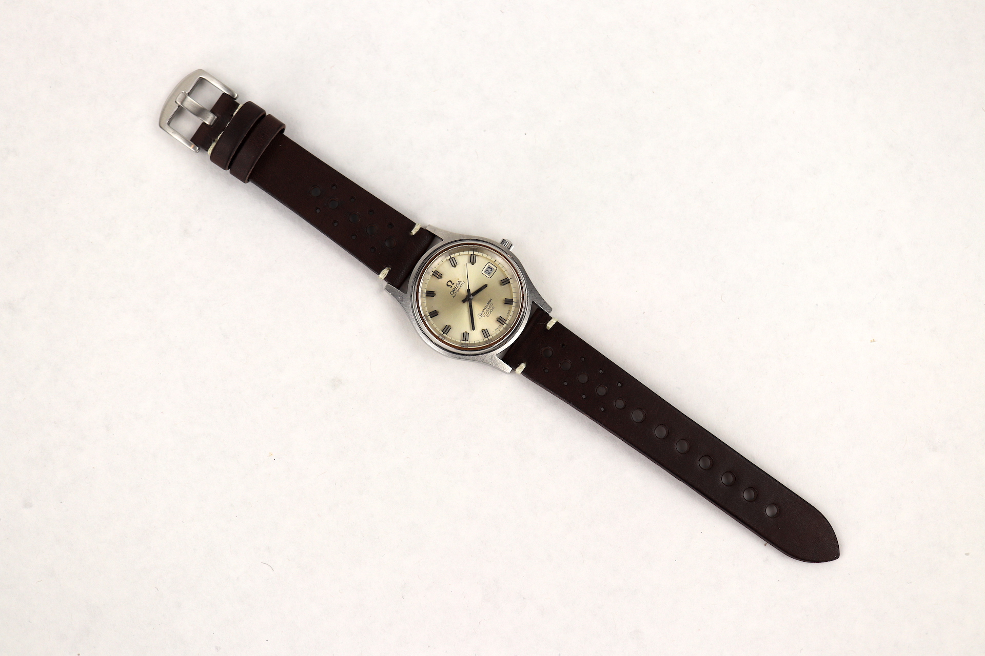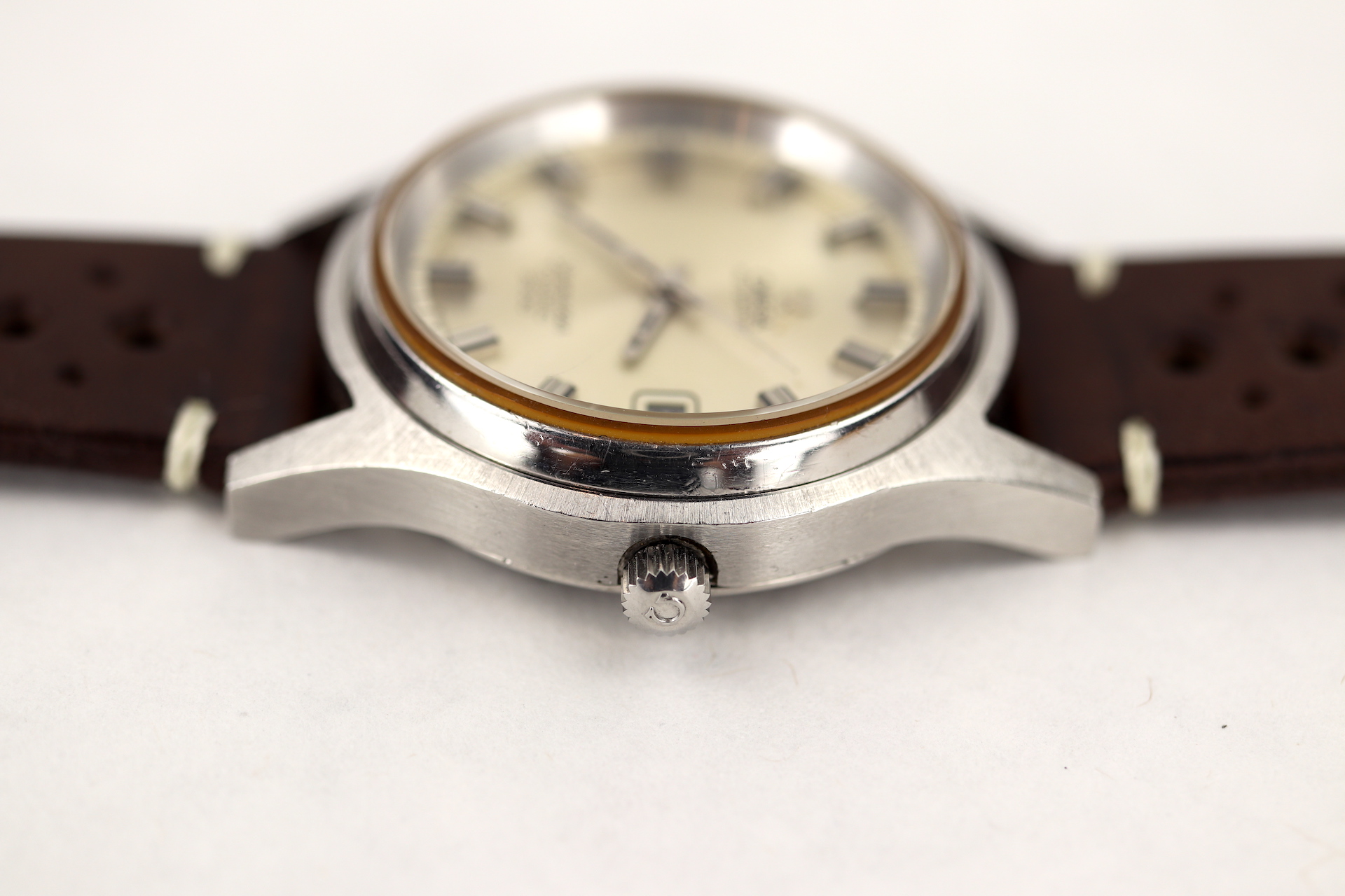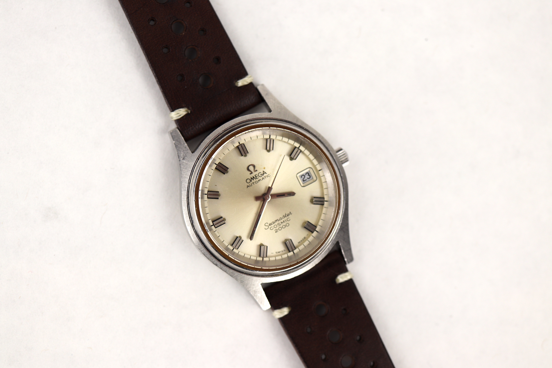 ·For sale, I have an Omega Seamaster Cosmic 2000 Ref: 166.0128 It has the Caliber 1012 which is an automatic movement. From the '70s, this is a very nice size watch for everyday wear. Case measure 38mm without the crown. Watch just came back from service. The Crown and Crystal were replaced. There are a couple of blemishes on the dial close to the applied logo. I can't open this type of case so unfortunately, I can not provide any movement pictures. The watch will come with a new leather strap.