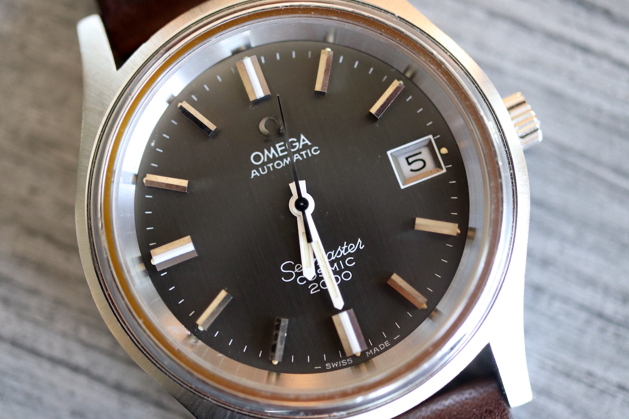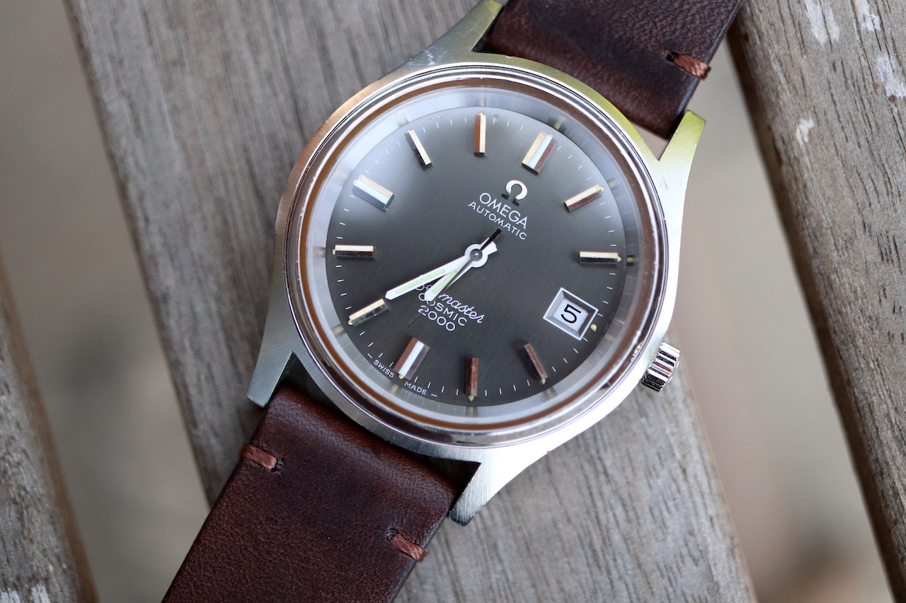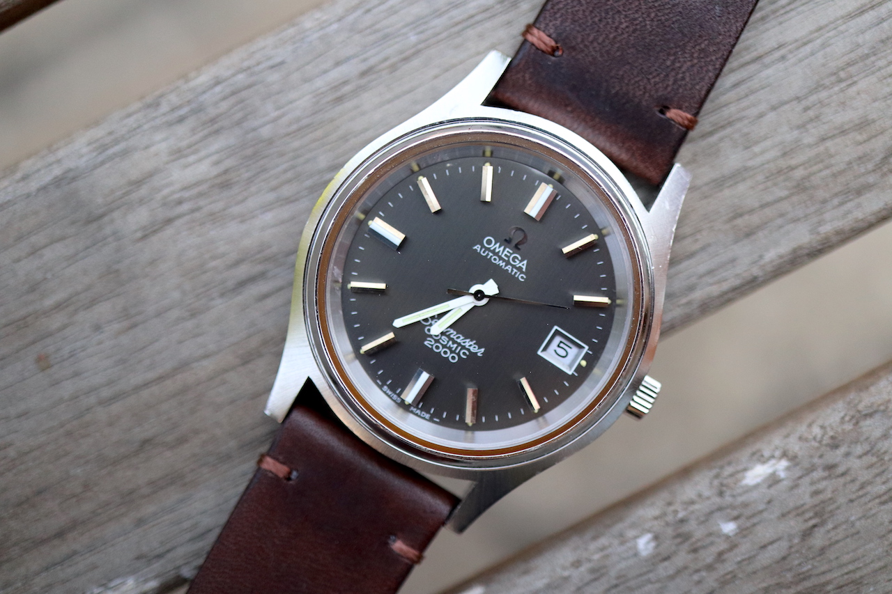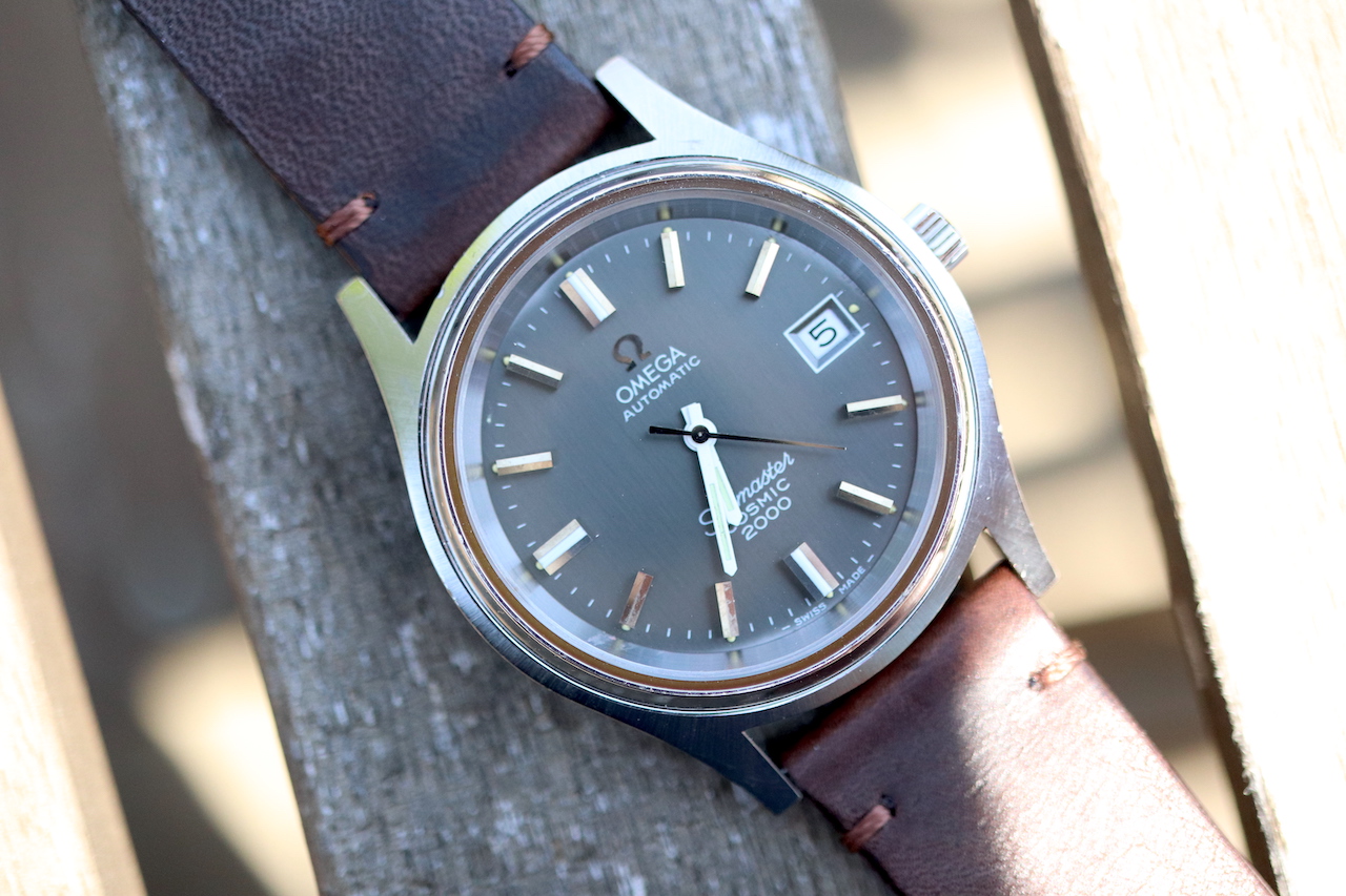 ·For sale, I have an Omega Seamaster Cosmic 2000 Ref: 166.0128 It has the Caliber 1012 which is an automatic movement. From the '70s, this is a very nice size watch for everyday wear. Case measure 38mm without the crown. It has a nice grey dial and the case looks sharp. Watch just came back from service. Crown and Crystal have been replaced. I can't open this type of case so unfortunately, I can not provide any movement pictures. The watch will come with your choice of either a new brown or black leather strap. Bracelet is also available for an additional cost.