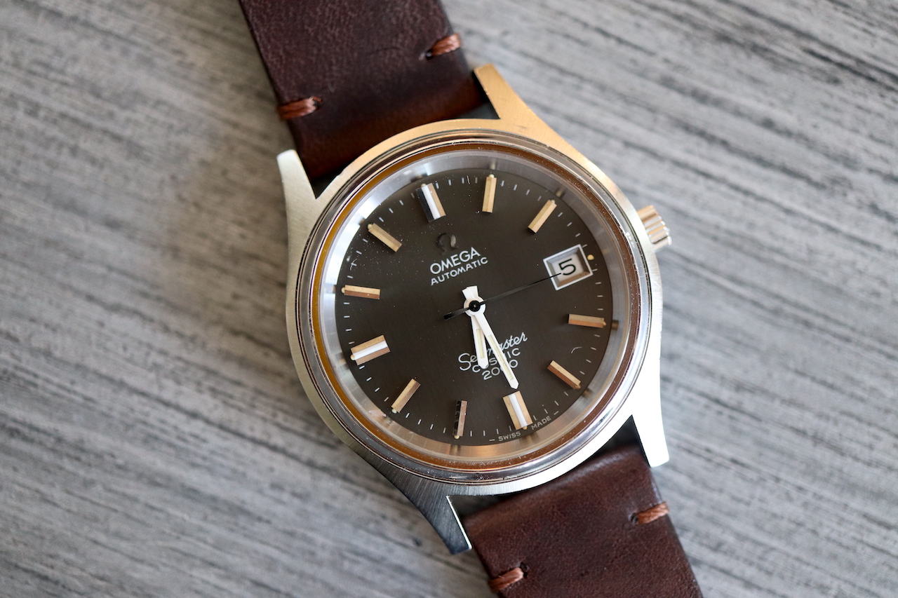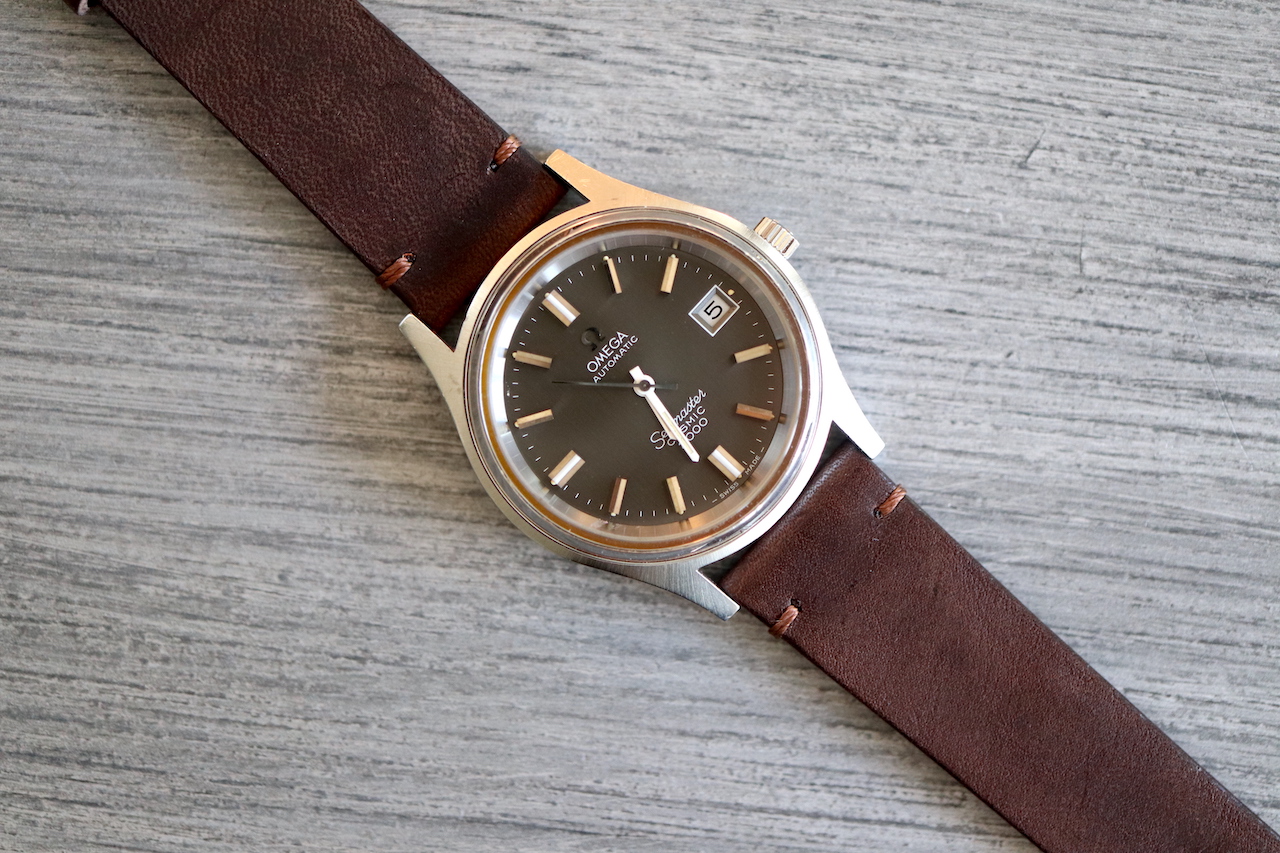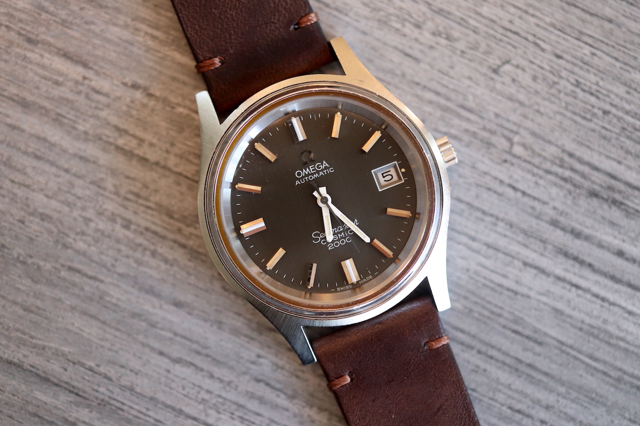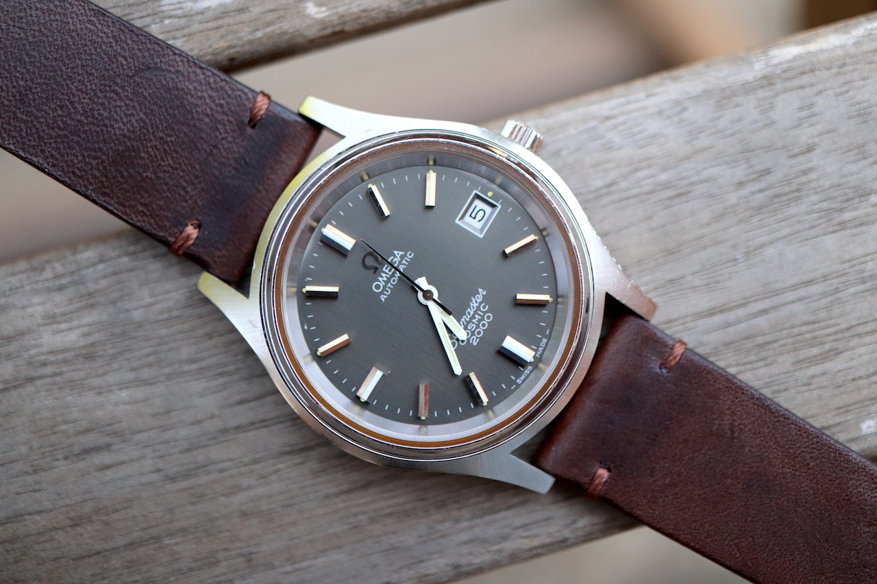 ·For sale, I have an Omega Seamaster Cosmic 2000 Ref: 166.0128 It has the Caliber 1012 which is an automatic movement. From the '70s, this is a very nice size watch for everyday wear. Case measure 38mm without the crown. It has a nice grey dial and the case looks sharp. Watch just came back from service. Crown and Crystal have been replaced. I can't open this type of case so unfortunately, I can not provide any movement pictures. The watch will come with your choice of either a new brown or black leather strap. Bracelet is also available for an additional cost.