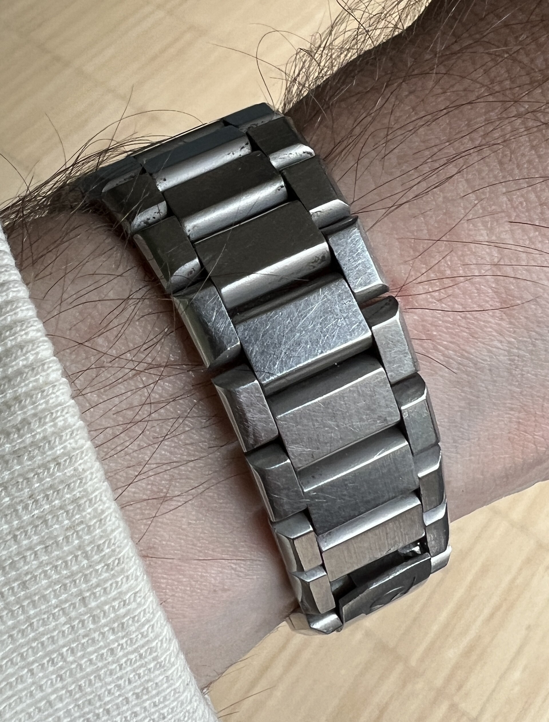 There is a possibility that I will still replace the glass and the brown bezel, so that it will be completely clean again. And i still need to clean the band more thoroughly, because there is still black dirt on it. Only thing else needed is 1 link for the 1257/220 strap, so I can wear it a little bit better.