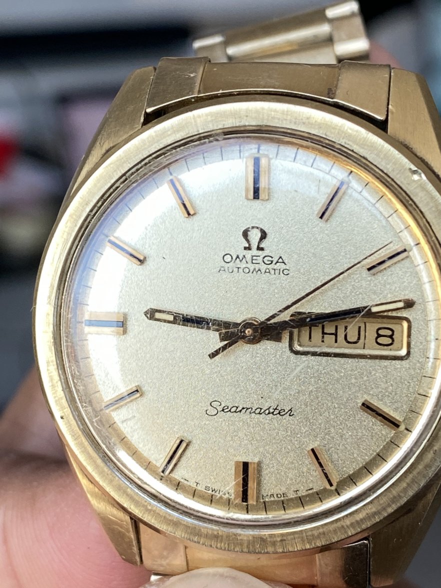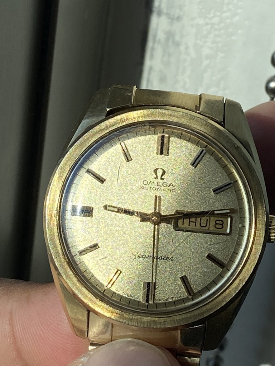 See there are some marks, scratches, and crystal scratches to polywatch & fair condition ... NO unsightly dings (other than what you see between 1 and 2 o’clock on the bezel). Day and date change over works good and the photos help to show this.