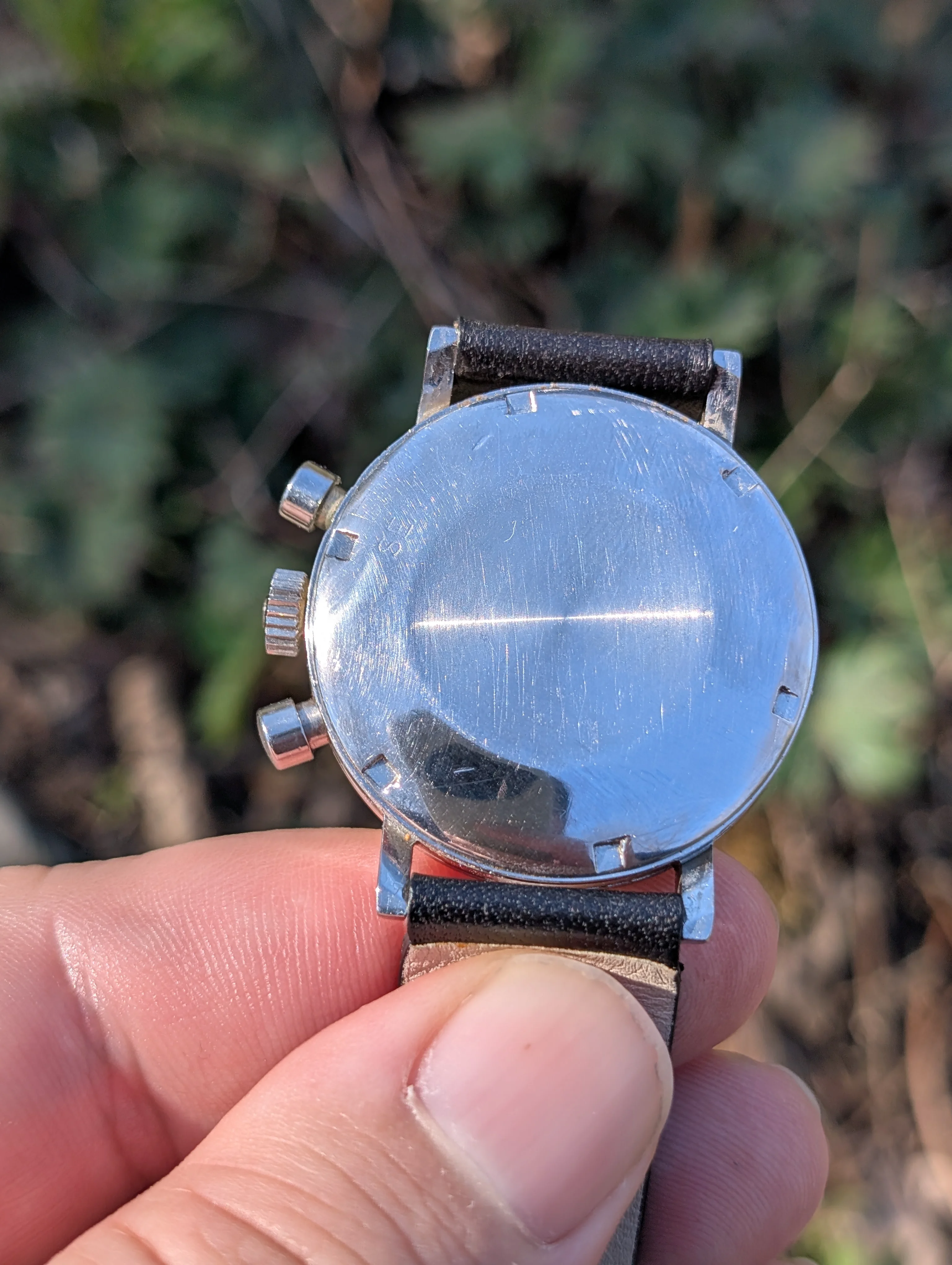 Case: Stainless steel. Heavily polished in the past. The lugs are soft.