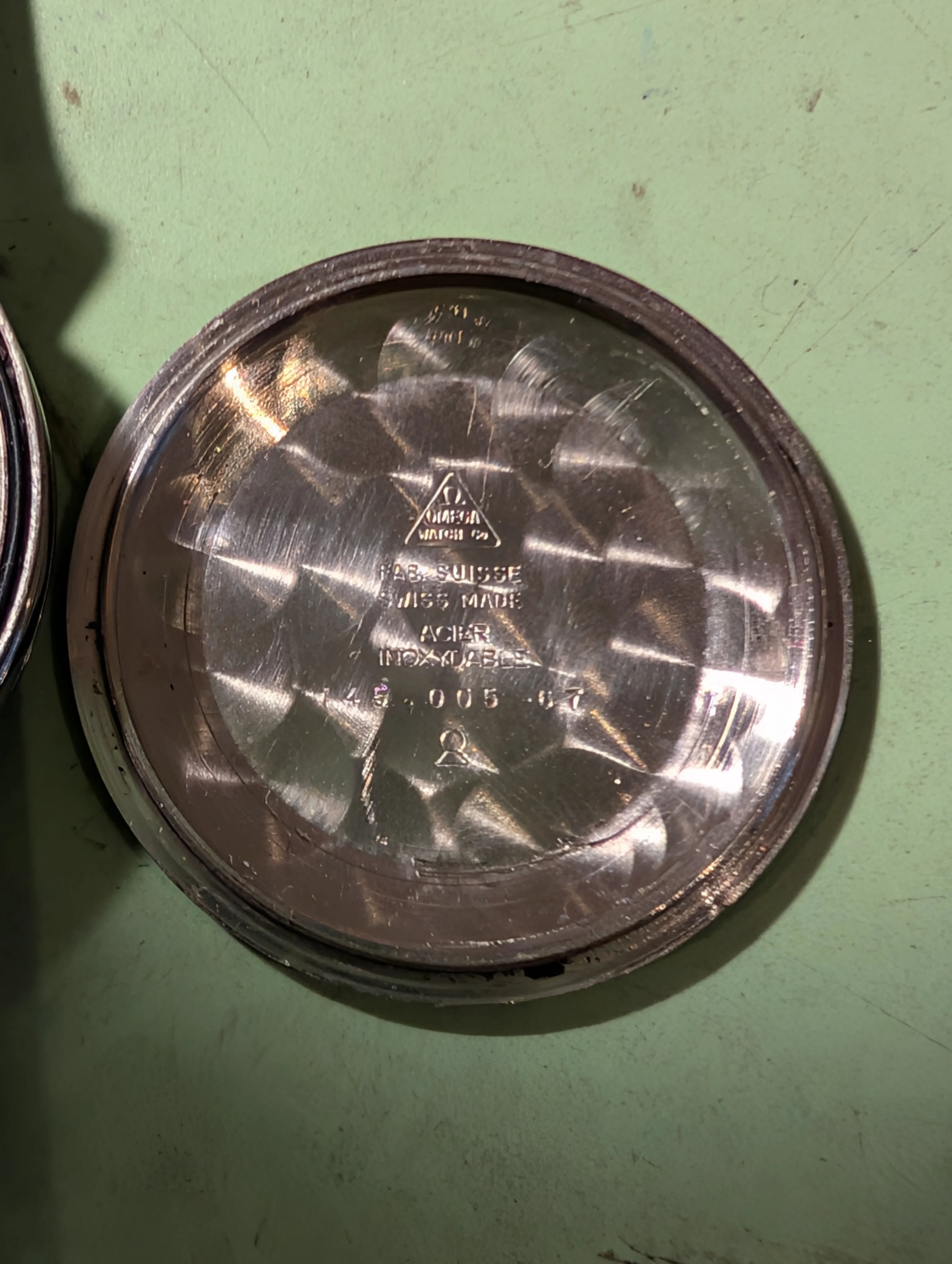 Caseback: Plain screw-back. Due to the polish, the Seamaster lettering is faint.