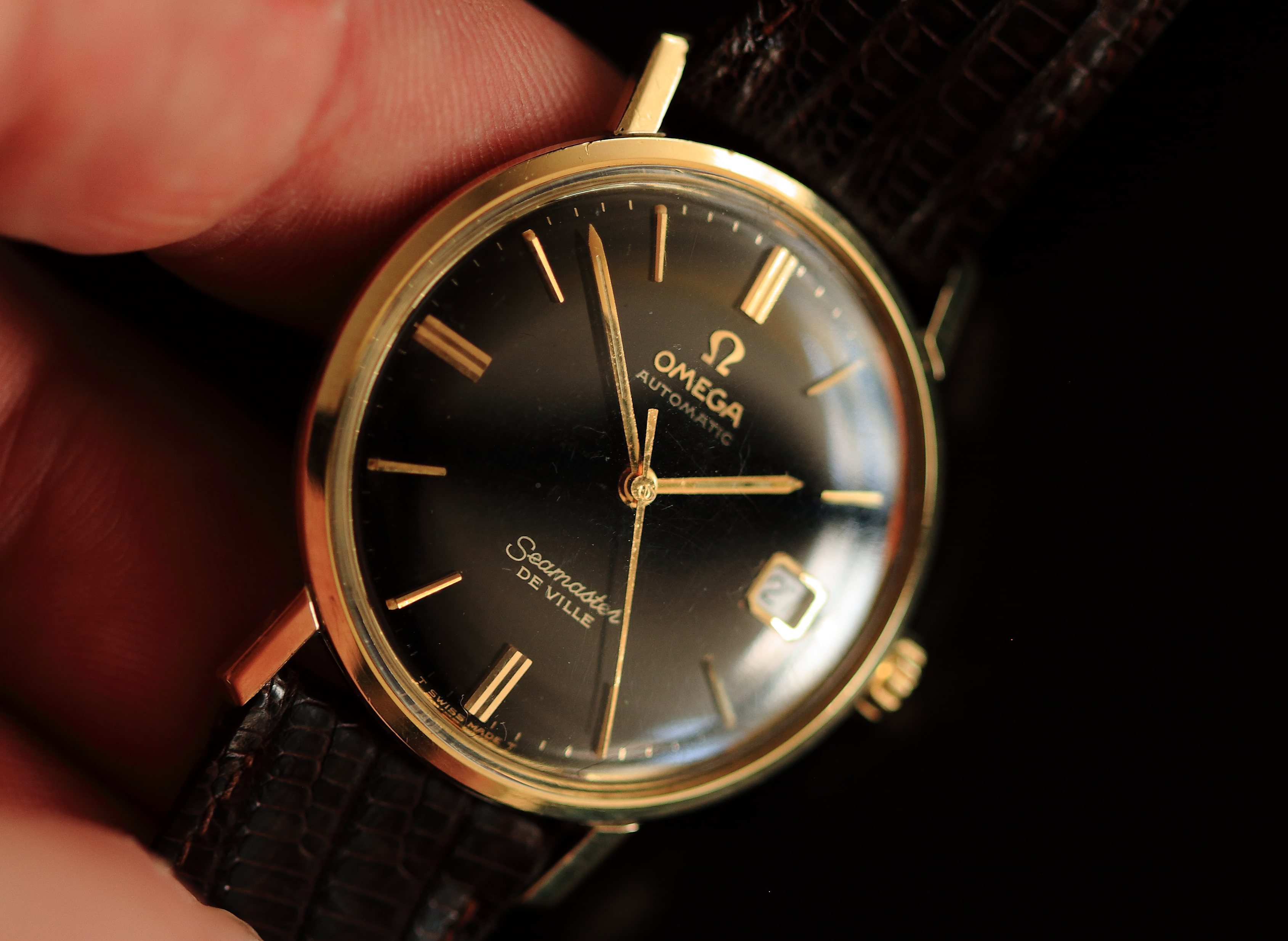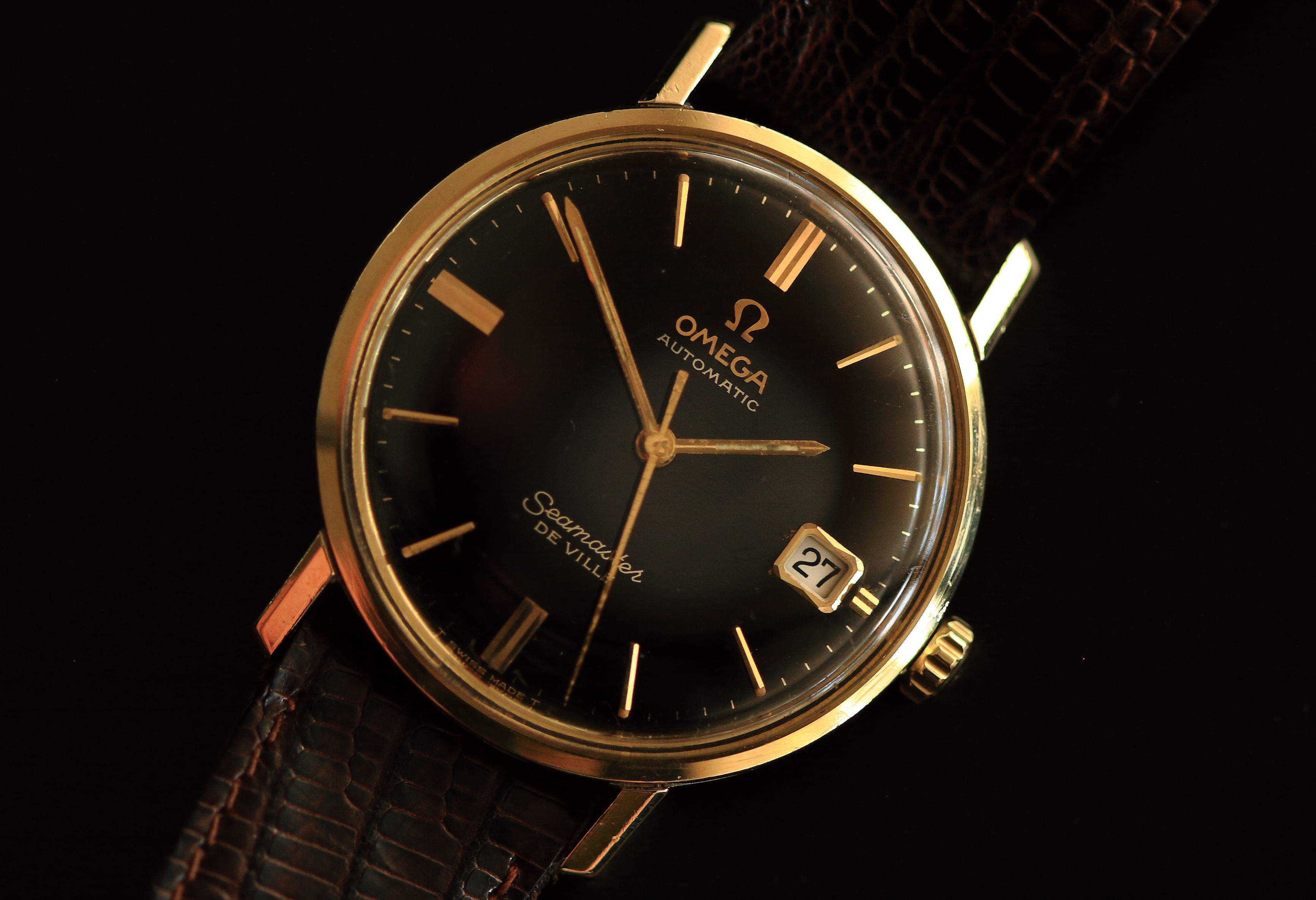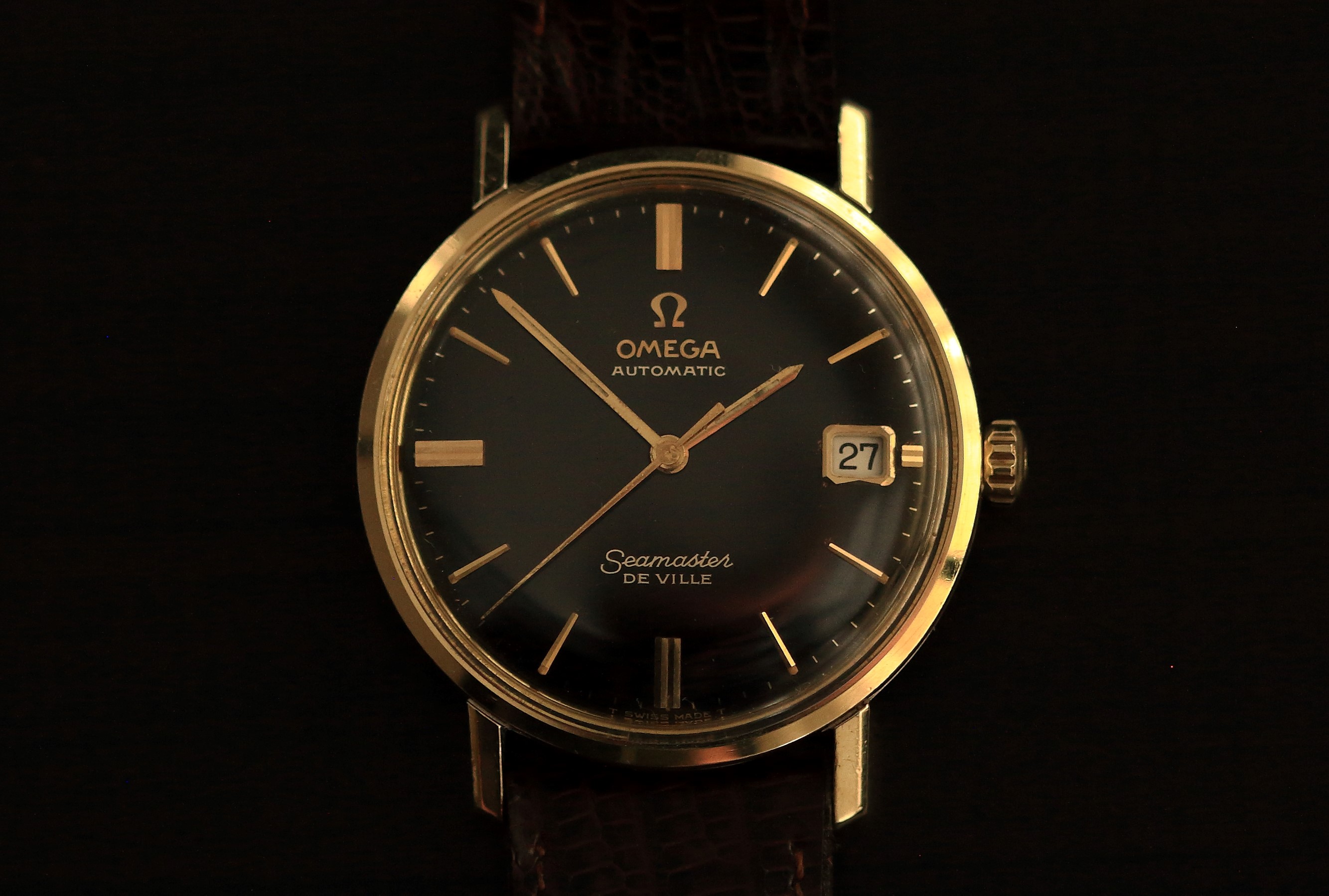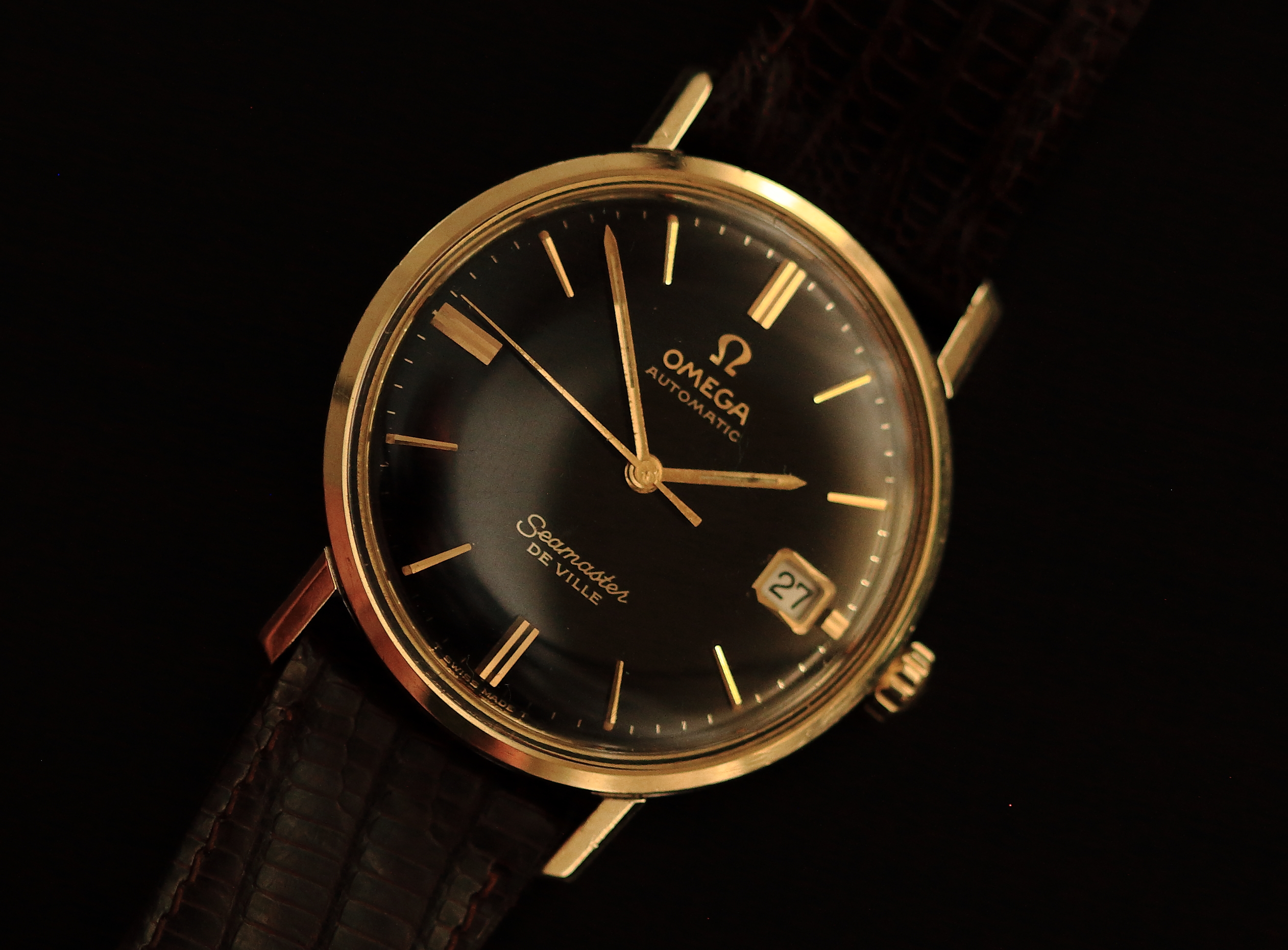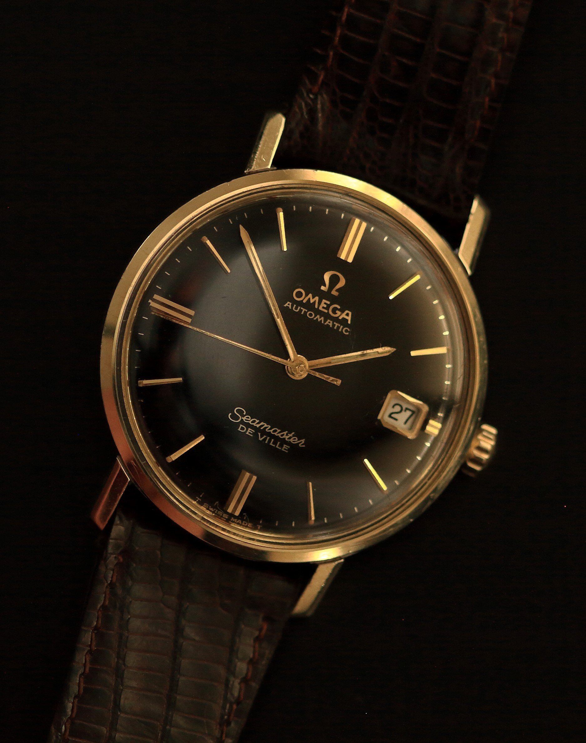 The Seamaster is a ref 166.020 with a calibre 565 and has a fantastic gloss black and gilt dial and dates from the late 1960's