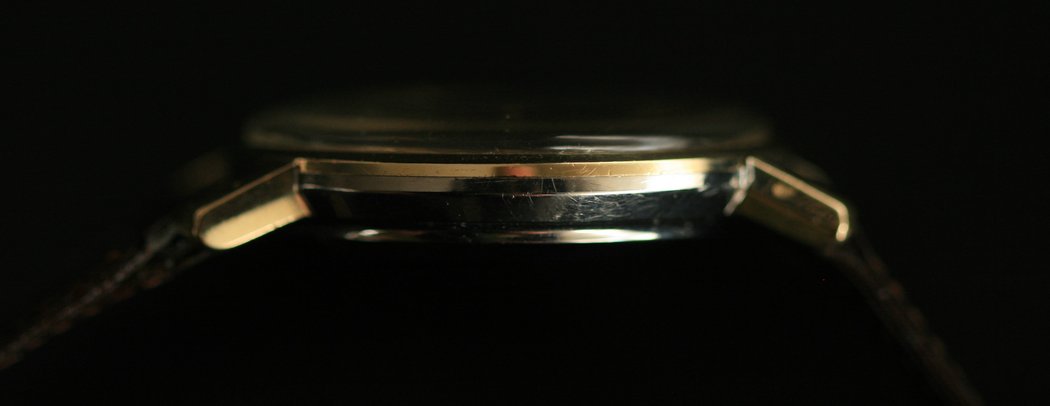 The beautiful black glossy dial is just about perfect and with the metallic sheen of the gilt text is really stunning on the wrist. Golden hands, indices and applied logo finish the look. All the tritium lume is still present.