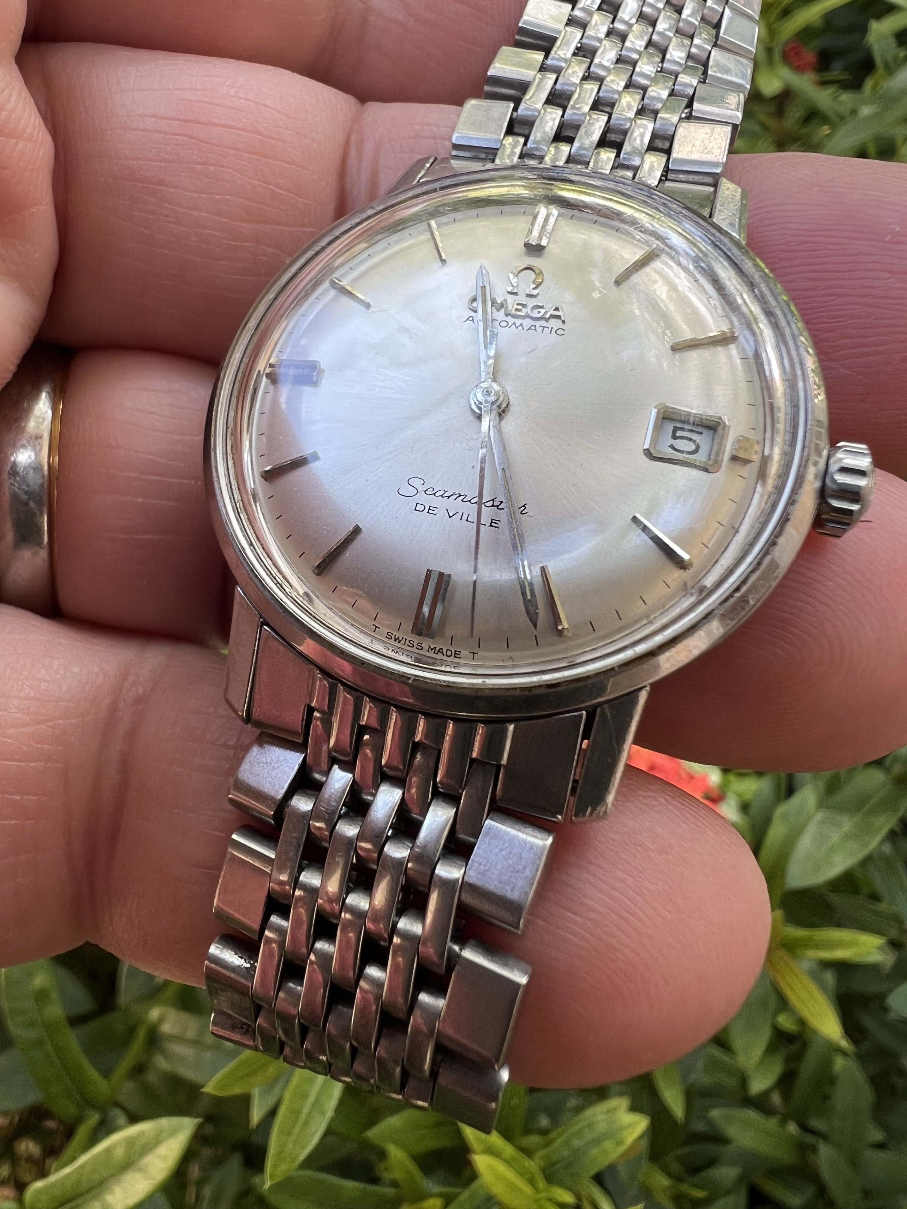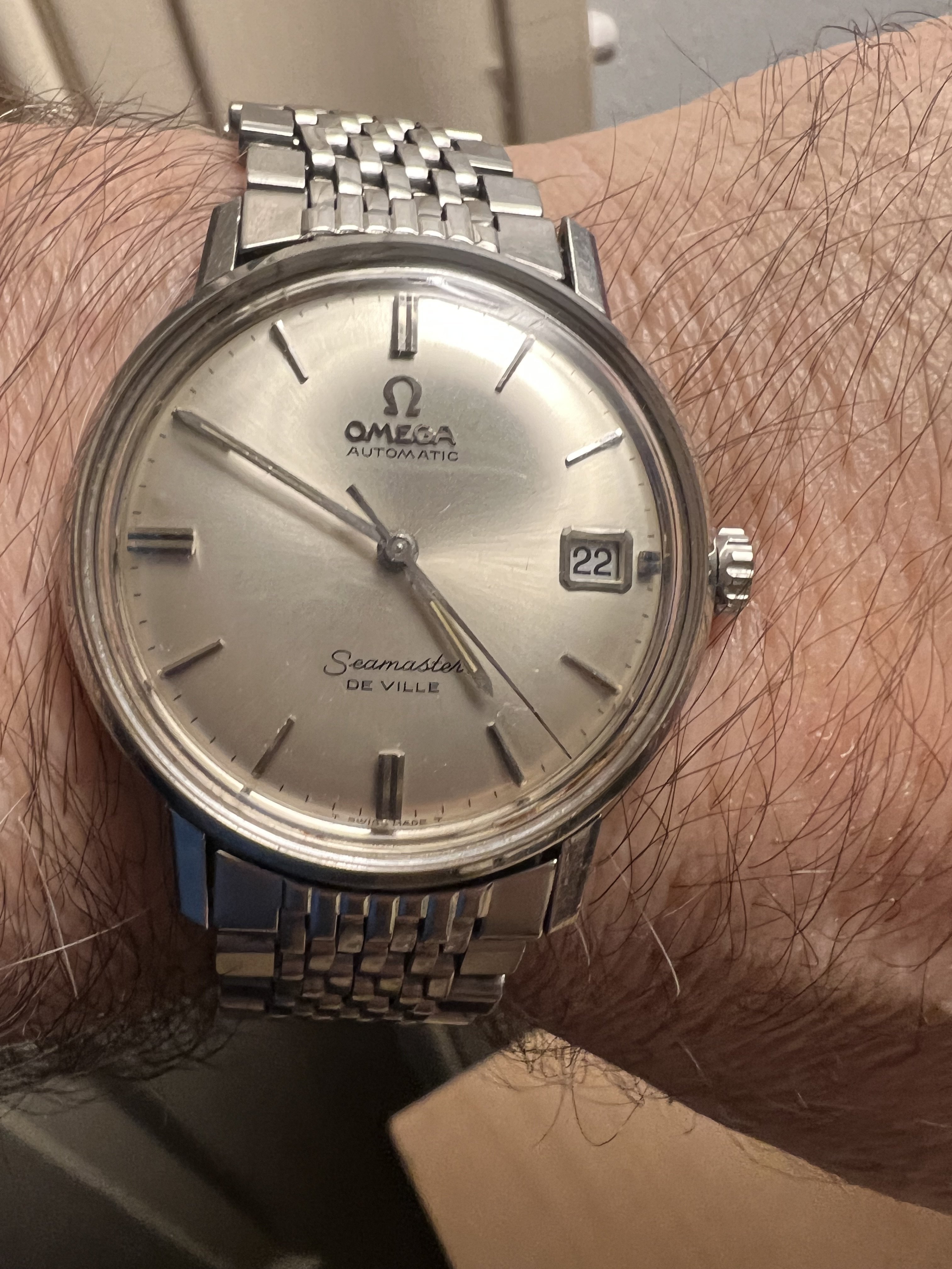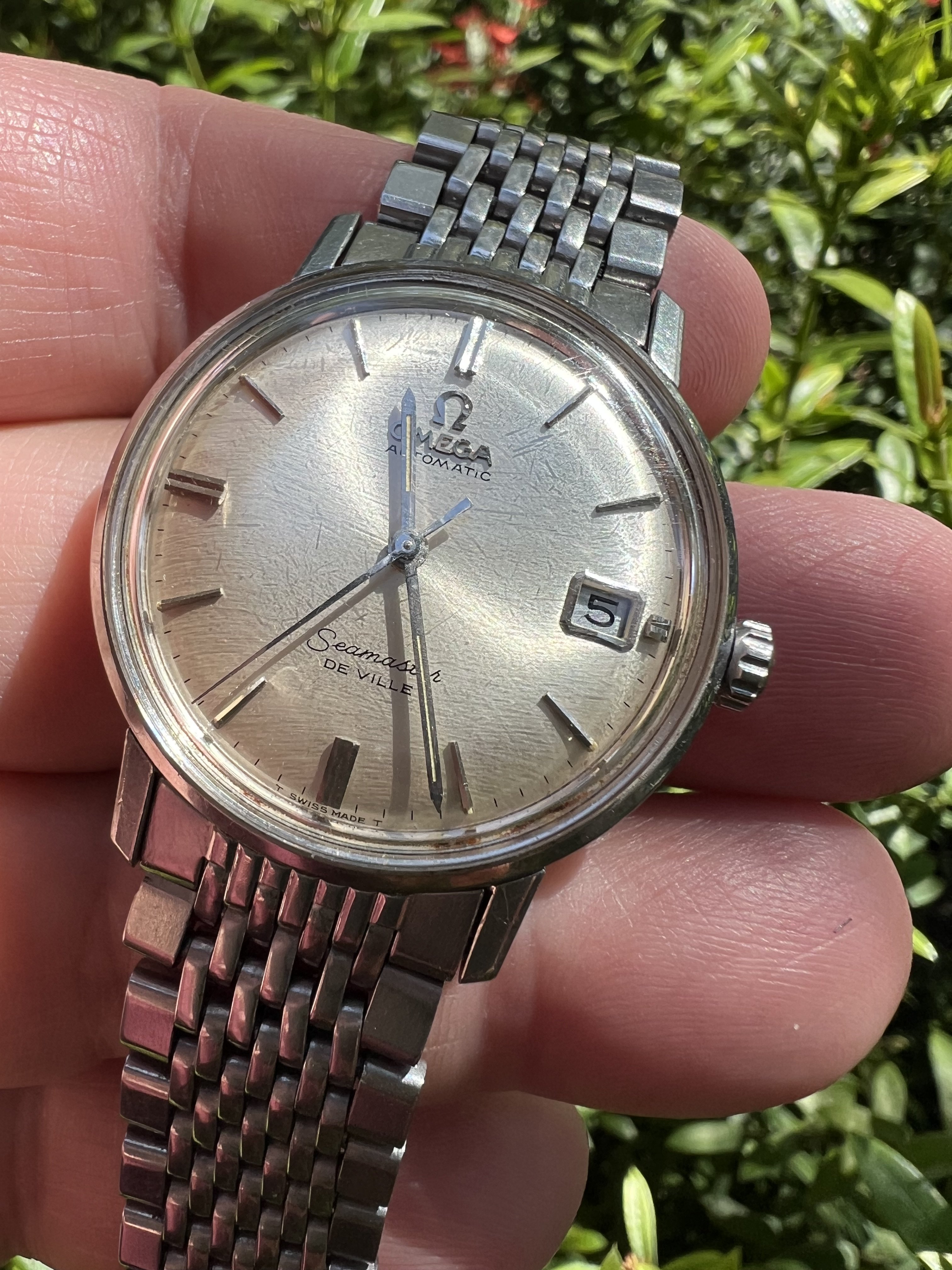 The watch: I am offering a 1968 automatic Stainless Steel Omega Seamaster Deville, in very good vintage condition. Reference 166.020, with movement cal 563. I have owned the watch for nearly 2 years and not worn it other than to photograph it. Making room for new incoming. Many photos in different light conditions including indirect and direct sunlight. Movement photos from prior seller at time of service.