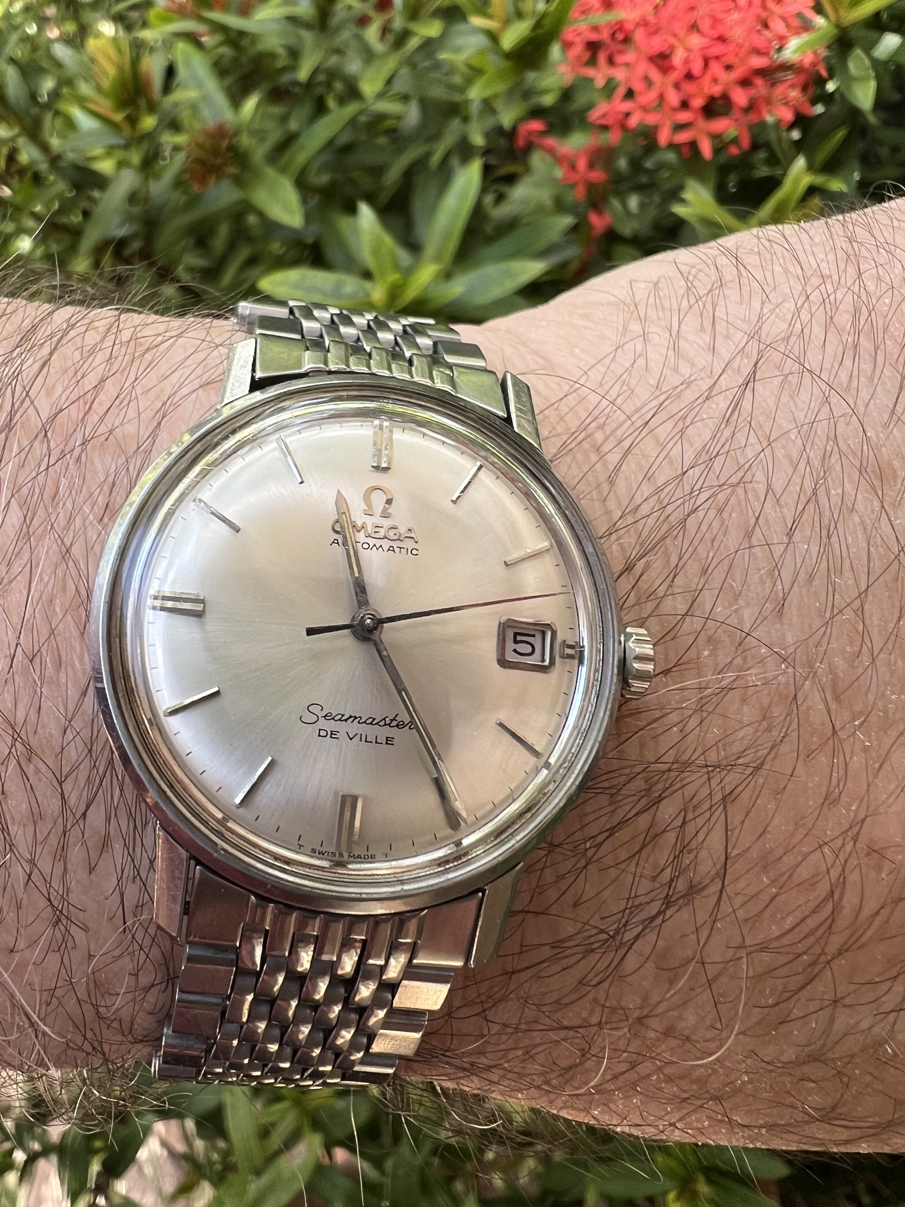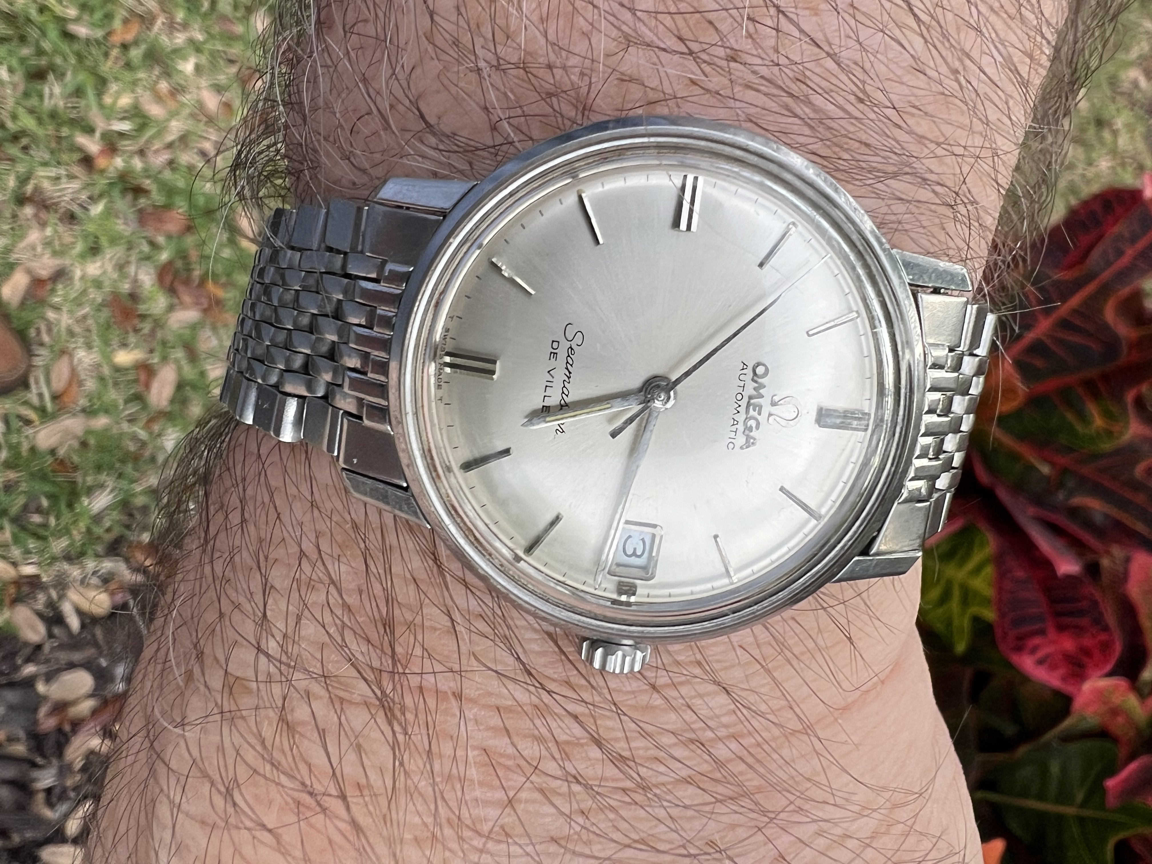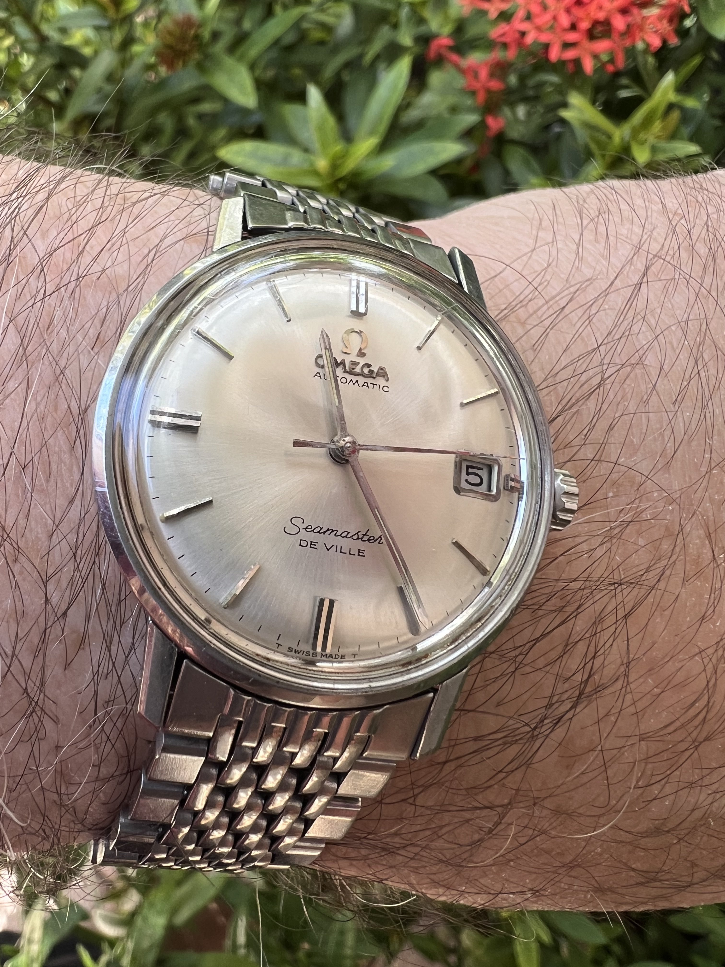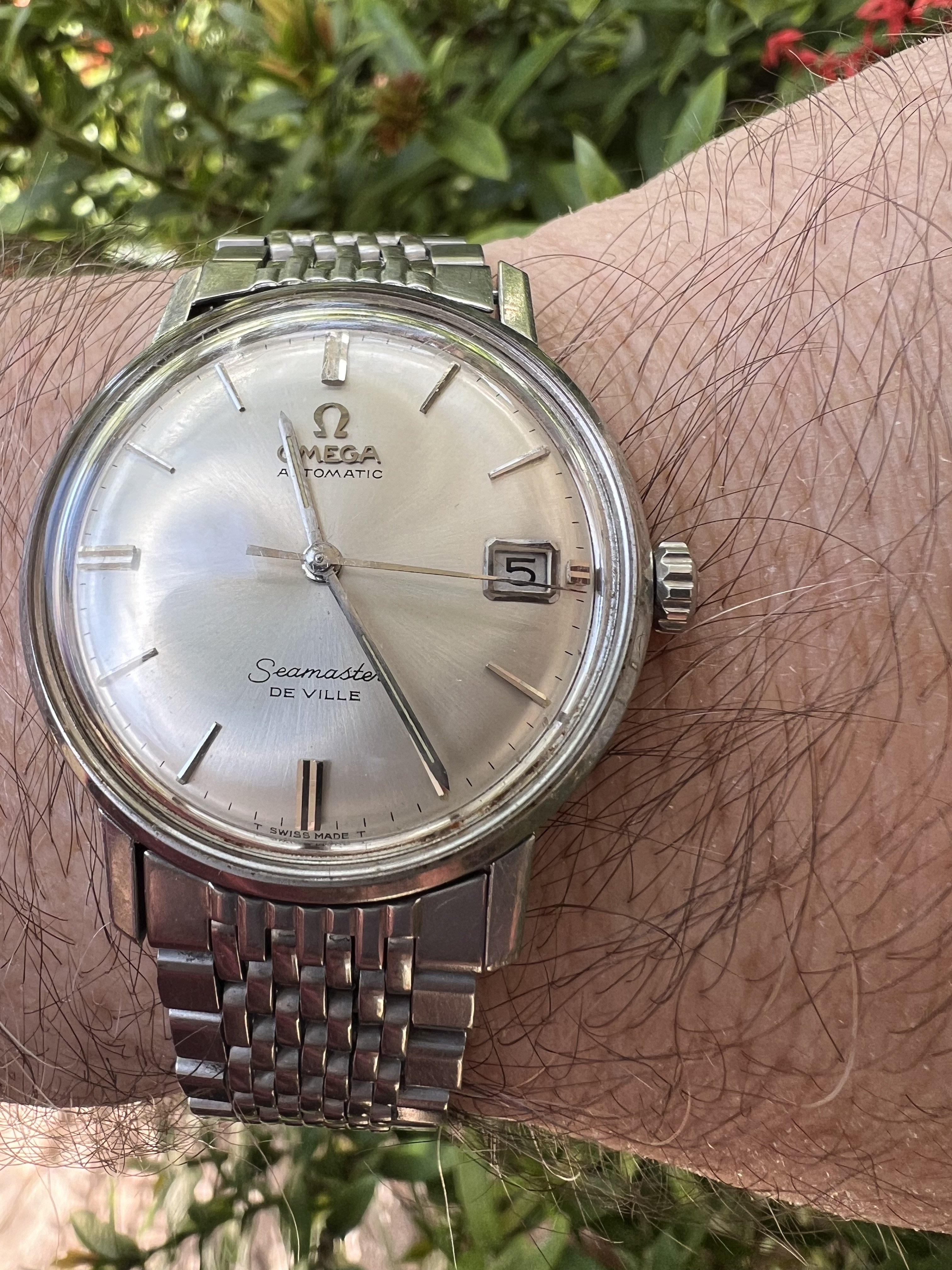 The watch: I am offering a 1968 automatic Stainless Steel Omega Seamaster Deville, in very good vintage condition. Reference 166.020, with movement cal 563. I have owned the watch for nearly 2 years and not worn it other than to photograph it. Making room for new incoming. Many photos in different light conditions including indirect and direct sunlight. Movement photos from prior seller at time of service.