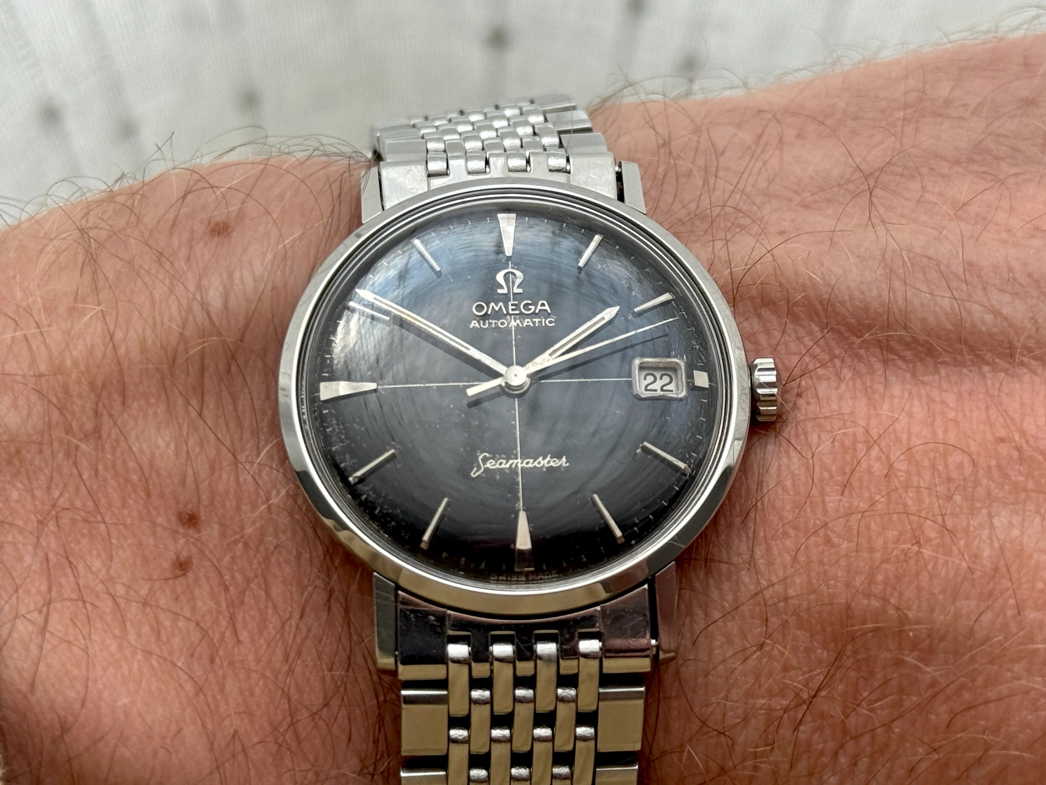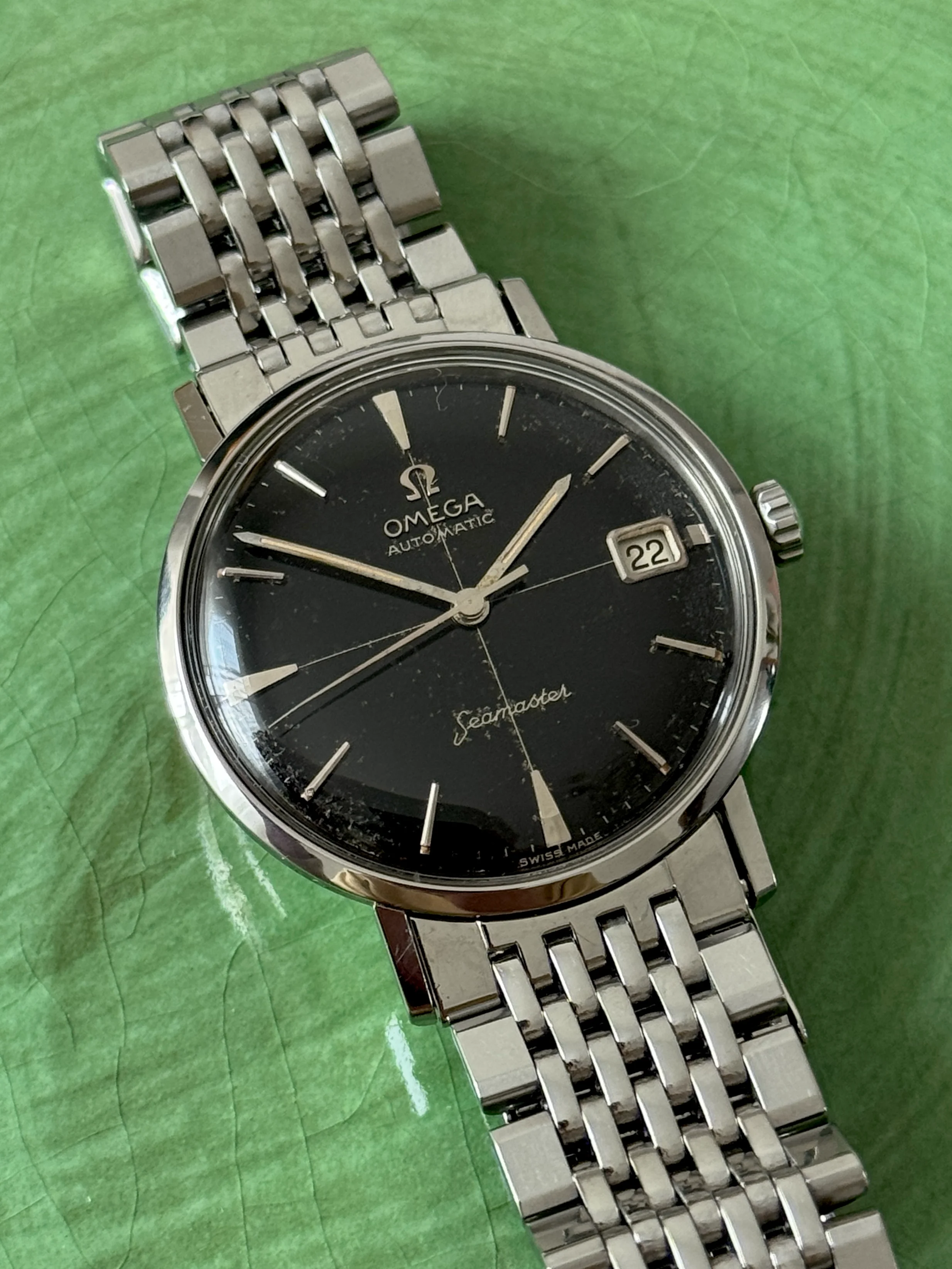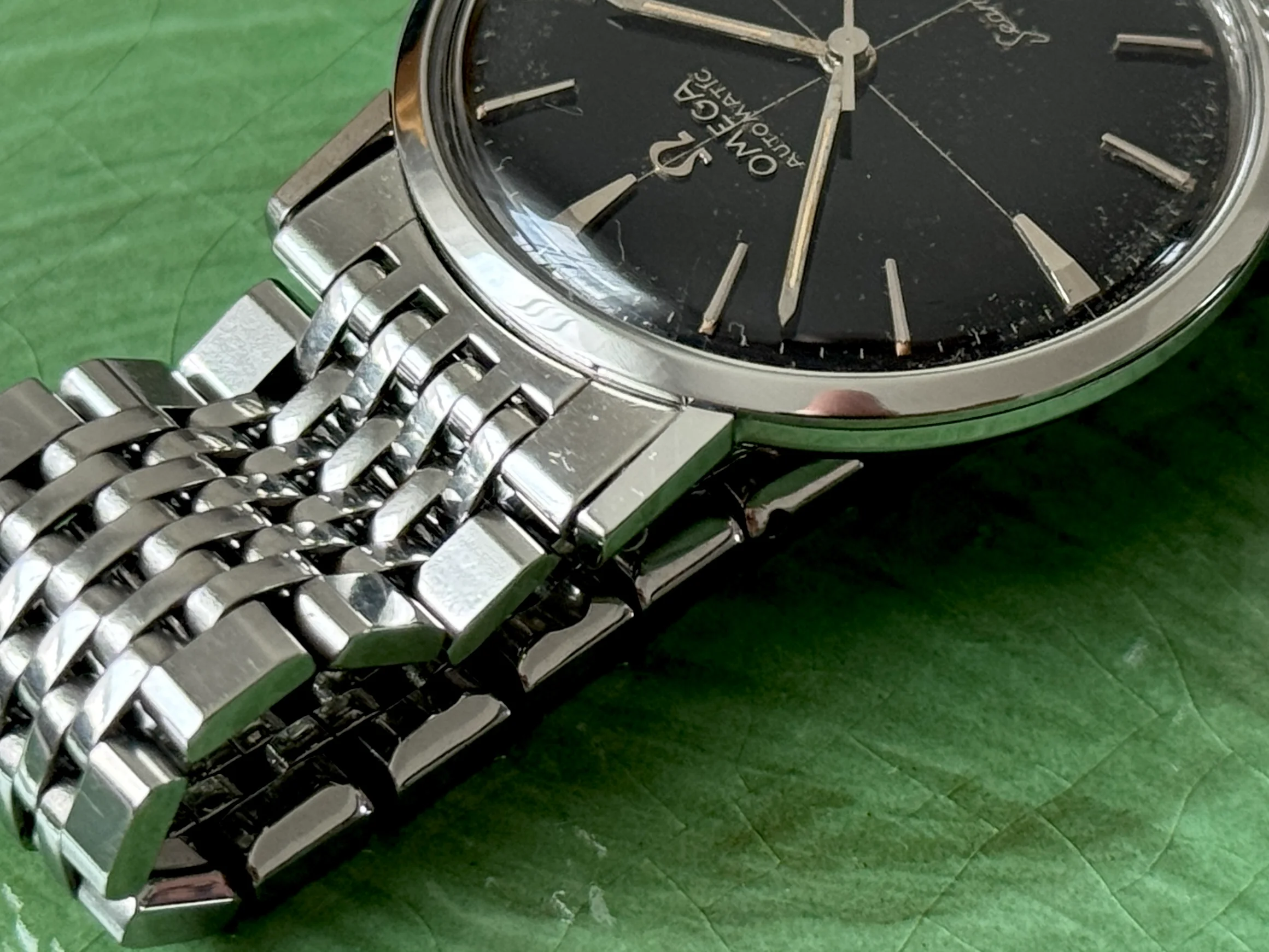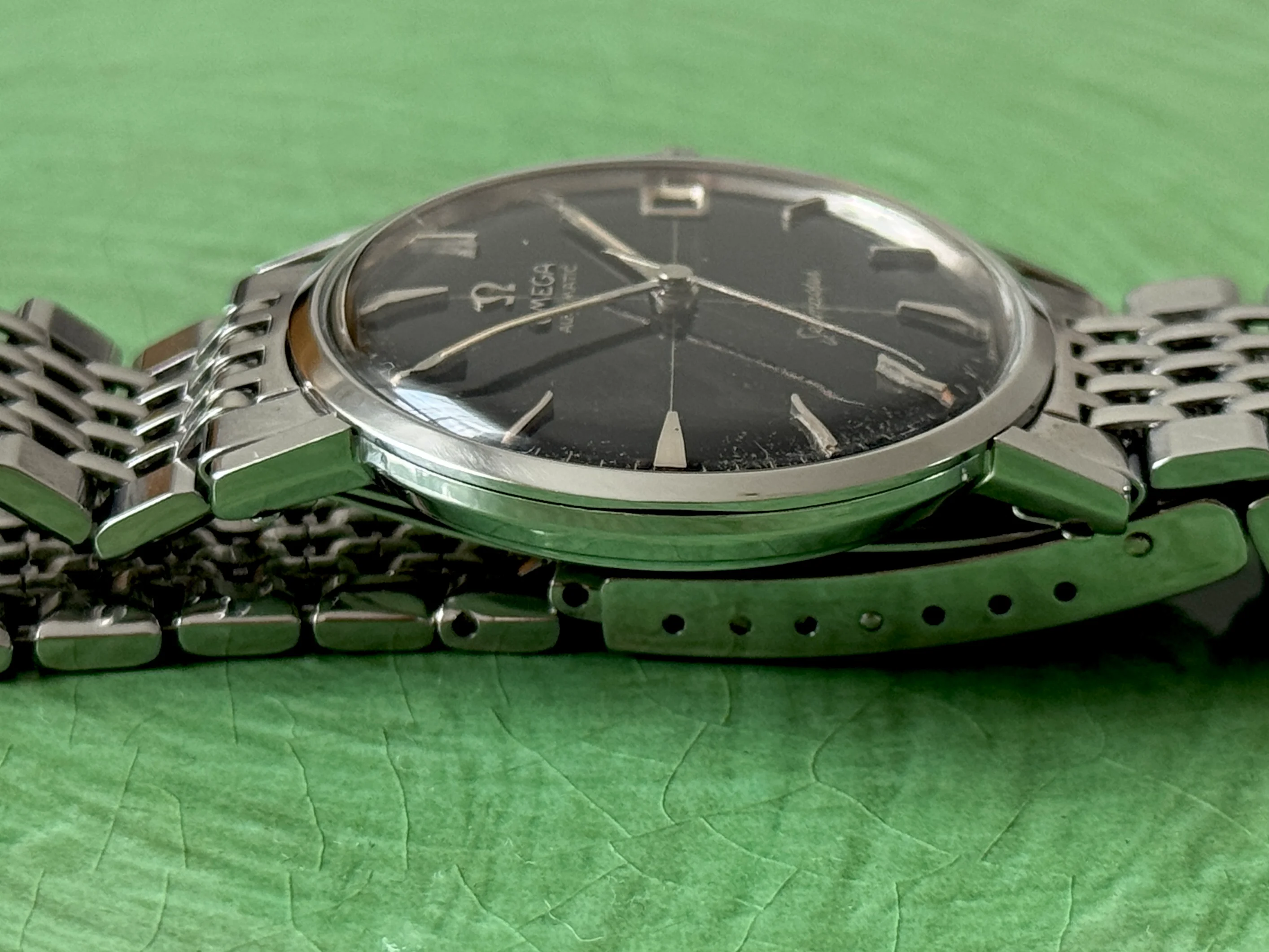 initially bought for a friend, he’s opted for another watch now, so this one can make somebody else around here happy. It’s an early 60s original black gilt dial Seamaster DeVille from the short timespan in which Omega built those without the extra „DeVille“ text on the dial.