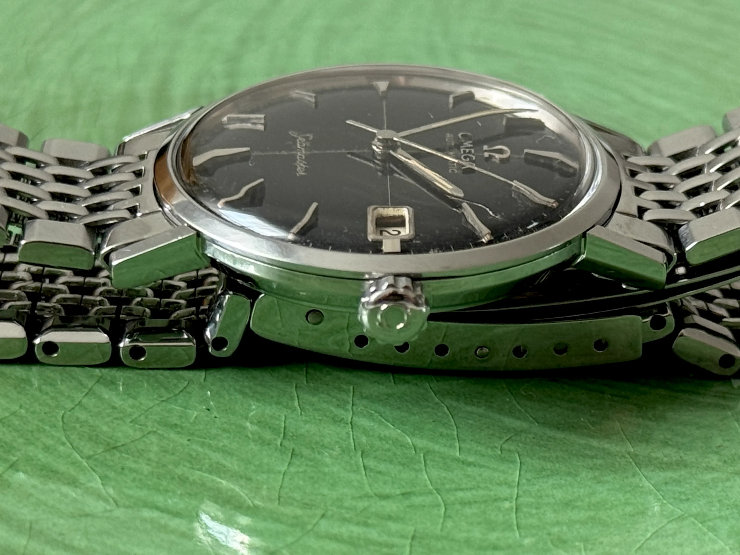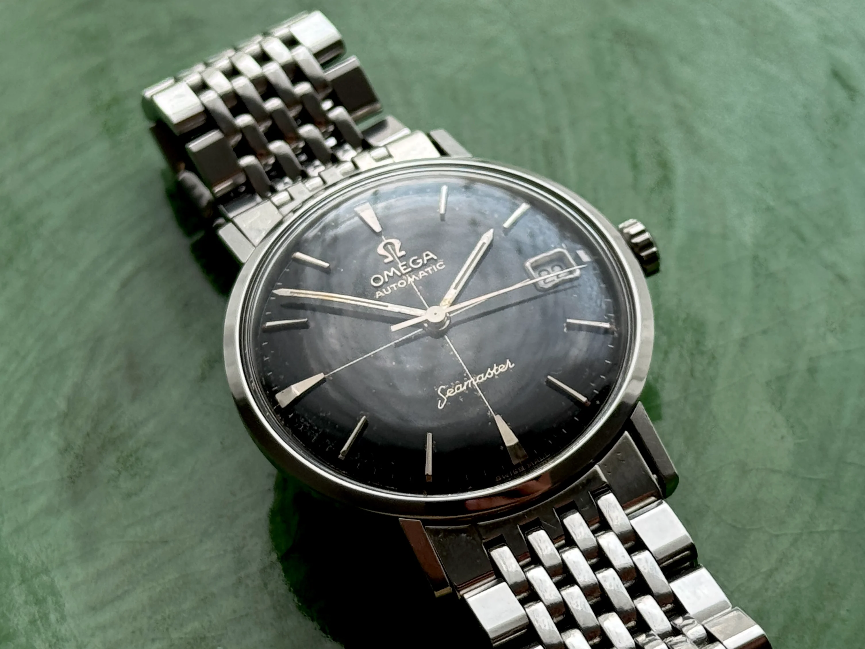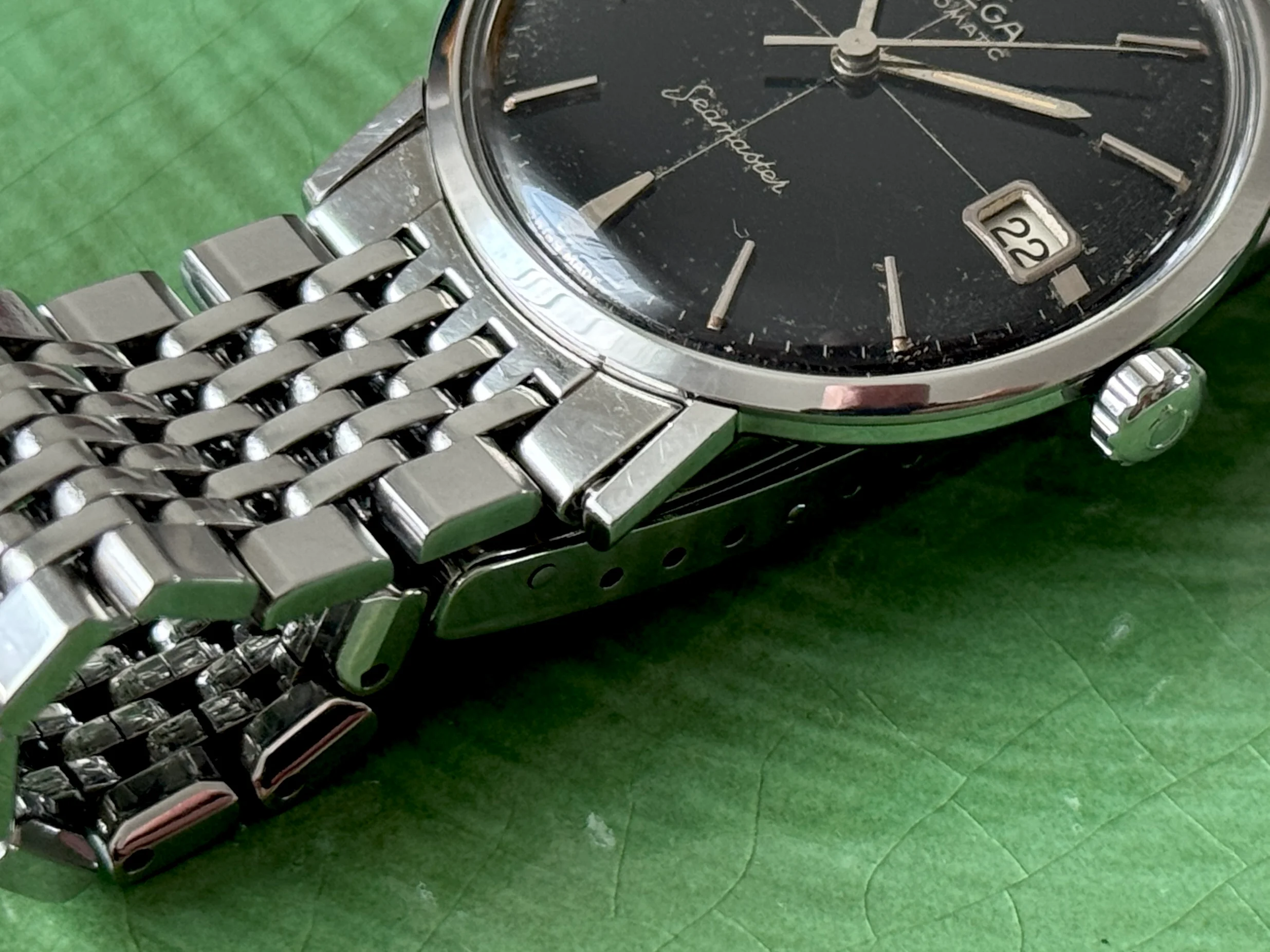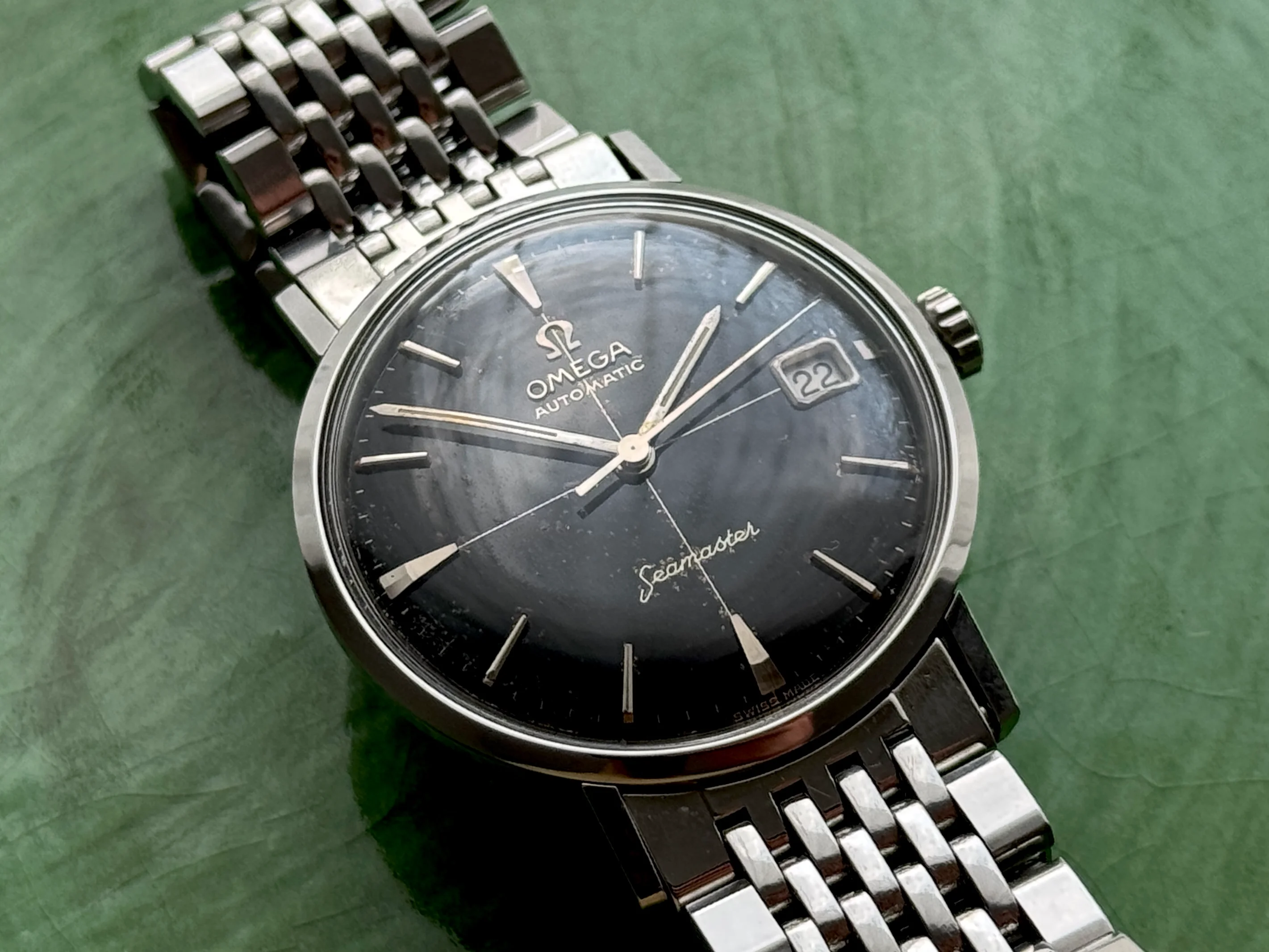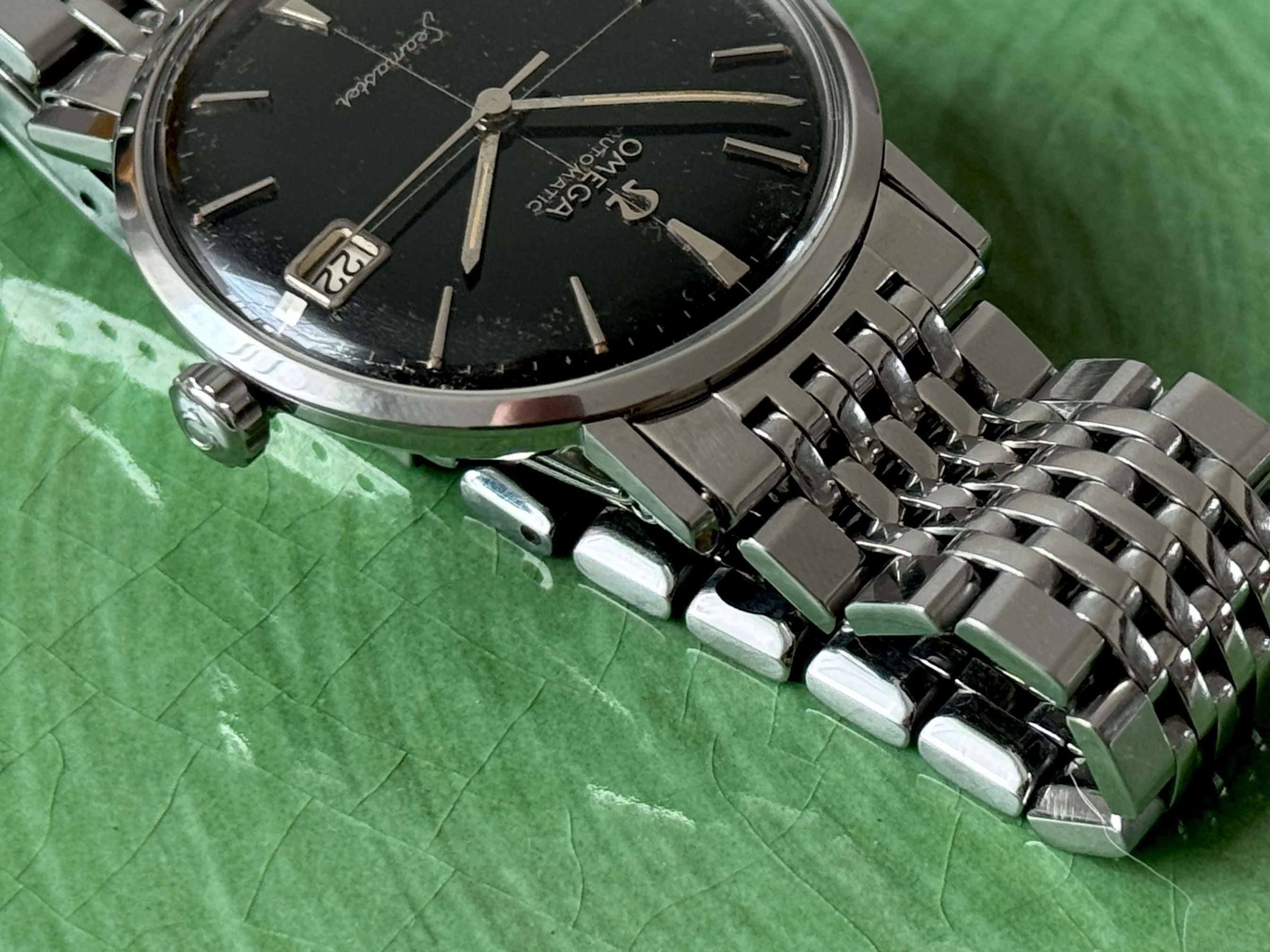 initially bought for a friend, he’s opted for another watch now, so this one can make somebody else around here happy. It’s an early 60s original black gilt dial Seamaster DeVille from the short timespan in which Omega built those without the extra „DeVille“ text on the dial.